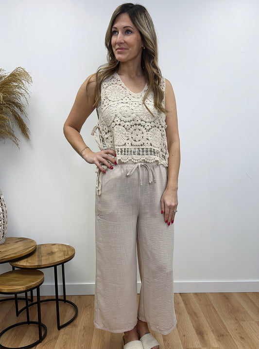 The Lenvi Linen Woven Crepe Cropped Bottoms
