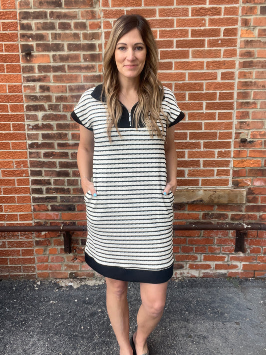 The Carmella 1/4 Zip Jacquard Striped Casual Dress