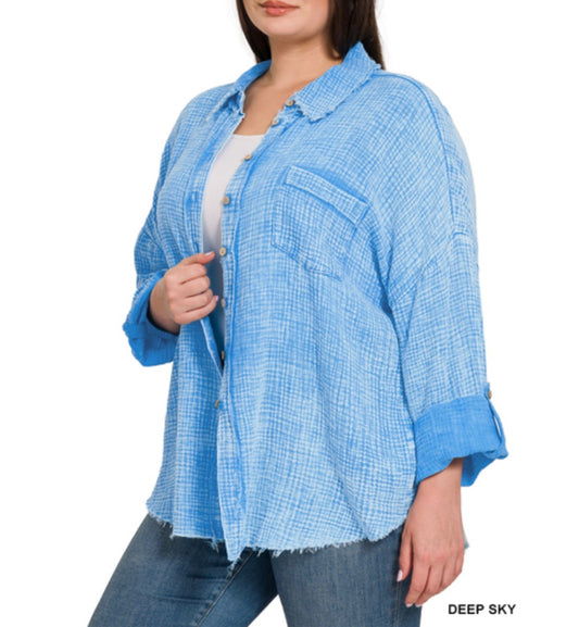 The Myla Curvy Light Washed Button Up