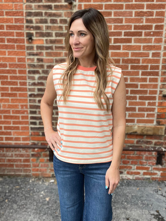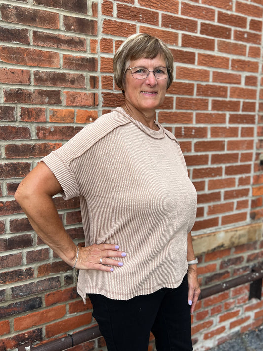 The Jalen Ivory and Mocha Stripped Short Sleeve
