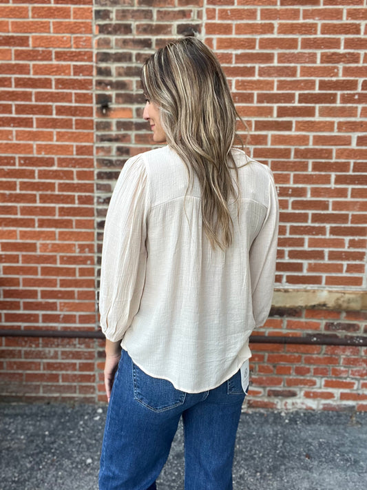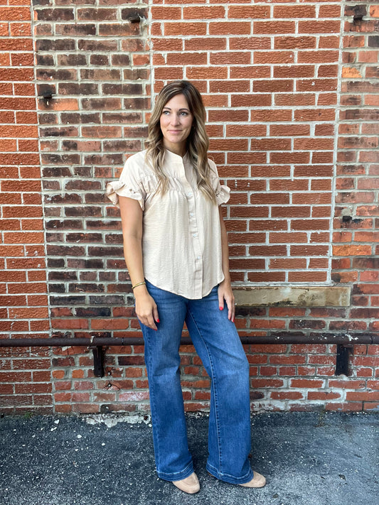 Sold outThe Sailor Beige Ruffled Sleeve Top