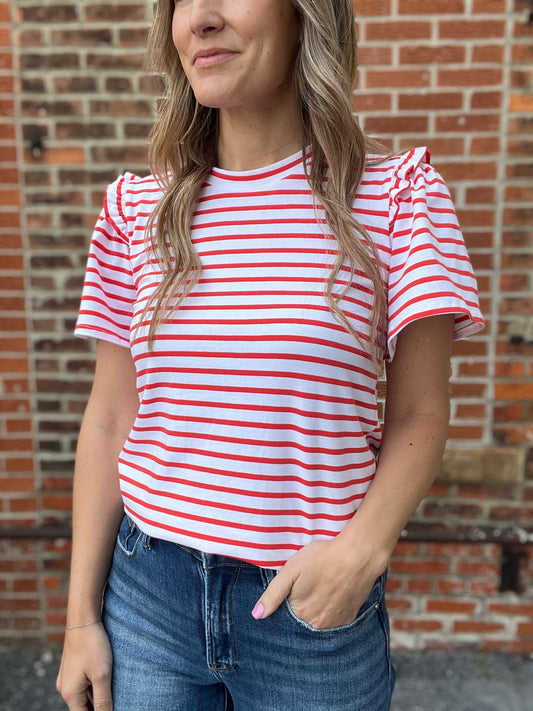 The Quincey Striped Raw Edge Long Sleeve Knit Sweater