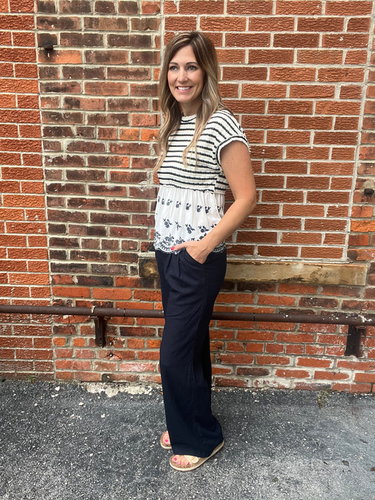 The Haliey Pleated Linen Navy Pants
