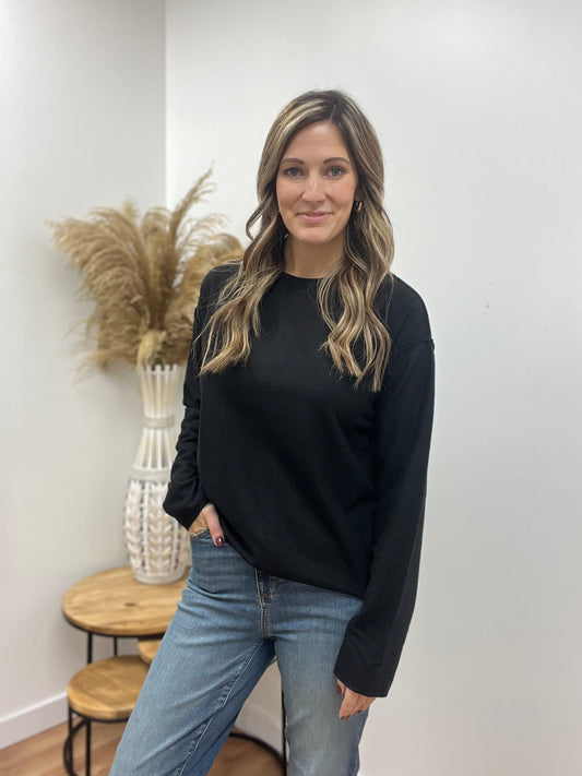 The Laurel Black Reverse Seam Crewneck