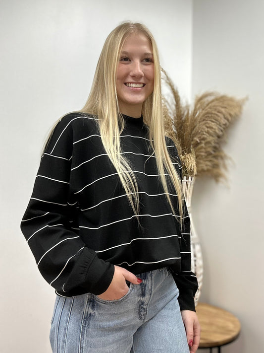 The Tess Poly Striped Black Top