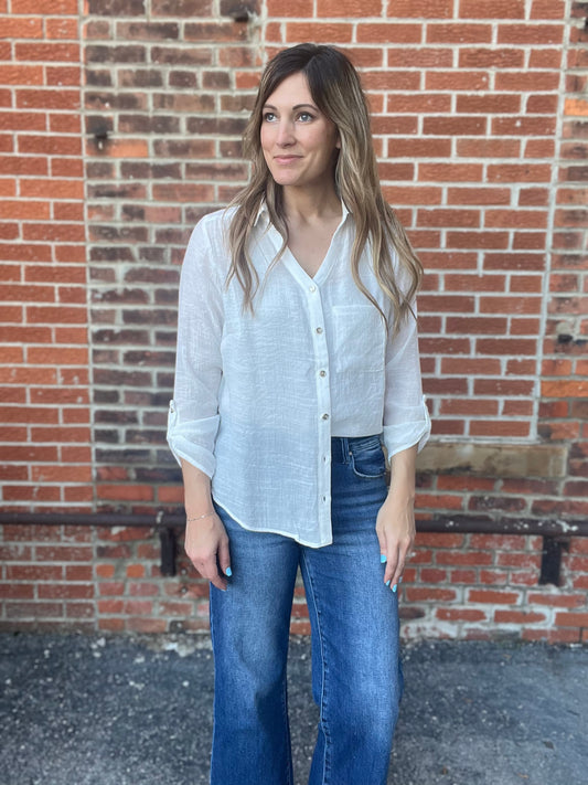 The Millo Oversized White Button Down Top
