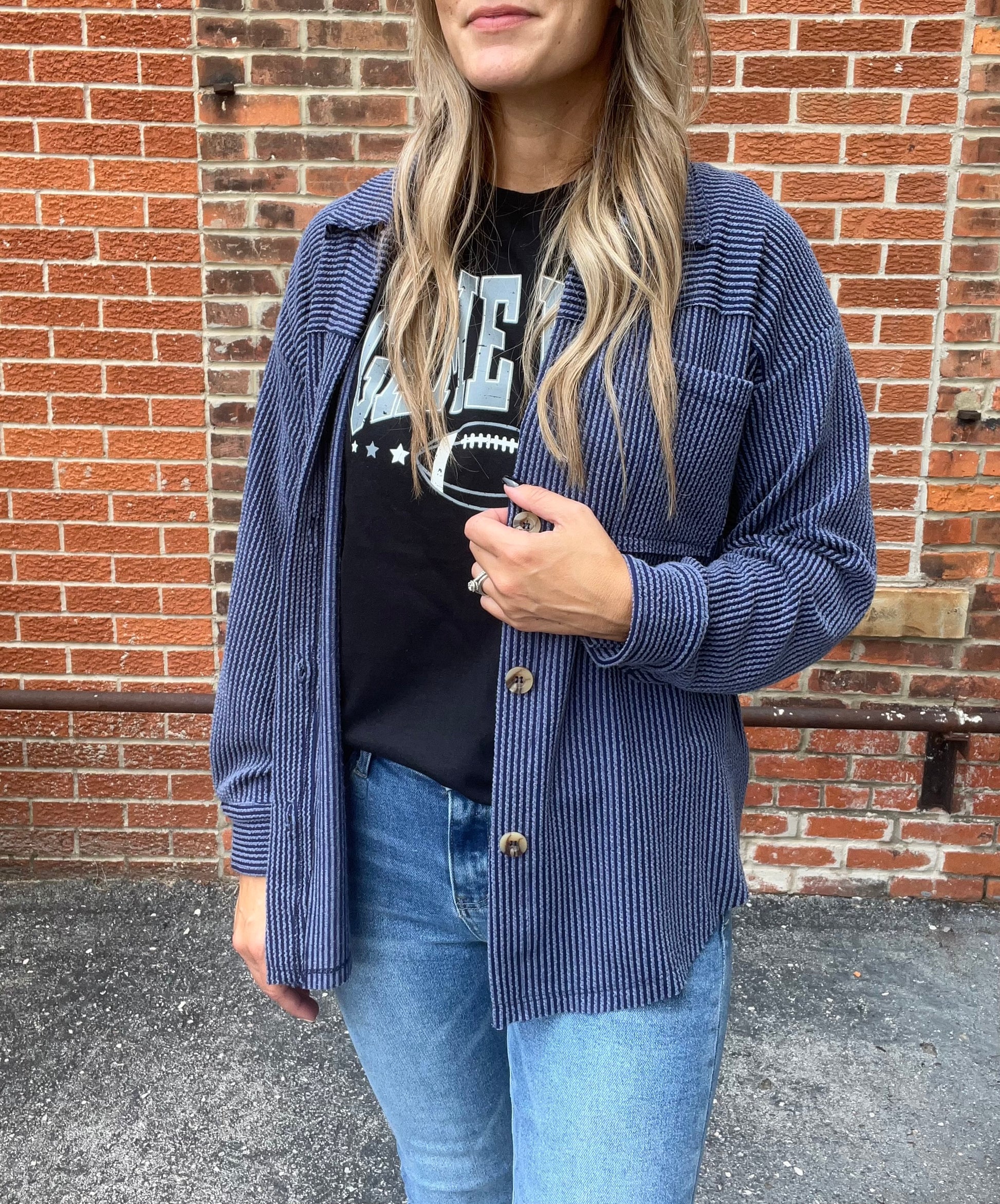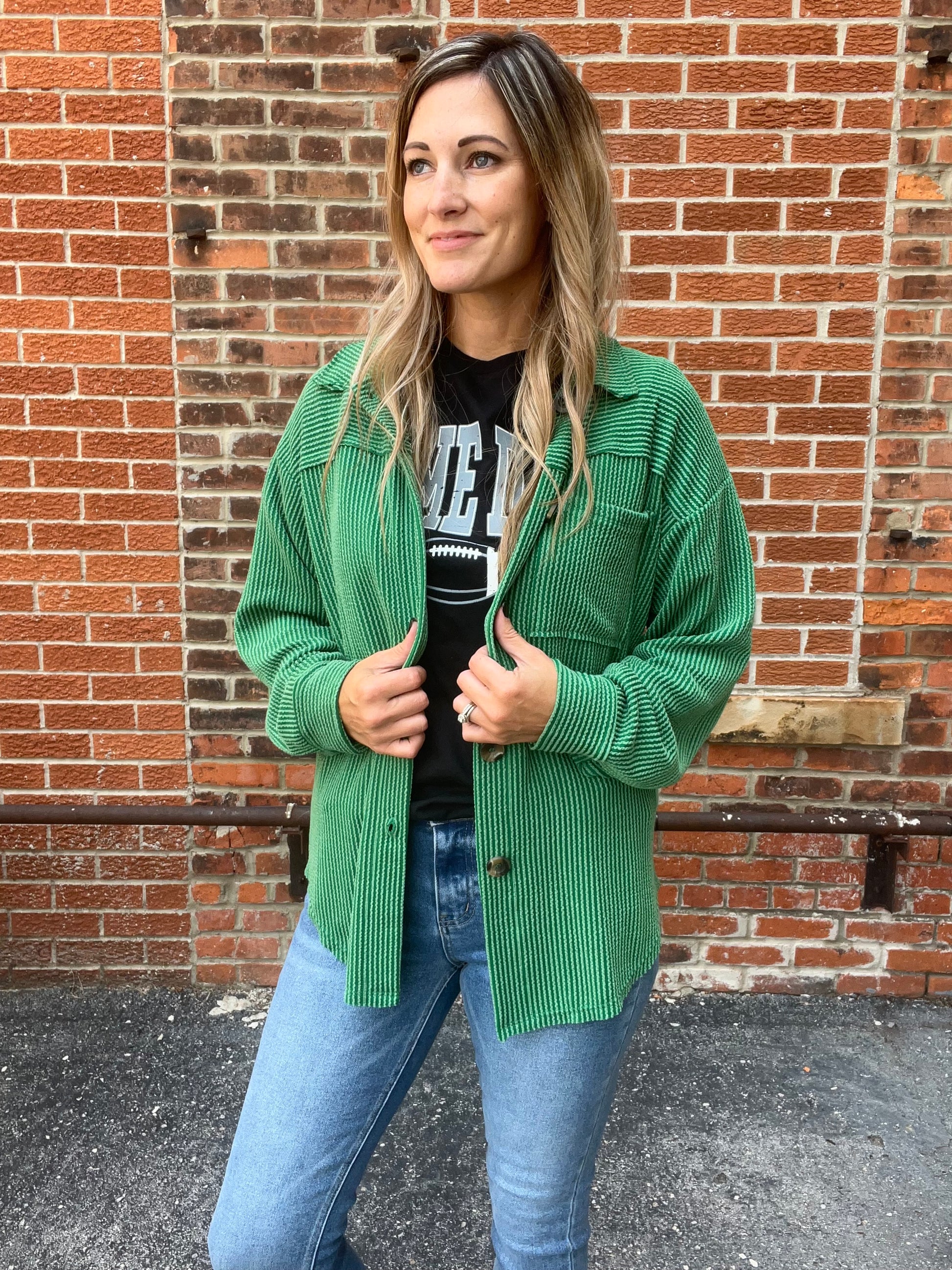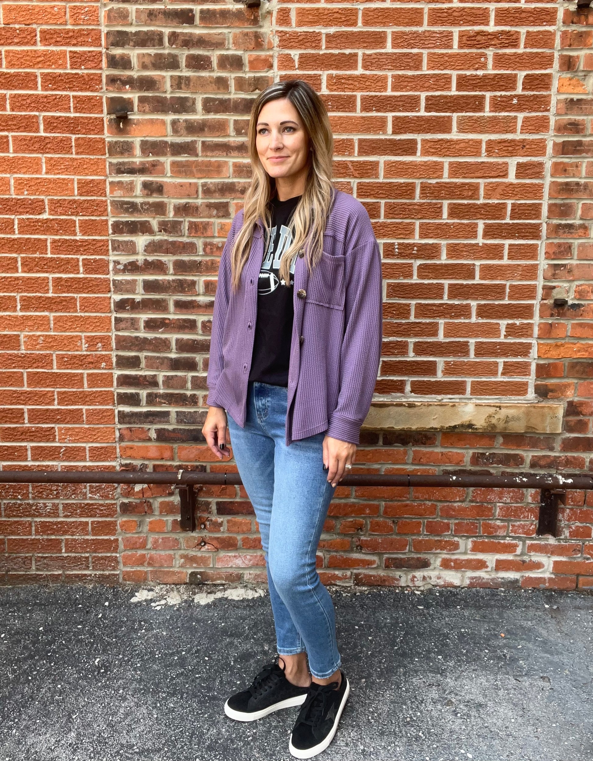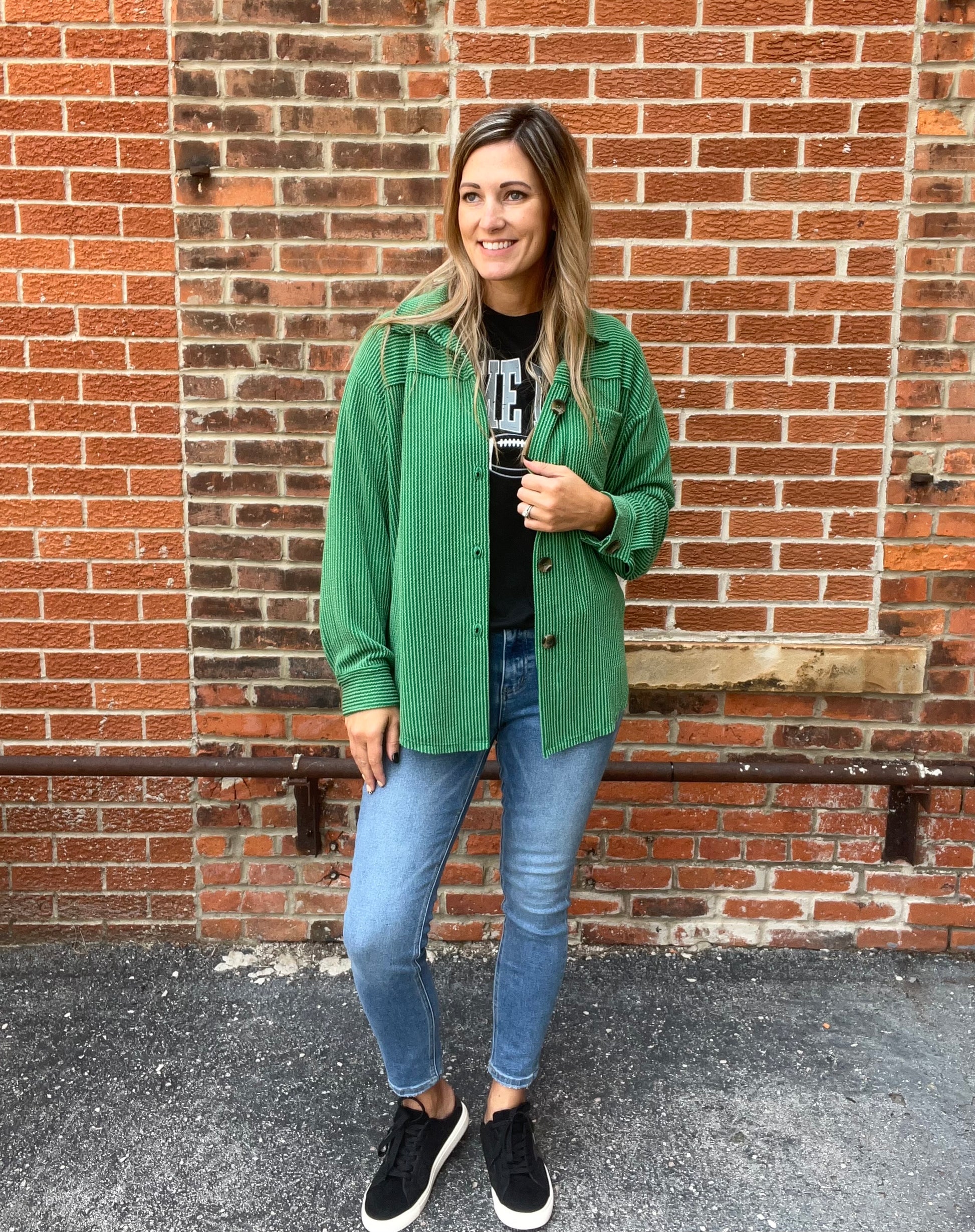 Introducing our Ribbed Button-Up Jacket – the ultimate layering piece for any wardrobe. Crafted from a cozy ribbed fabric, this jacket offers a relaxed, oversized fit that provides both comfort and style. Featuring a classic button-up front, it’s perfect for effortlessly throwing over your favorite tops, sweaters, or dresses. Whether you're heading out for a casual day or adding an extra layer to your evening look, this jacket ensures you stay warm and chic.
