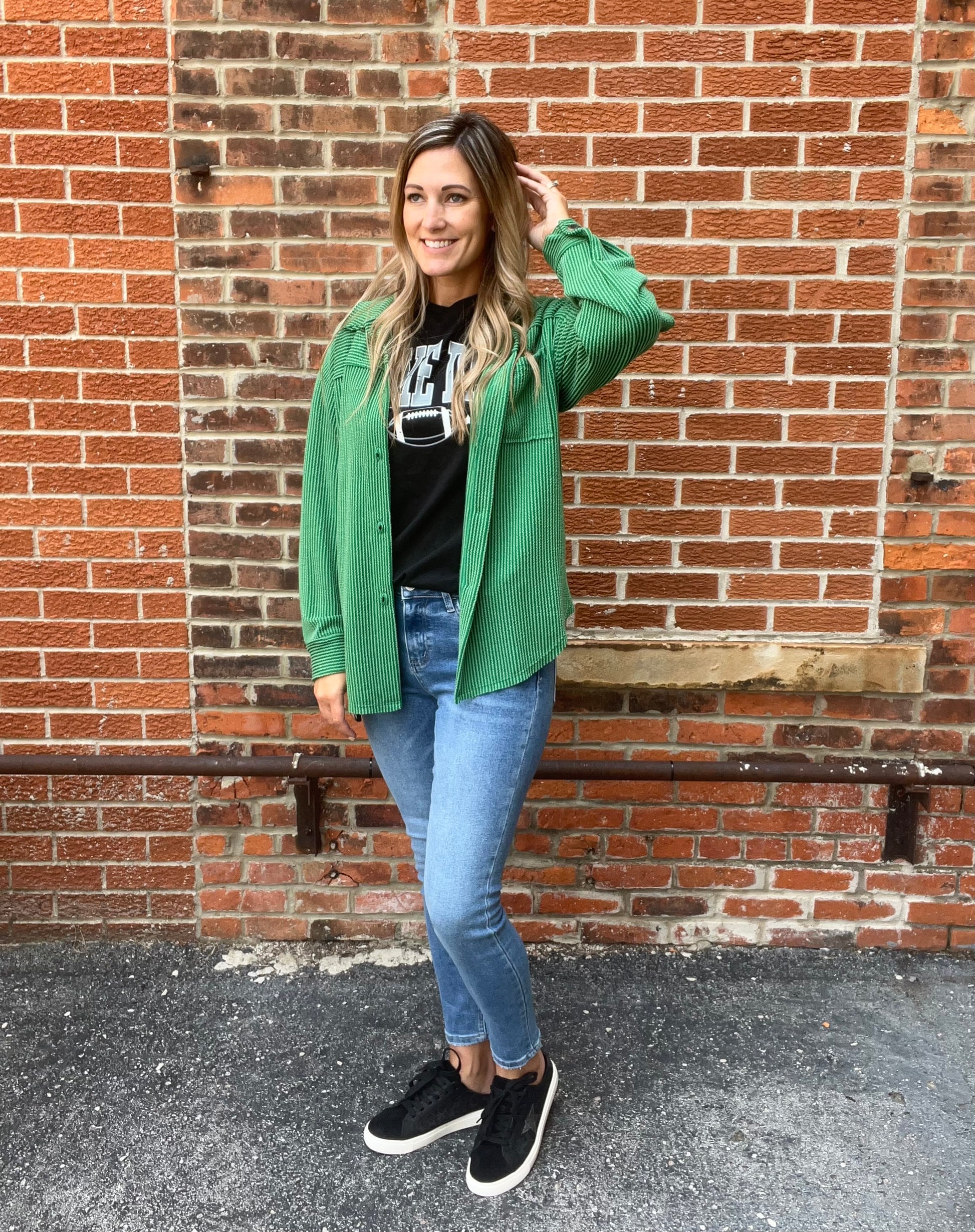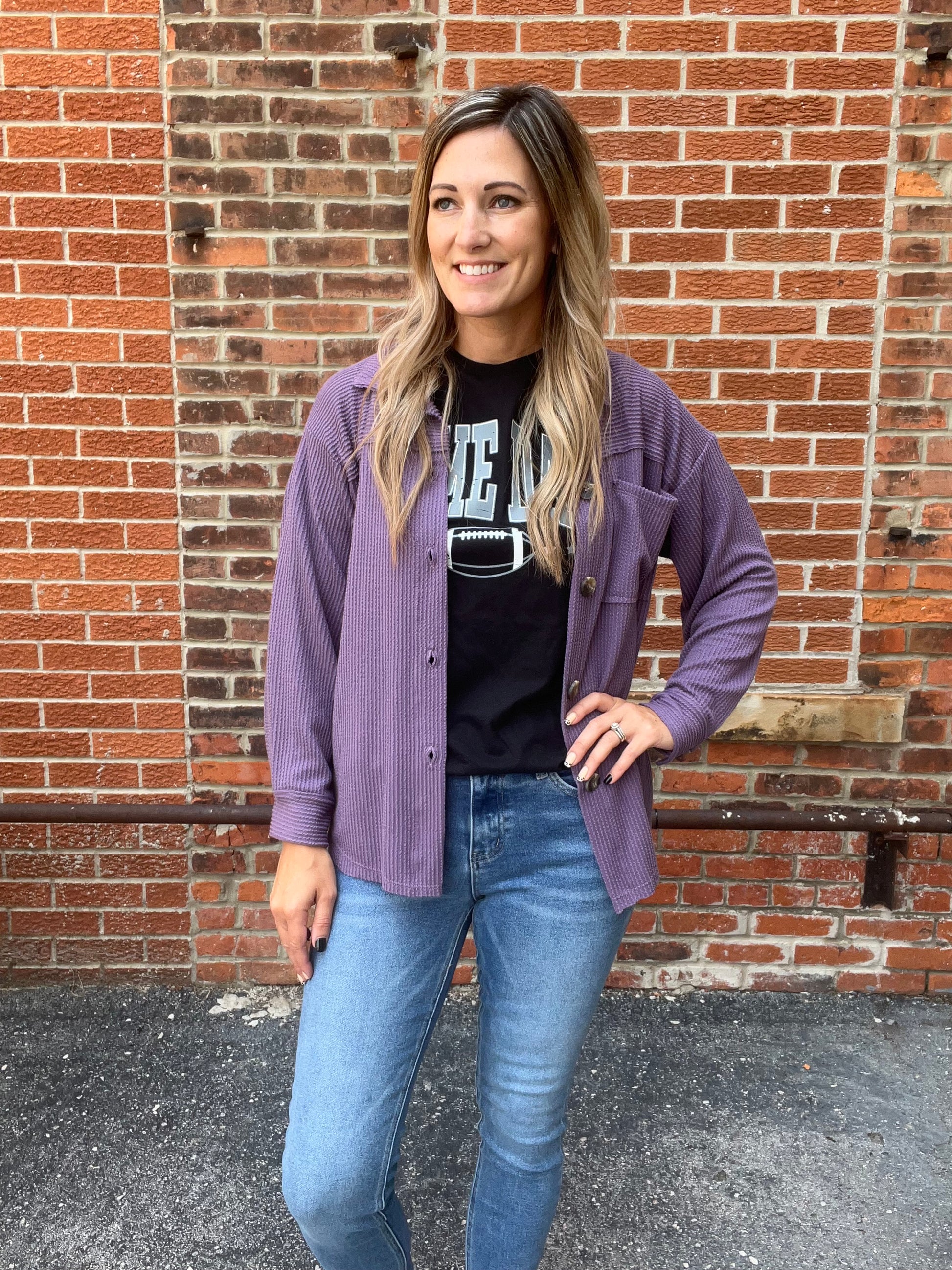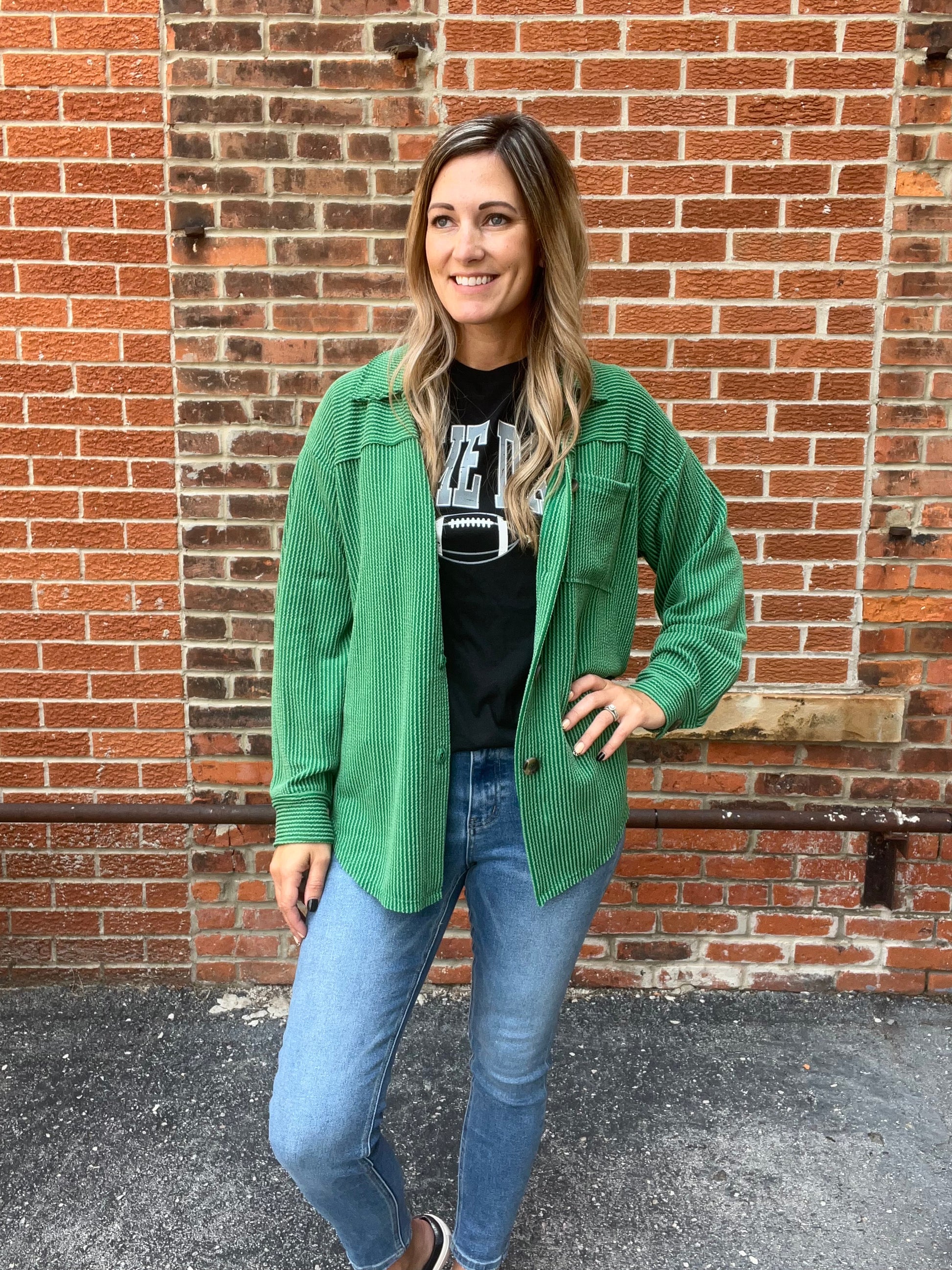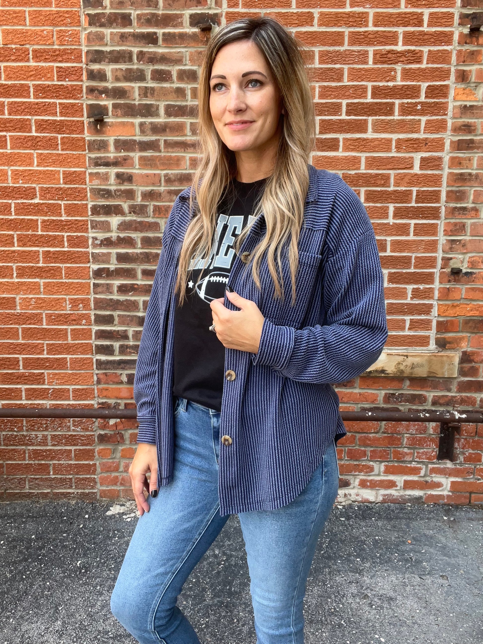 Introducing our Ribbed Button-Up Jacket – the ultimate layering piece for any wardrobe. Crafted from a cozy ribbed fabric, this jacket offers a relaxed, oversized fit that provides both comfort and style. Featuring a classic button-up front, it’s perfect for effortlessly throwing over your favorite tops, sweaters, or dresses. Whether you're heading out for a casual day or adding an extra layer to your evening look, this jacket ensures you stay warm and chic.