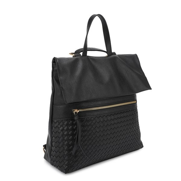 This versatile backpack is crafted from high-quality woven fabric, combining durability with a chic aesthetic. Designed for practicality, it features a spacious main compartment with a secure flap closure, offering ample room for all your essentials. Measuring 13 inches by 5.5 inches by 13 inches, it provides the perfect balance between compact and roomy. Its convertible design allows you to switch seamlessly between styles, making it an adaptable choice for daily use, travel, or work.