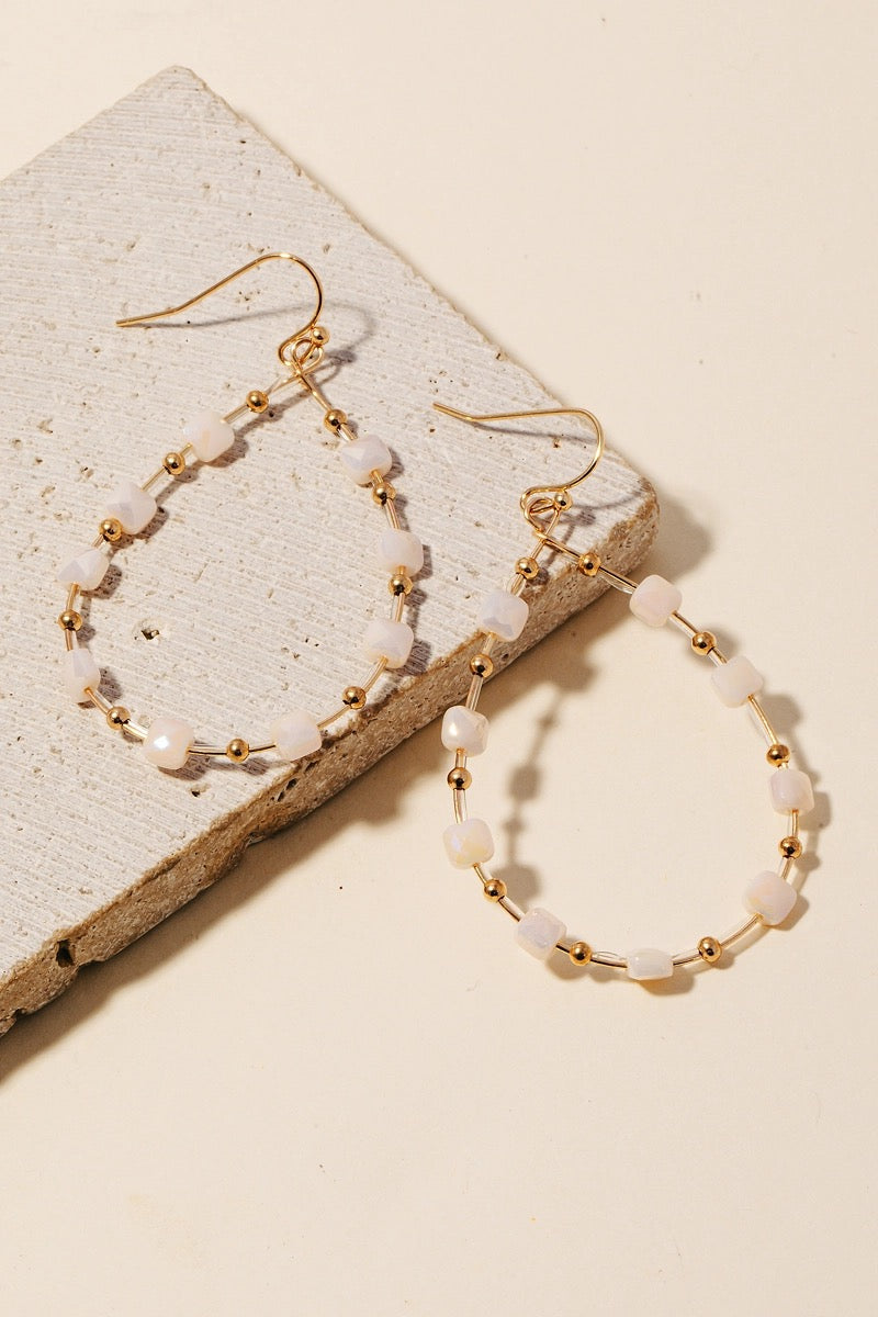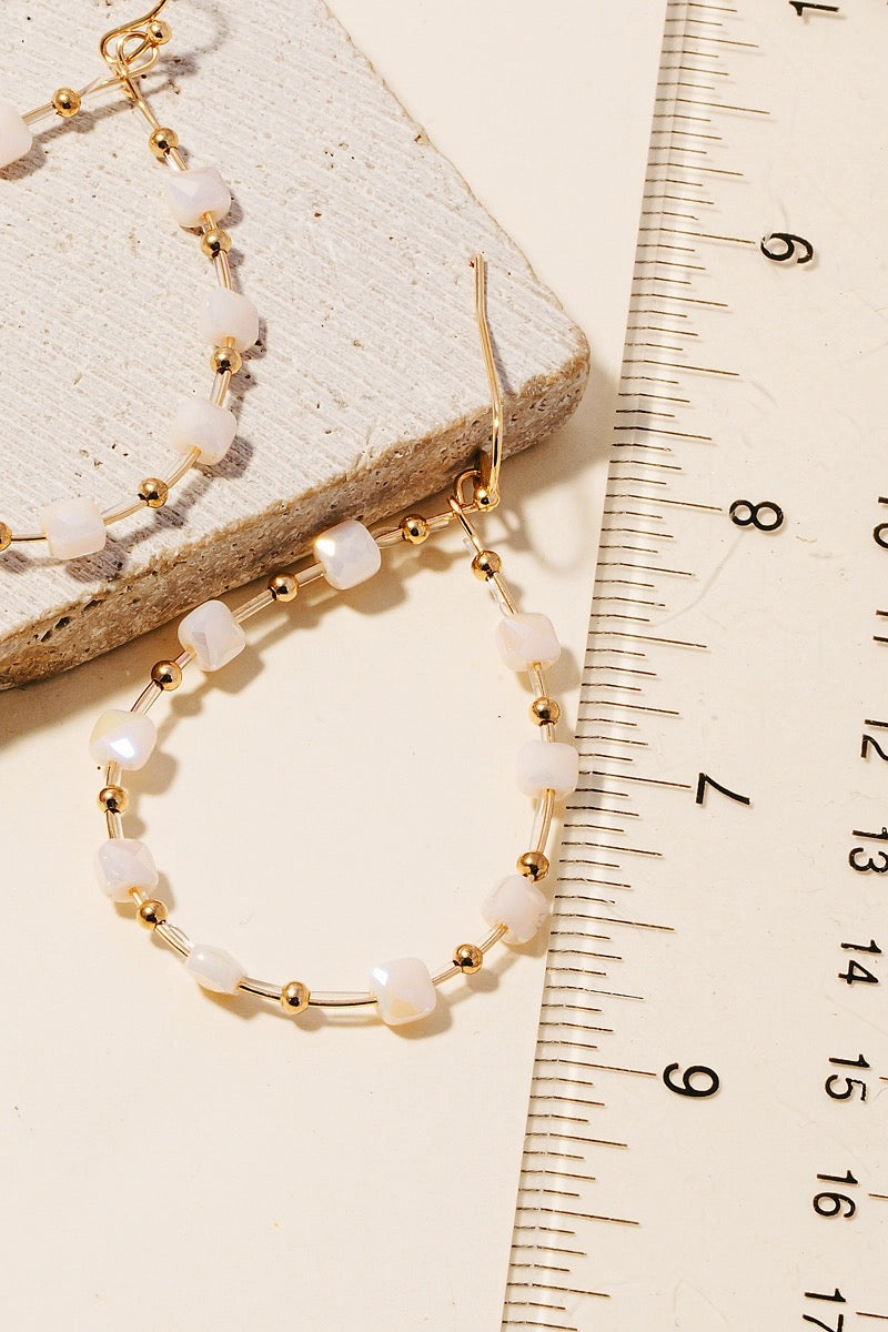An instant wardrobe staple, this pair of dangle earrings encompasses a grand faceted glass square beaded tear design. This item is the perfect finishing touch to any outfit, adding a touch of glamour.