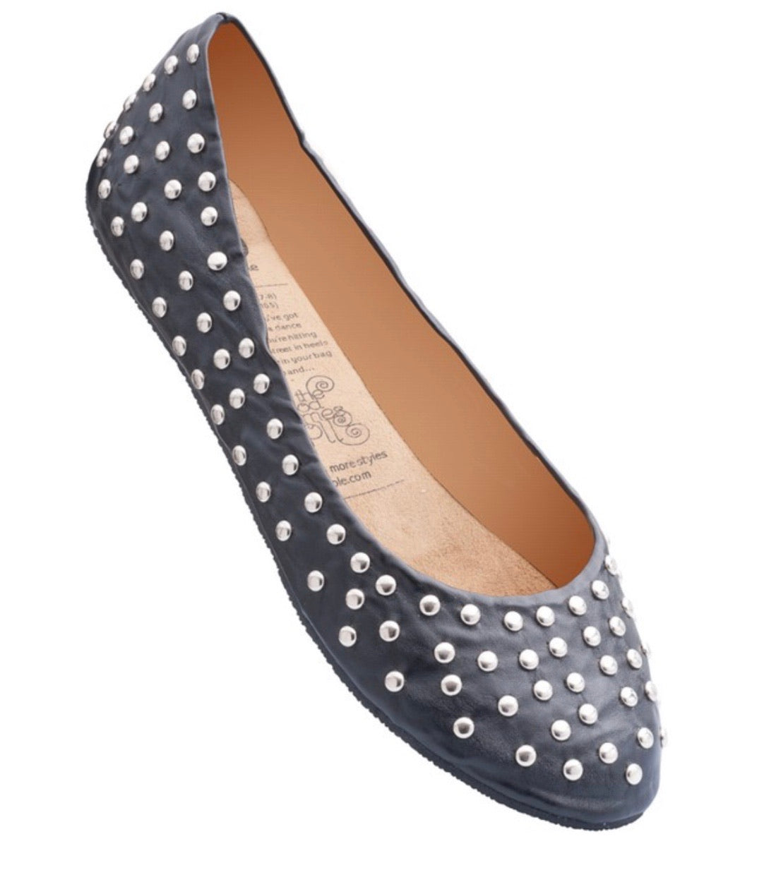 Black Studded Flats, Perfect For All Day Wear Or Fold Them Up And Have Them Ready, When Your Feet Are Tired Of High- Heels.