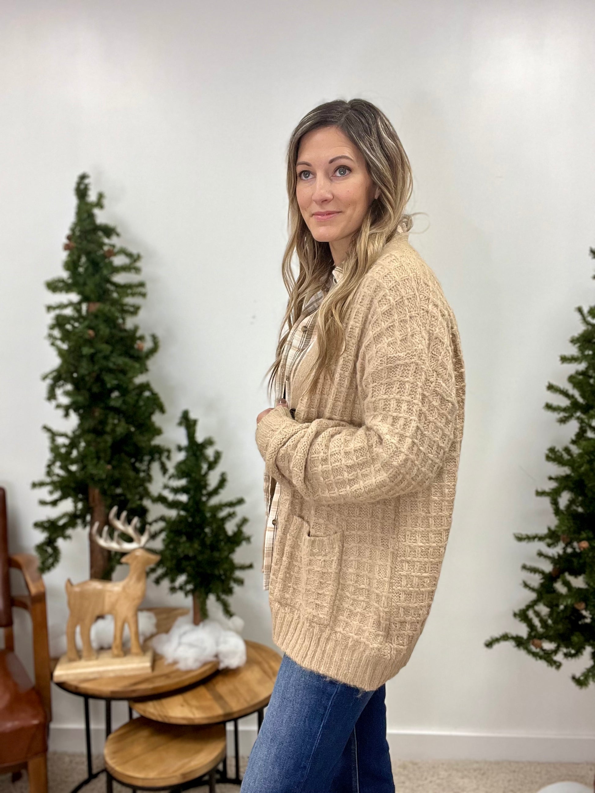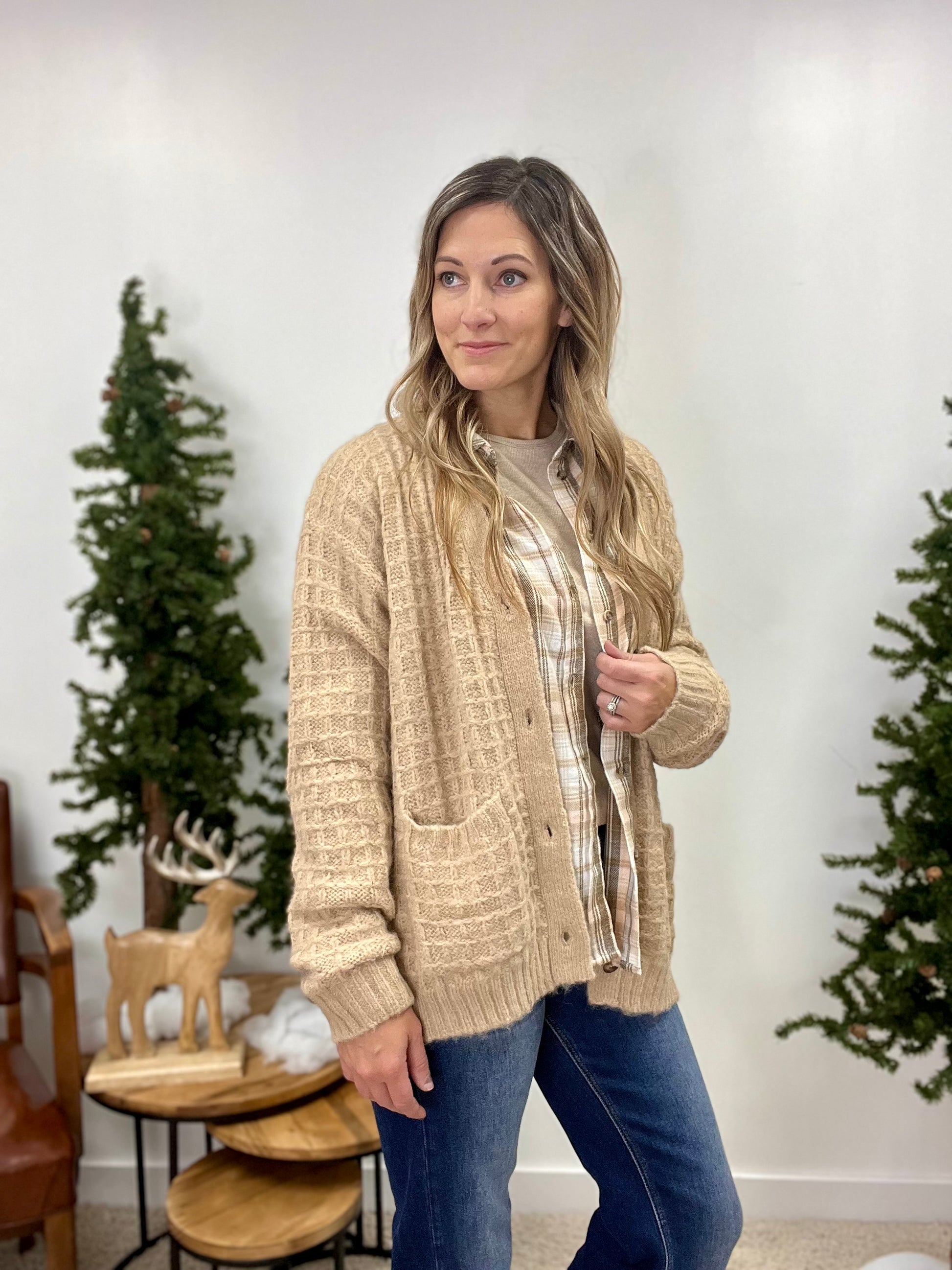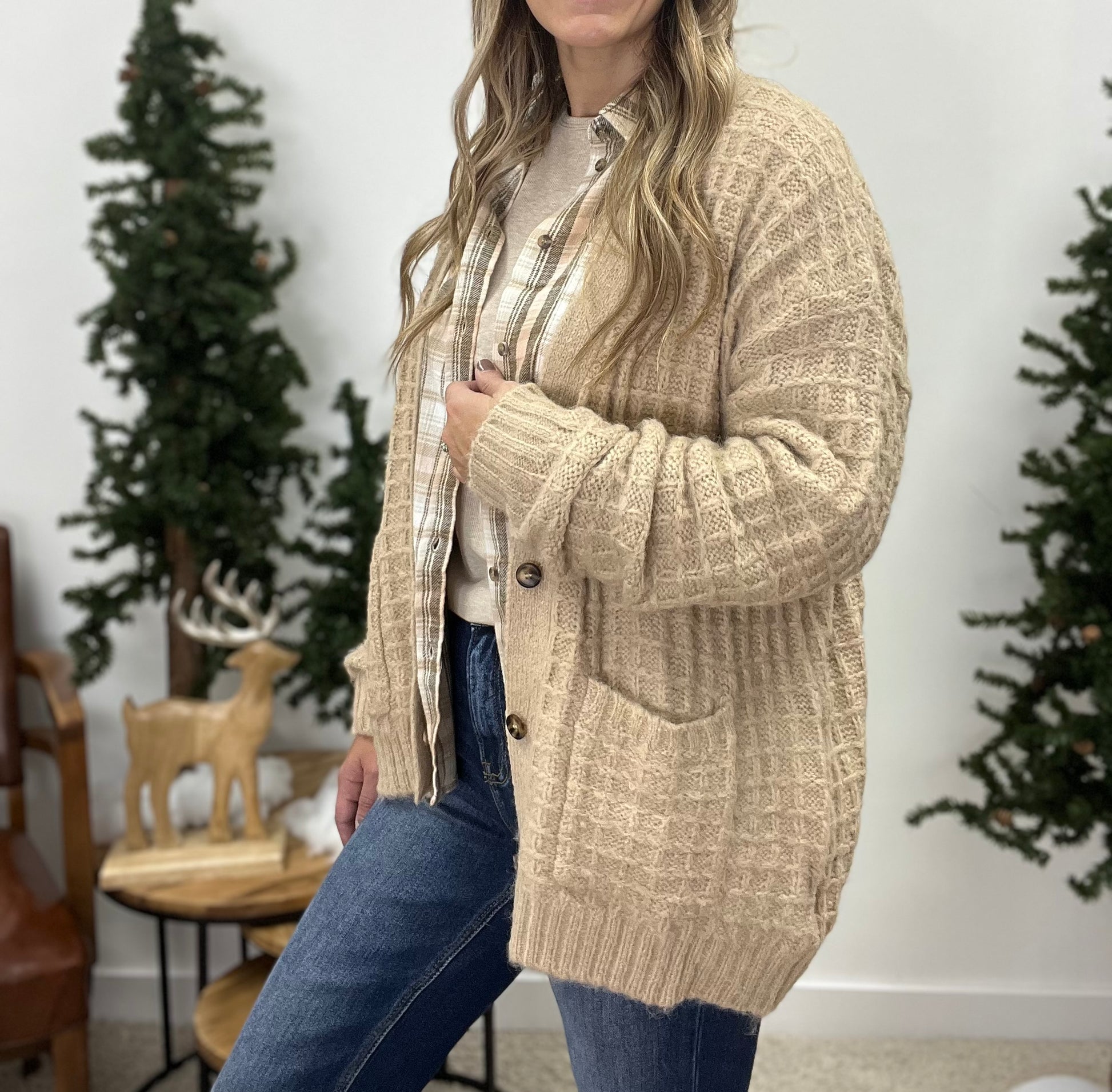 This taupe-colored knit cardigan is a must-have for fall, offering a blend of cozy comfort and versatile style. Crafted from an ultra-soft material, it wraps you in warmth while maintaining a lightweight feel, perfect for layering. The neutral taupe shade makes it easy to pair with any outfit, and its relaxed fit adds a casual-chic touch to your seasonal wardrobe. Whether you’re lounging at home or heading out for a crisp autumn walk, this cardigan is the perfect go-to piece for effortless style and comfort.