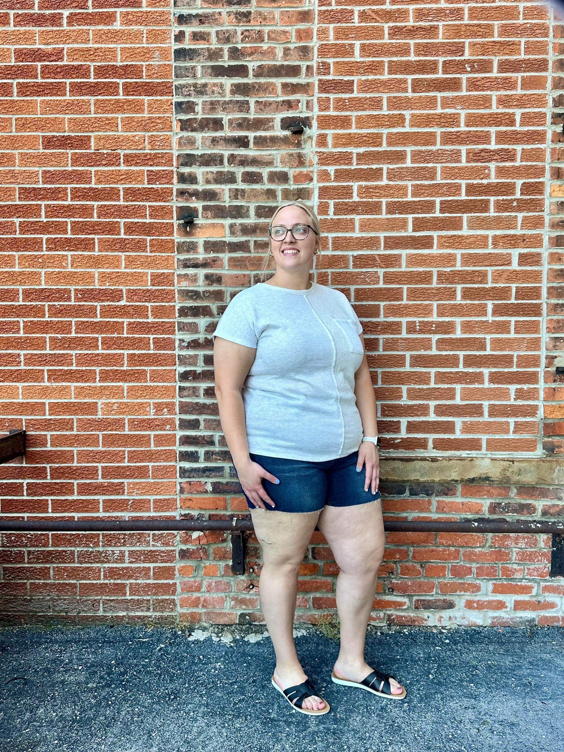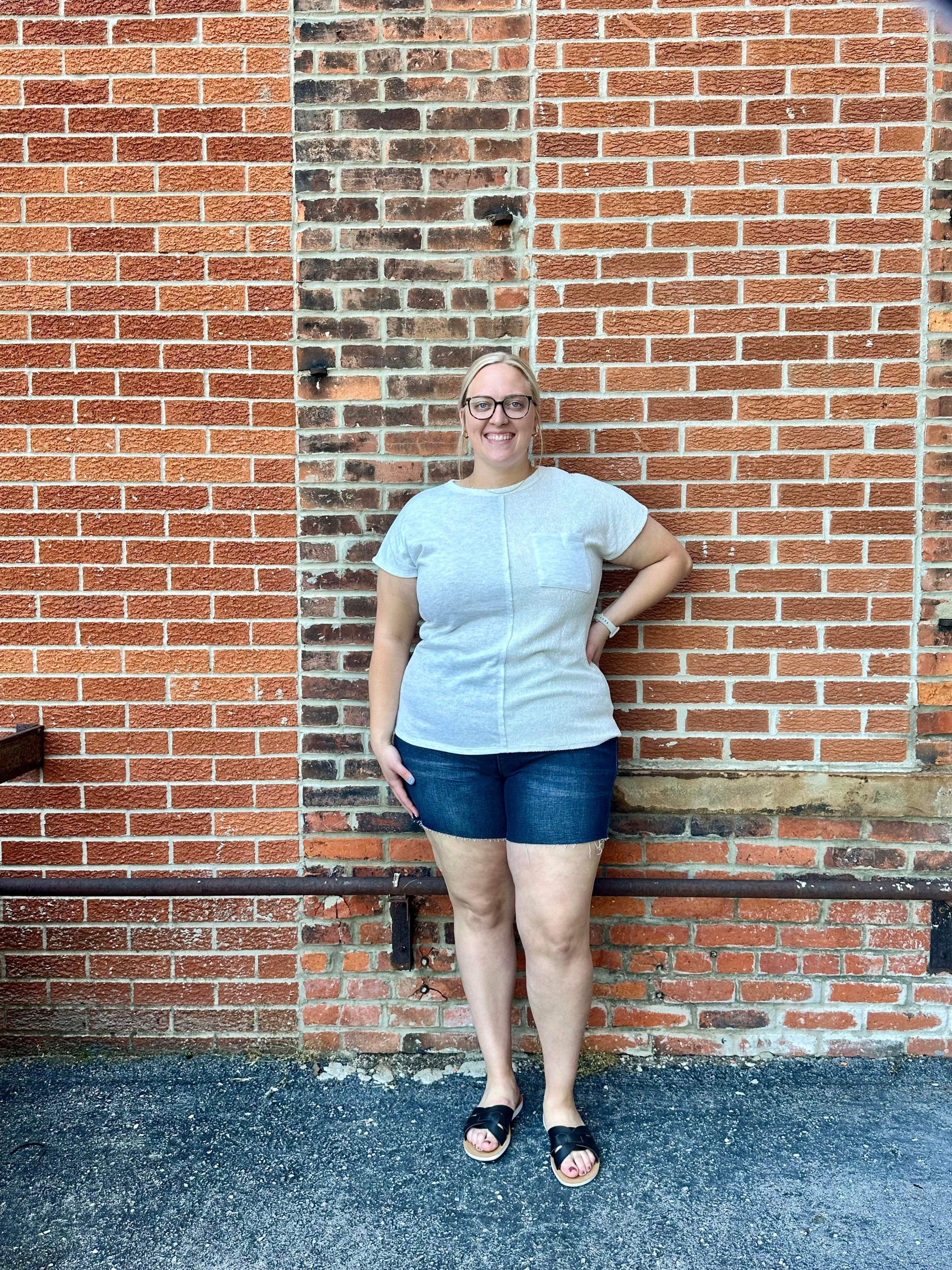 Discover comfort and style with our Curvy Short Sleeve Colorblock Terry Top! 🌟