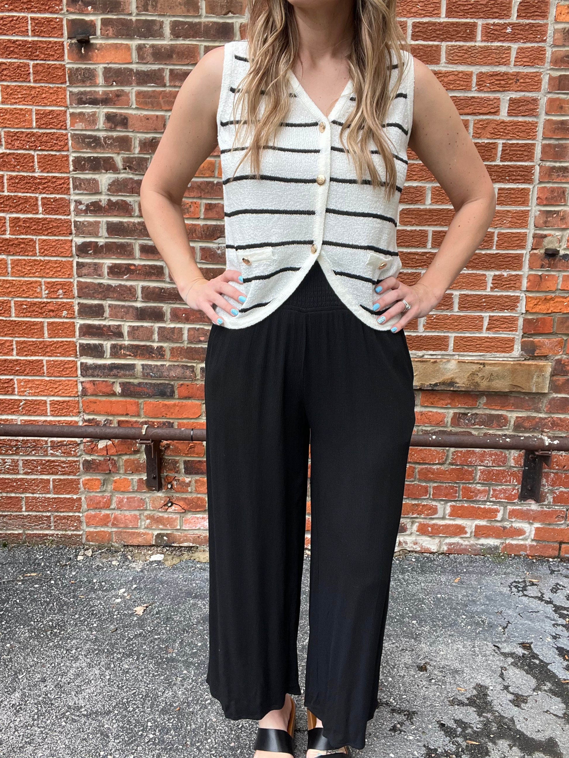 These Smocked Waist Lightweight Pants feature a high rise, wide leg silhouette that provides a flattering and comfortable fit. Designed with a stretchy, breathable fabric, they ensure all-day comfort while allowing for ease of movement. The smocked waistband adds a touch of detail and flexibility, hugging your waist without feeling restrictive. With convenient side pockets, these ankle length pants are both practical and stylish, perfect for casual outings or relaxed days at home. Ideal for warm weather, they keep you cool and effortlessly chic.