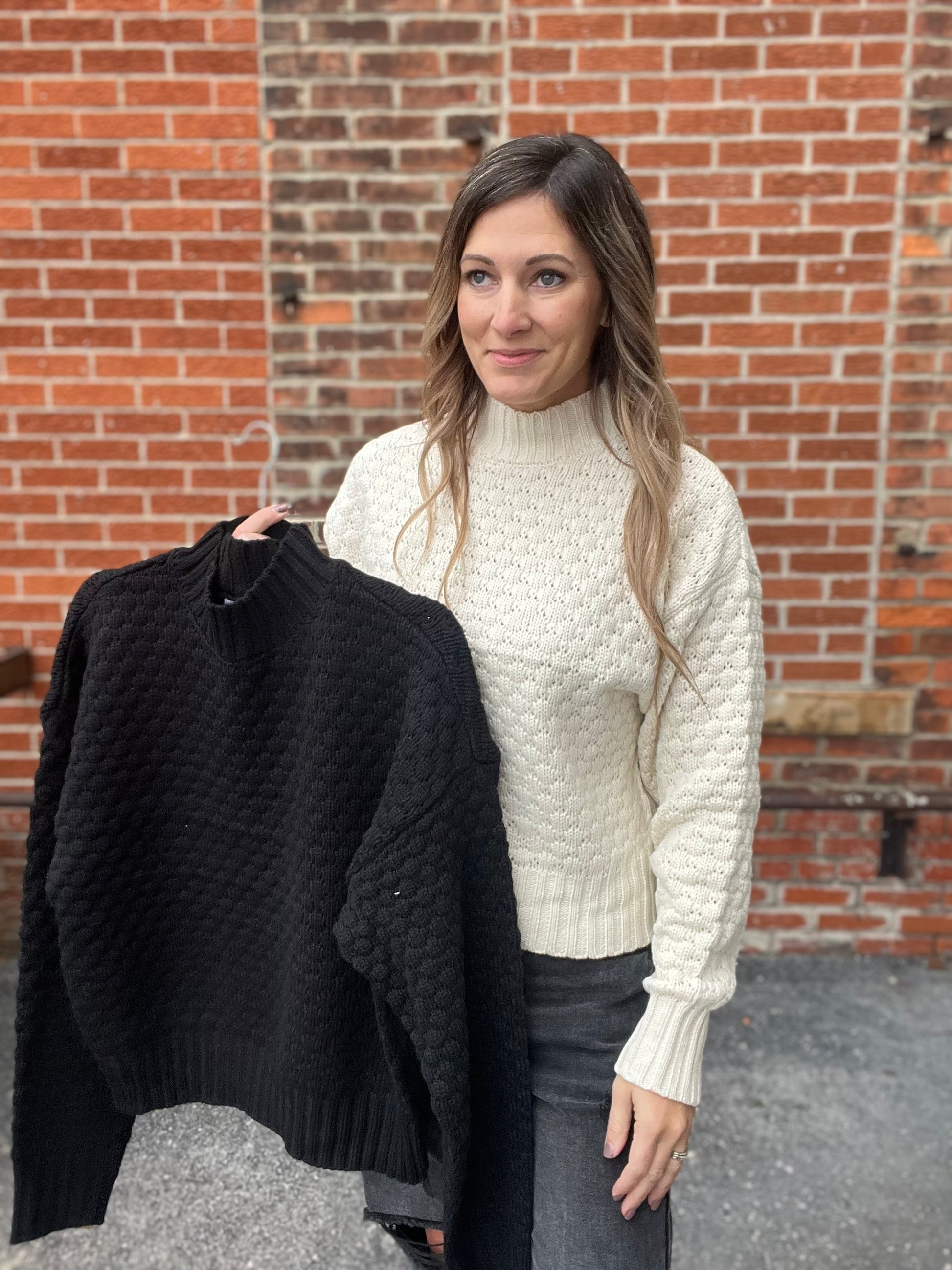 Stay cozy all winter in this sweater, crafted with thoughtful details designed to keep you warm. Made from a thick, plush knit fabric, this sweater features a high neckline and ribbed cuffs to trap in warmth, while the relaxed fit allows for easy layering. Whether you’re braving the cold or lounging indoors, this sweater is your go-to for comfort and style all season long.
