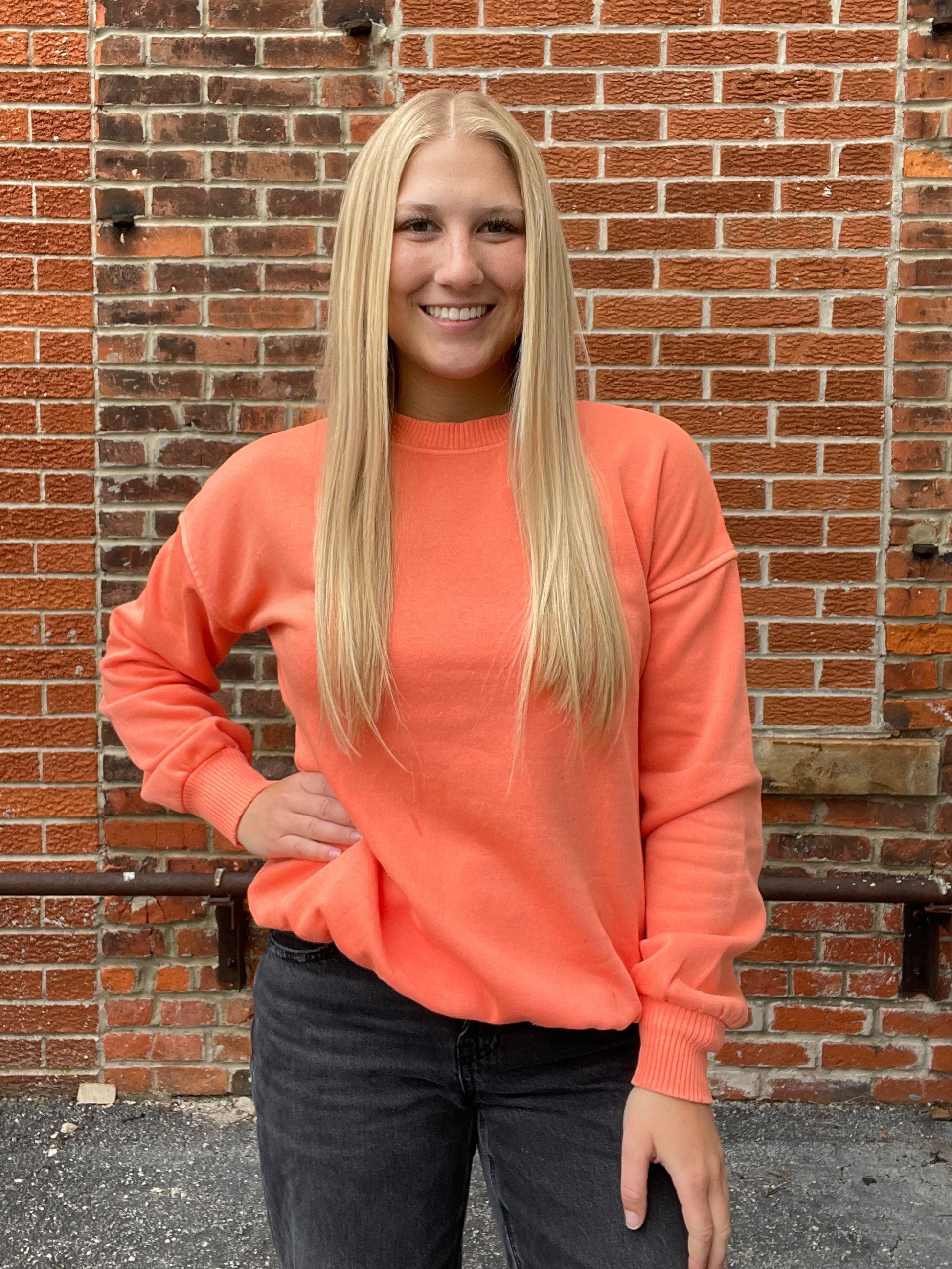 Meet your new go to layer… This lightweight mineral wash pullover sweatshirt features a perfectly lived in look with a relaxed, oversized fit you’ll love. Designed for all day comfort, it’s soft, breathable, and easy to throw on for those effortless, laid back vibes. Pair it with your favorite denim or leggings for an easy, everyday outfit.