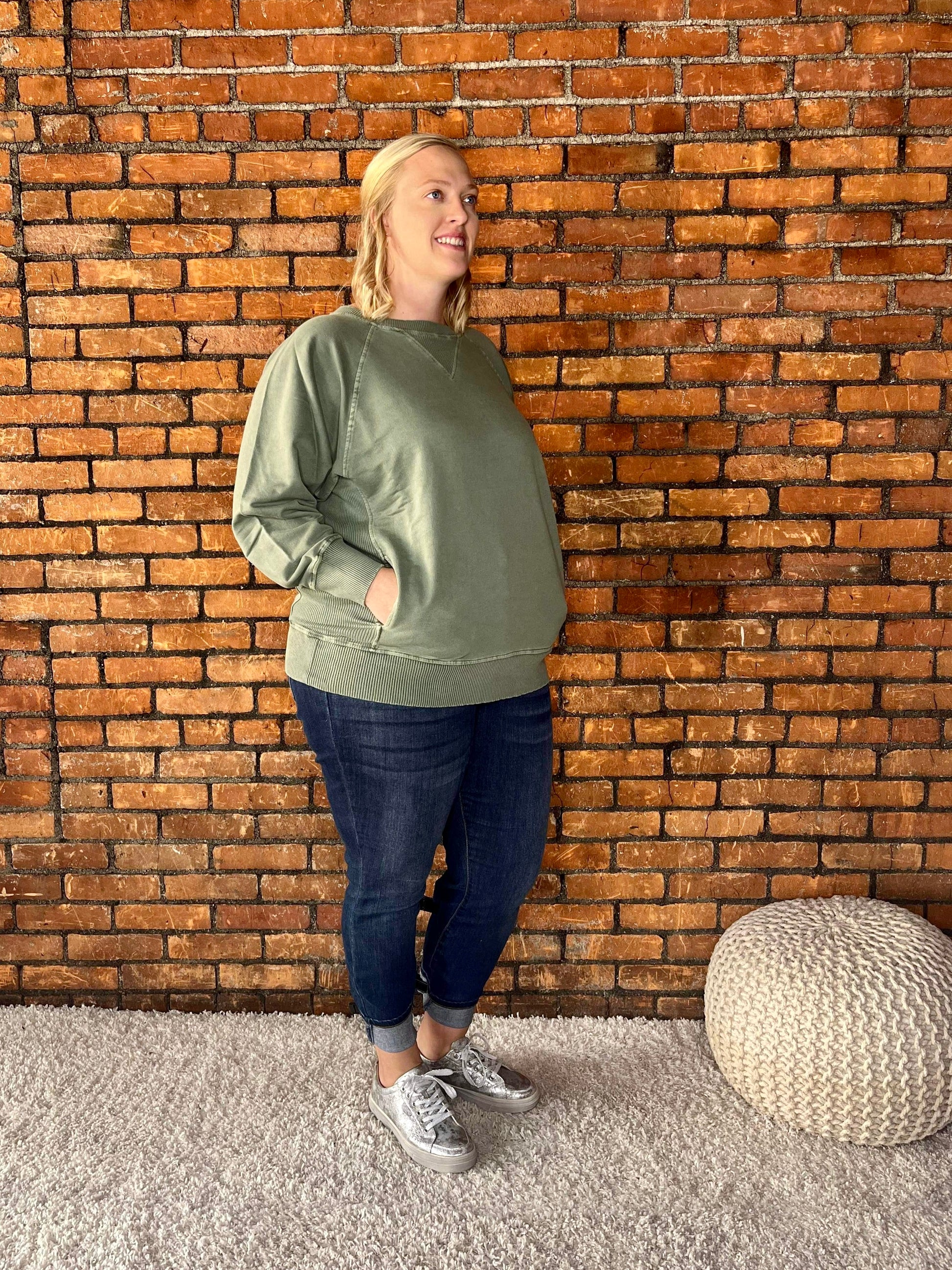 French Terry Pullover Curvy Sweatshirt With Pockets.