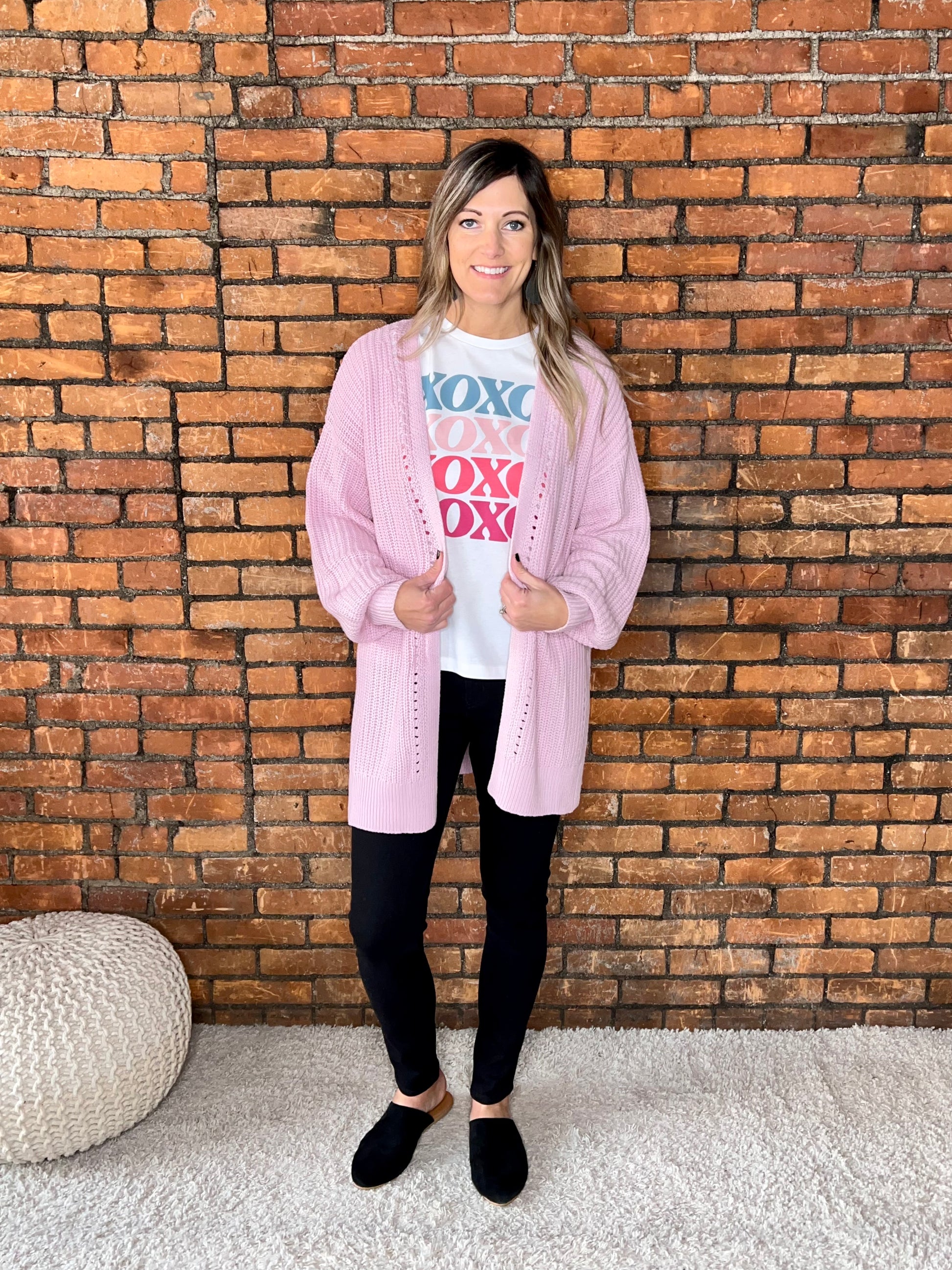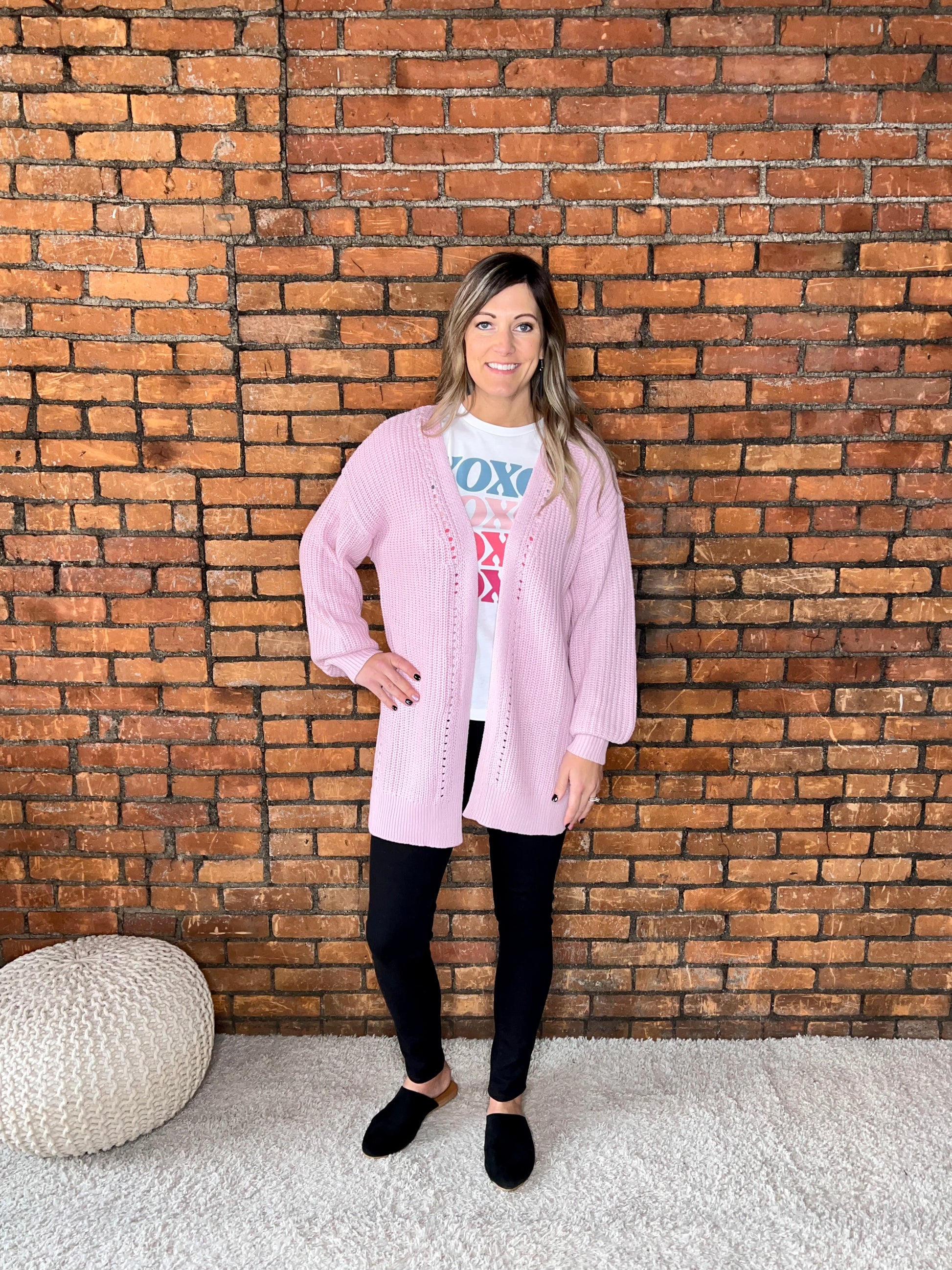 Eyelet Knit Cardigan With Side Slits.
