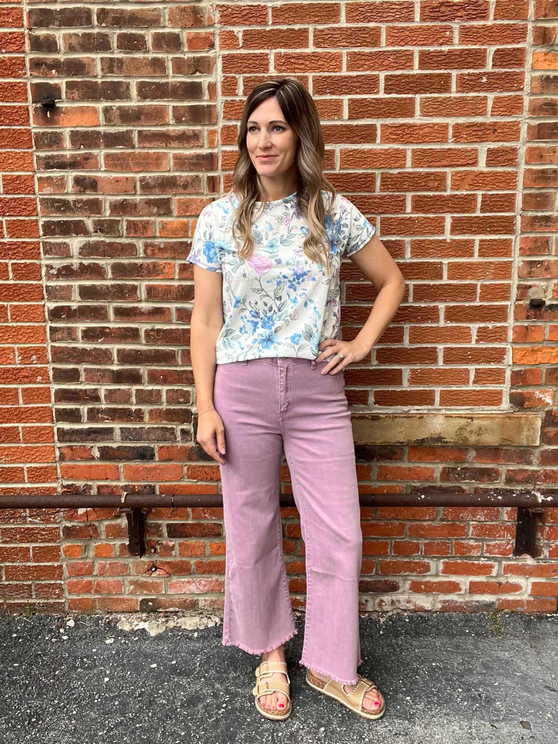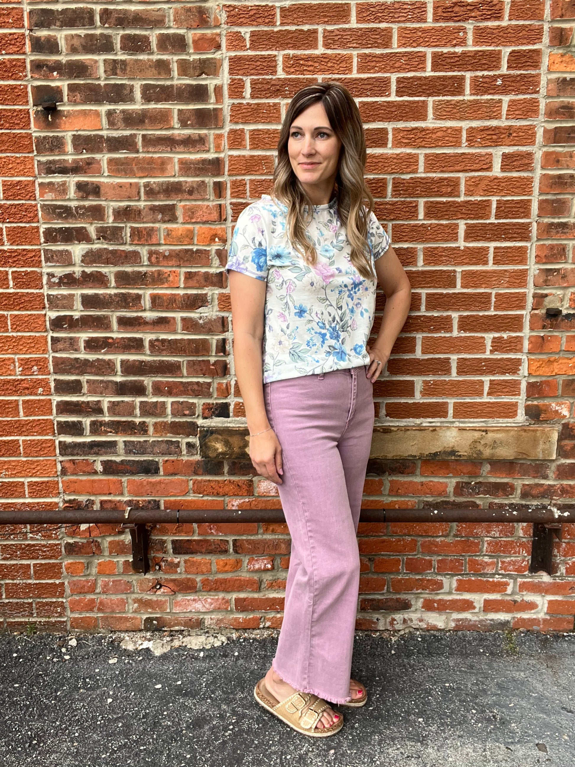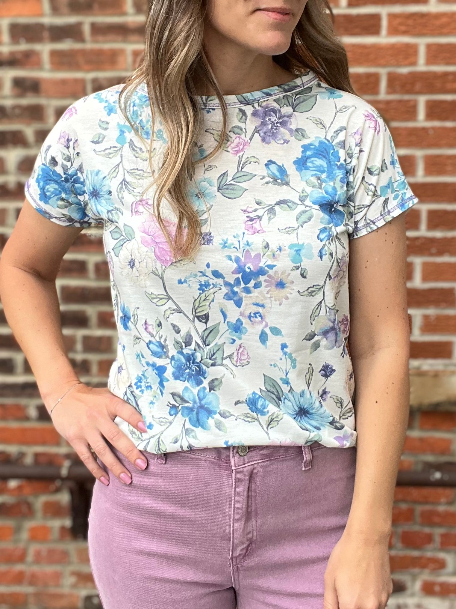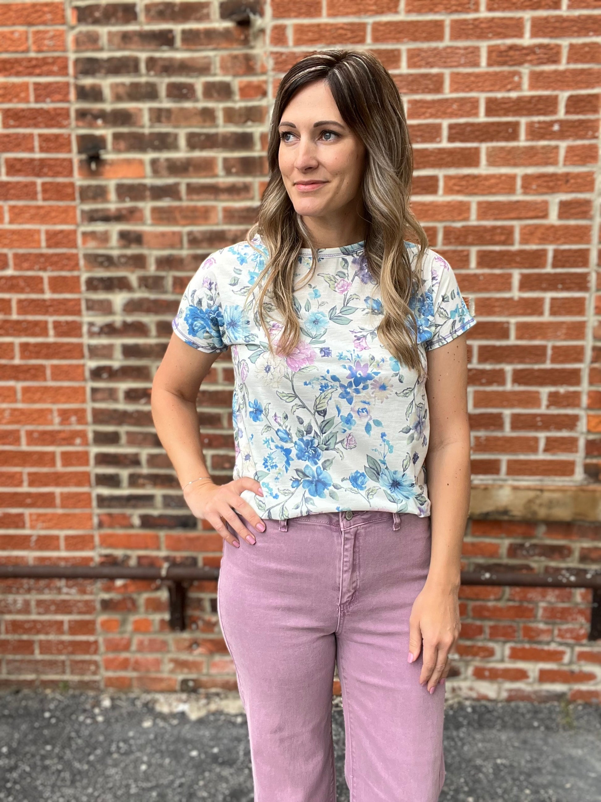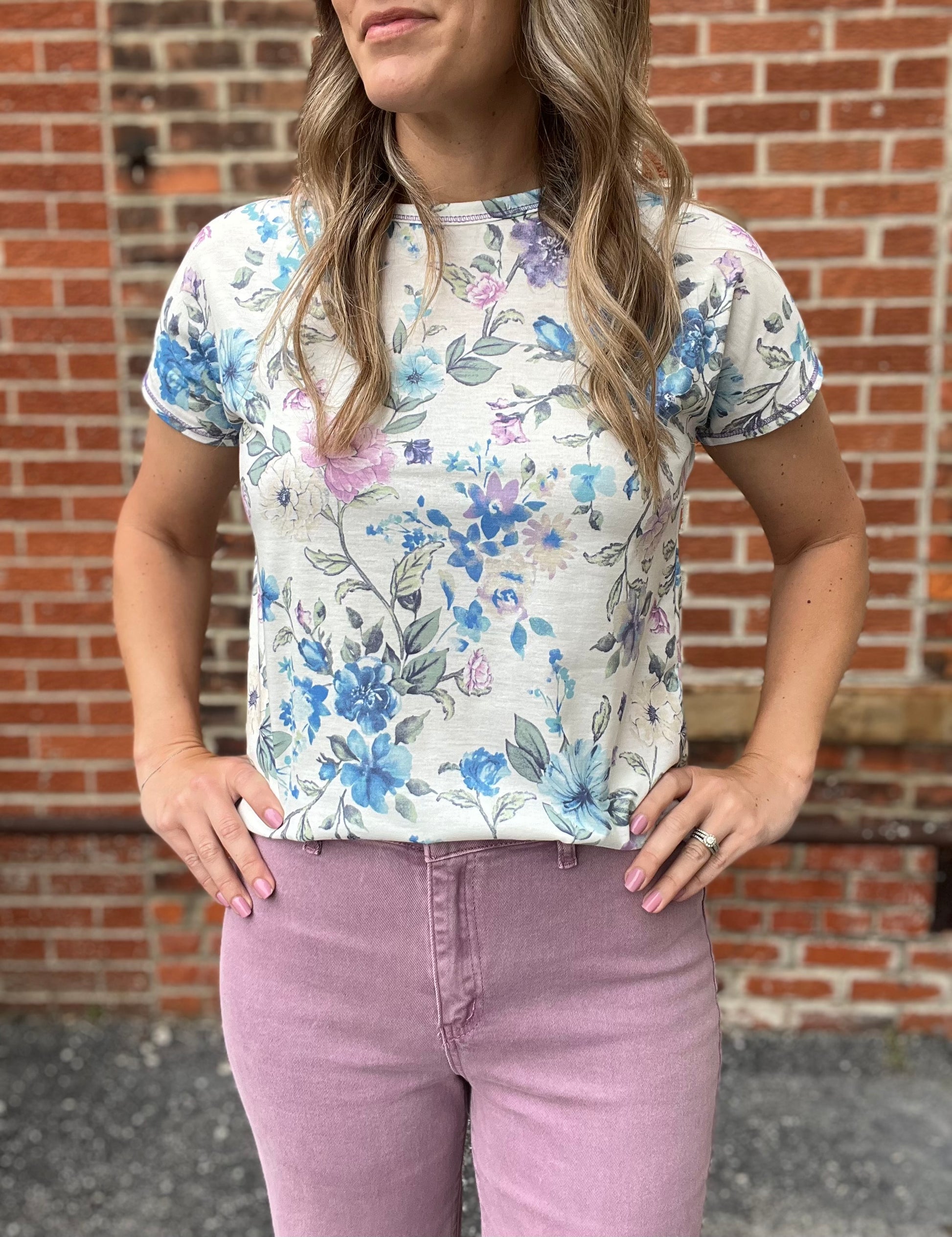 Light and lovely, the Breeze Floral Tee features a soft, feminine floral print in lavender, blue, and gentle green tones on a creamy white background. The relaxed fit and rounded hem offer easy, everyday comfort, while the lightweight fabric keeps it breathable and effortless. Perfect for a fresh, airy look that feels as good as it looks.