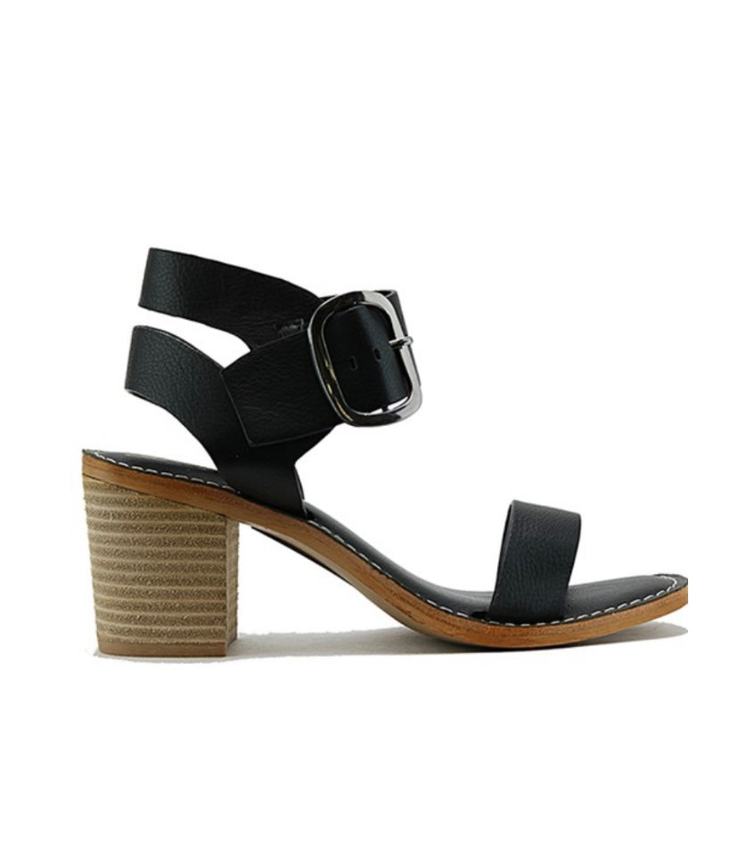 Black Casual Open Toe, Ankle Strap Heel With Buckle.