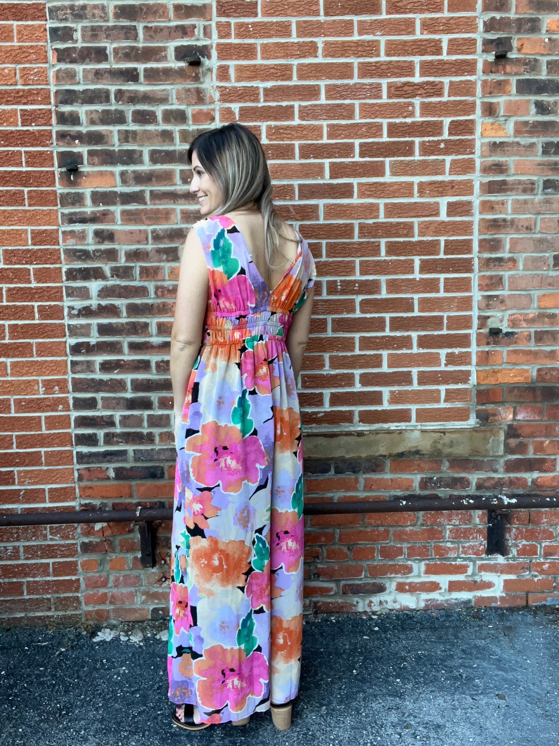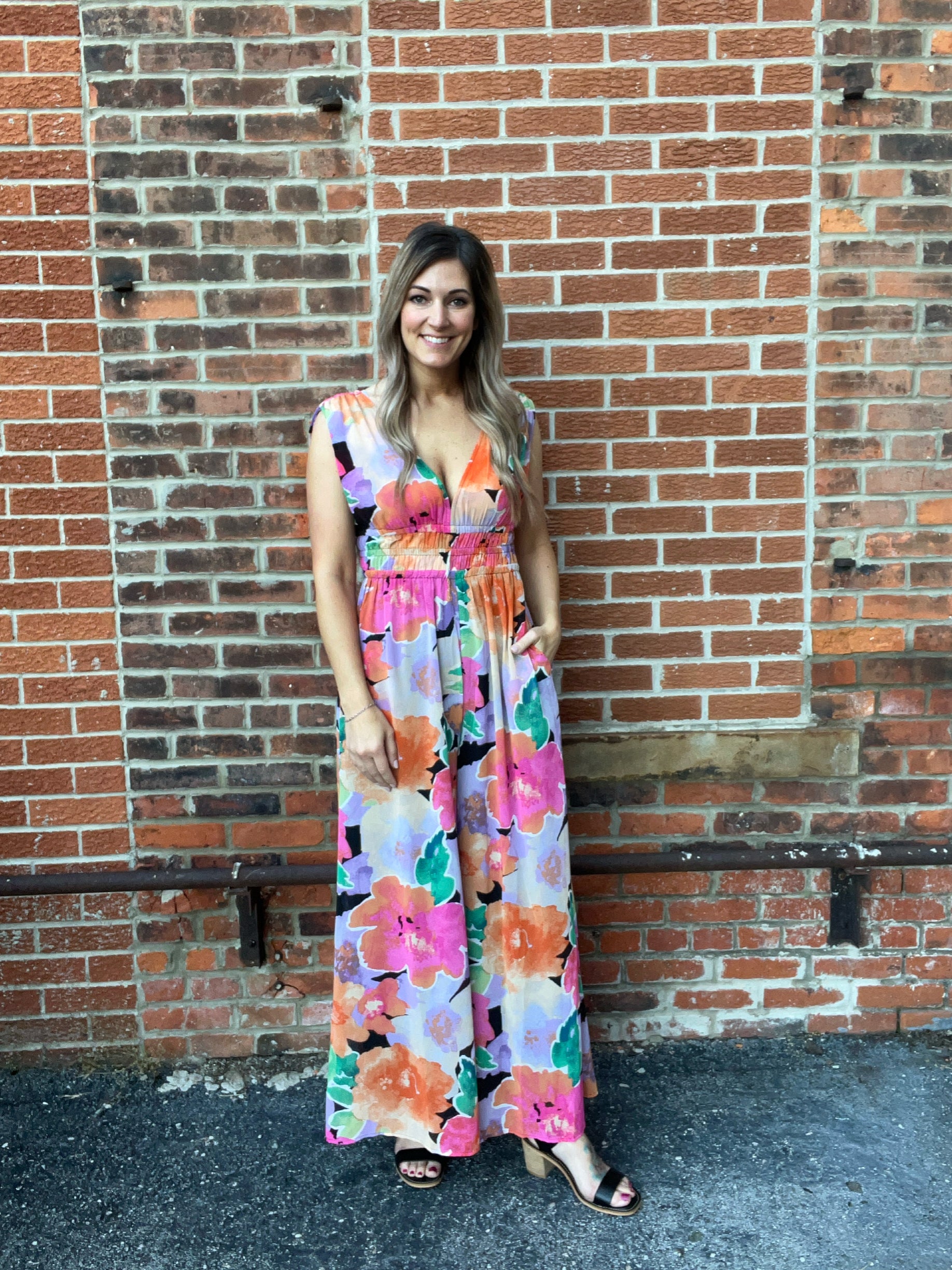 This Ankle Length Pant Suit Is Colorful and Will Make A Great Addition to Your Wardrobe For Spring. This Pantsuit Features A V Neckline and a Cinch Waist Detail. This Pantsuit will Make a for a Great Comfortable All Day Wear and is A Beautiful Elegant Statement Piece