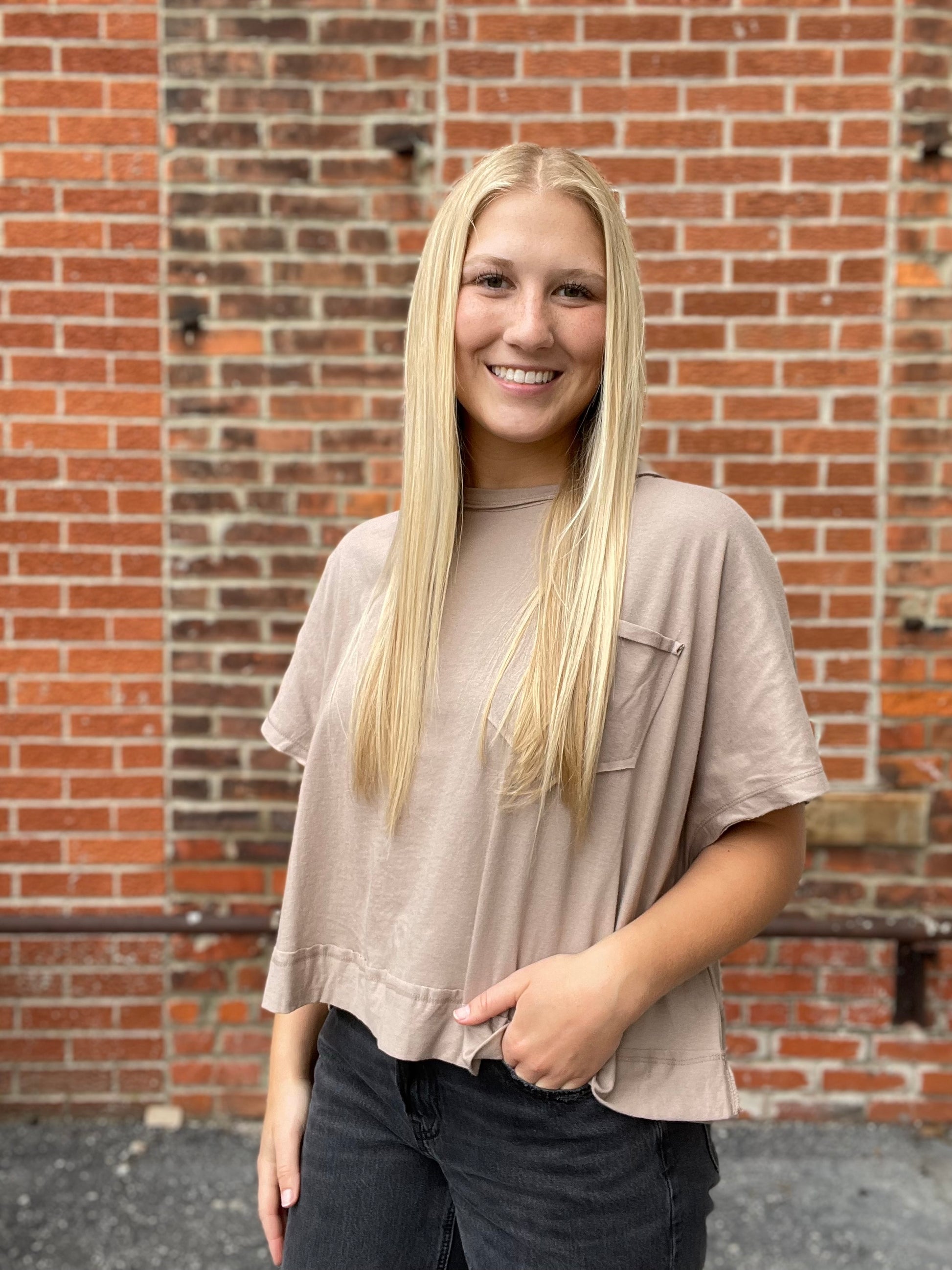 Easy, laid back, and effortlessly stylish this boxy tee is made for everyday wear. Designed in soft mint, ash mocha, blue, and classic black, it features a flowy, oversized fit that drapes just right for that relaxed, on trend look. The front pocket adds a casual touch, while the detailed hem and unique stitching on the back give it that extra boutique feel. Lightweight and breathable, it’s perfect for pairing with denim, leggings, or shorts for an easy outfit you’ll reach for again and again.