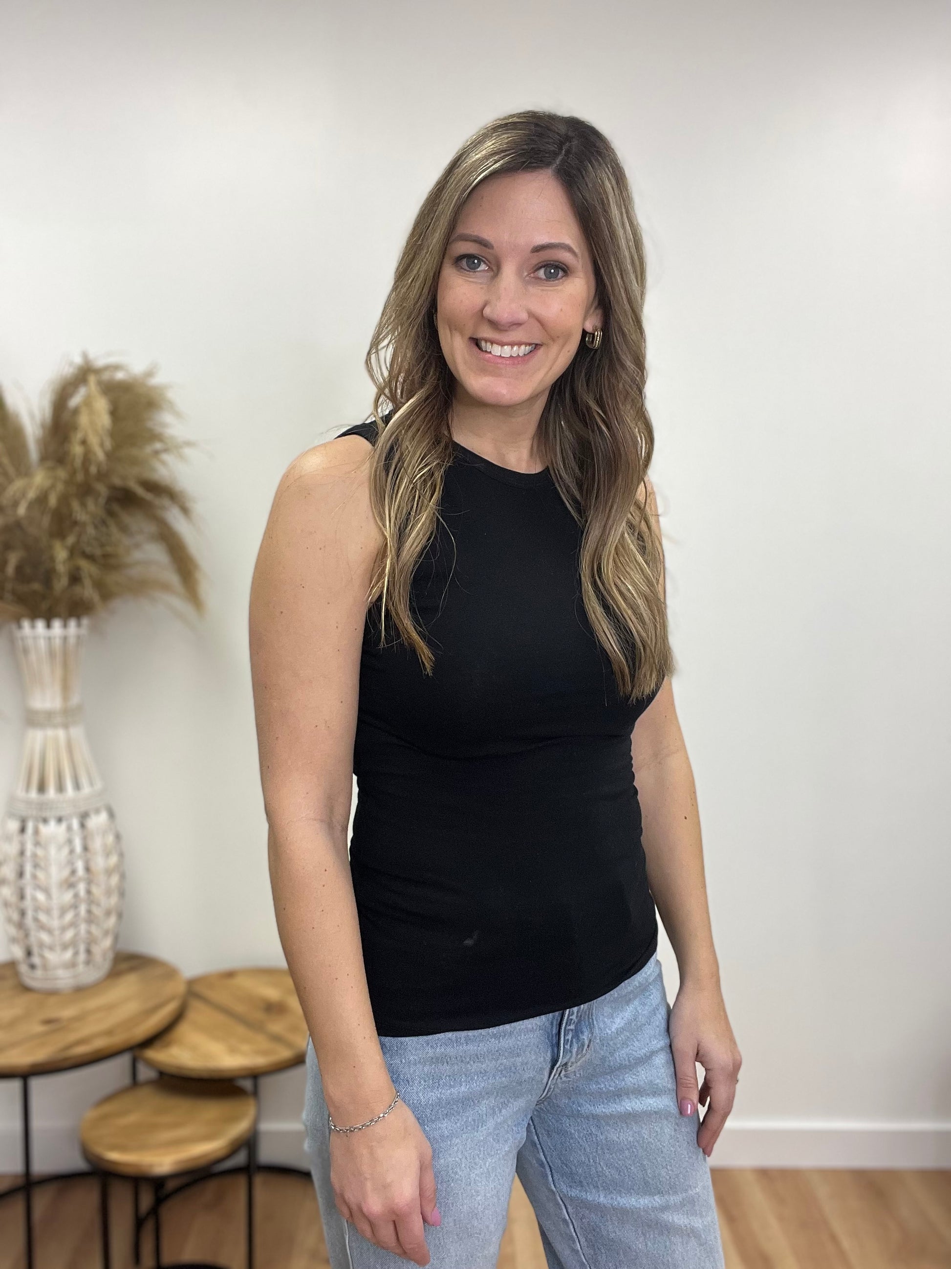Elevate your summer wardrobe with our High Neck Summer Tank, designed for both style and comfort. Crafted from a lightweight, breathable fabric, this tank keeps you cool while offering a sleek, modern look. The high neckline adds a touch of sophistication, making it perfect for dressing up or down. Available in black, grey, and sage, this versatile piece is a must-have for effortless warm-weather styling.