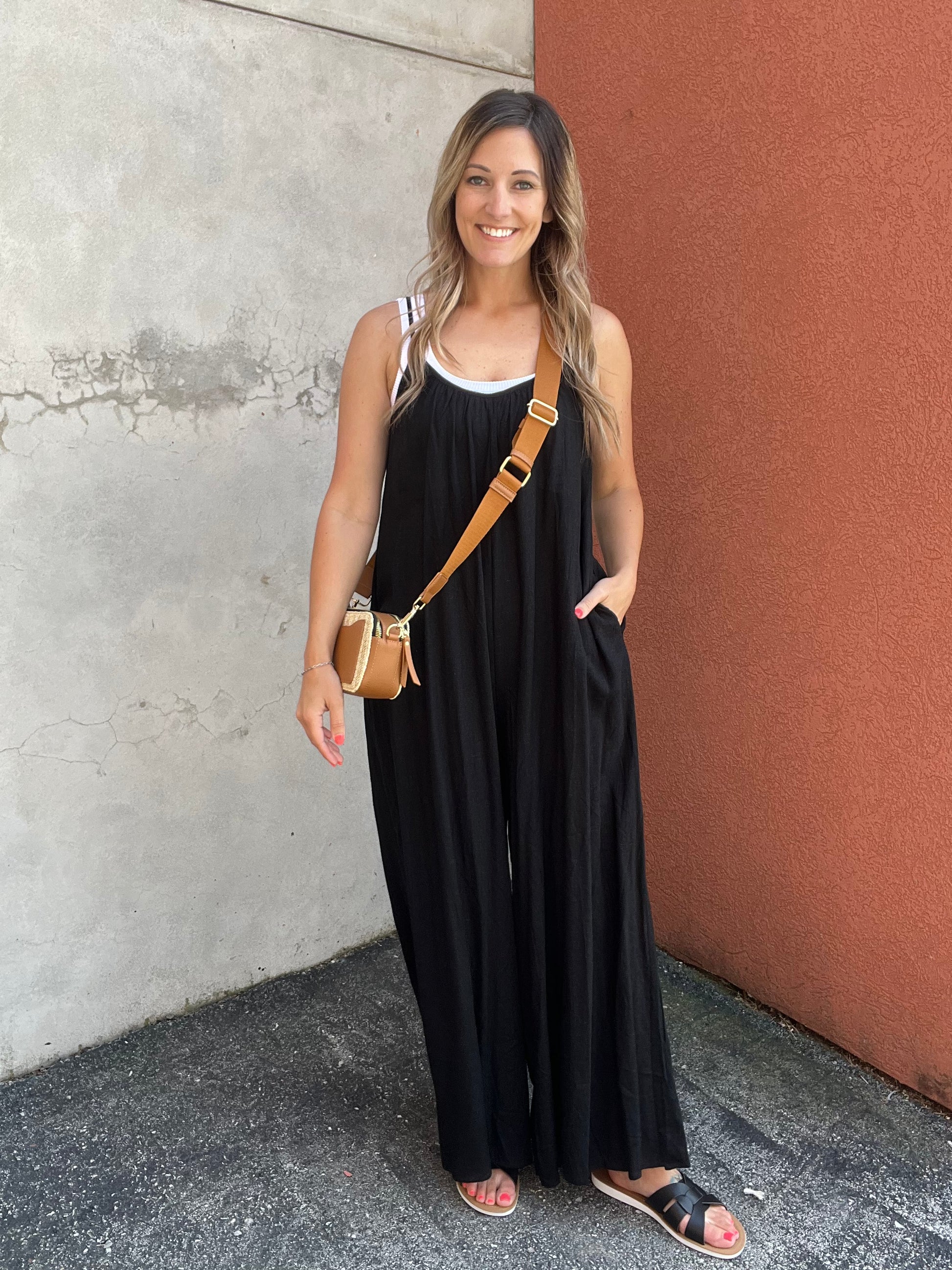 This Jumpsuit is Literally Something You Are Going to Want to Live in This Summer. Easy to Throw On for a Casual Day or Dress Up For a Night Out. This Linen Material is Lightweight and Breathable with Adjustable Shoulder Straps and Functional Pockets. This Cropped Ankle Length Jumpsuit Will Pair Perfectly with Your Favorite Sandals or Wedges.Â