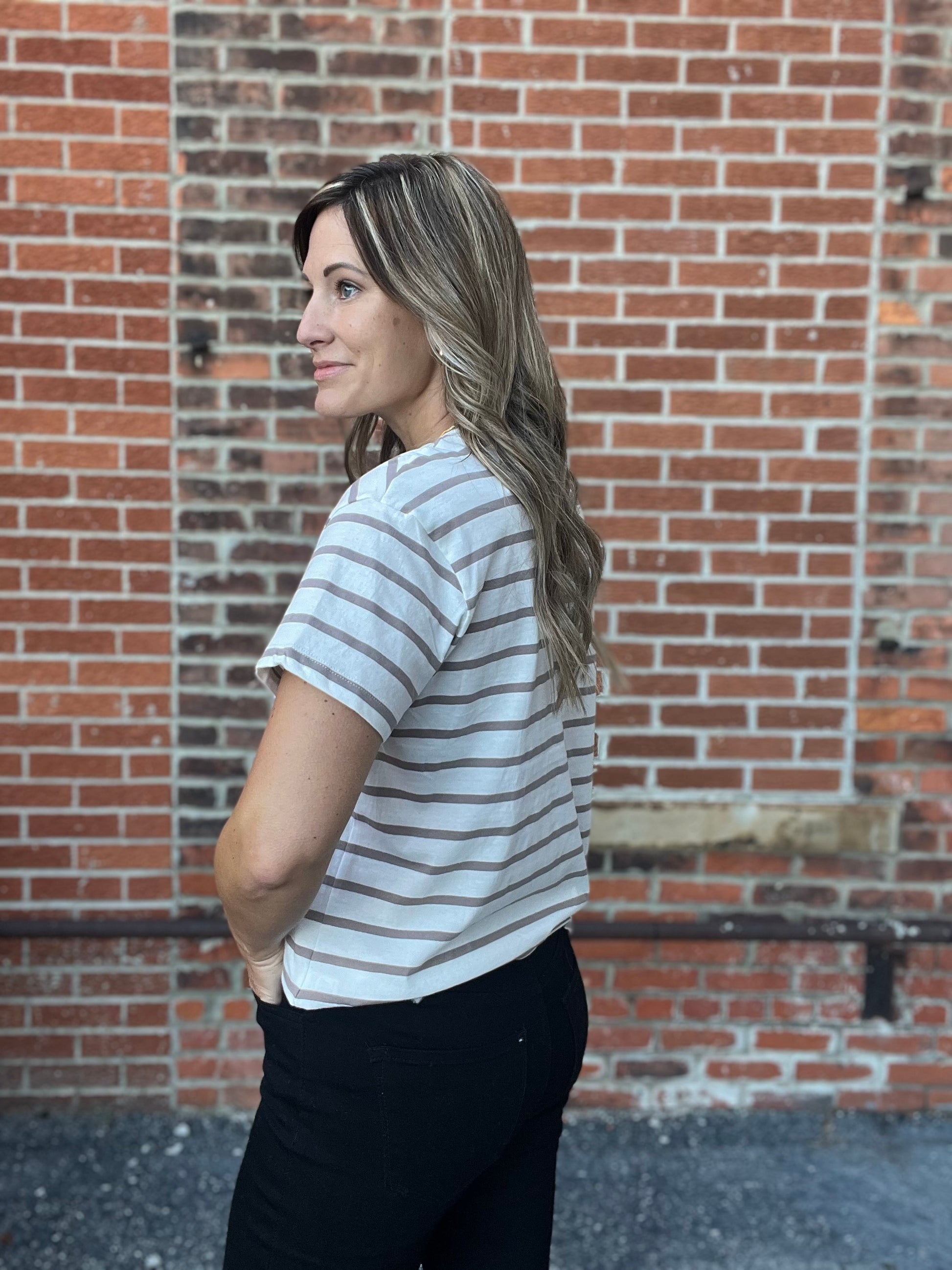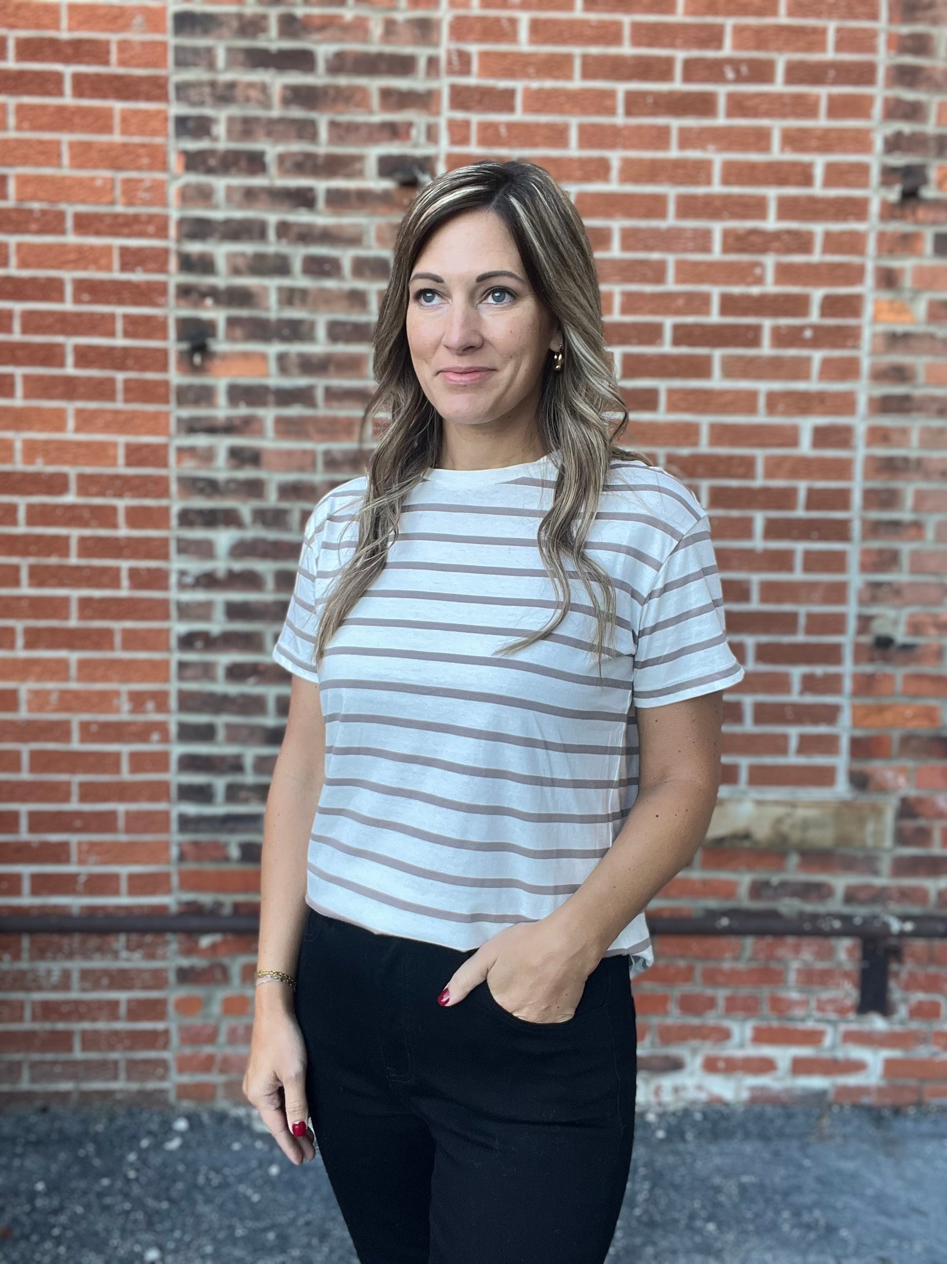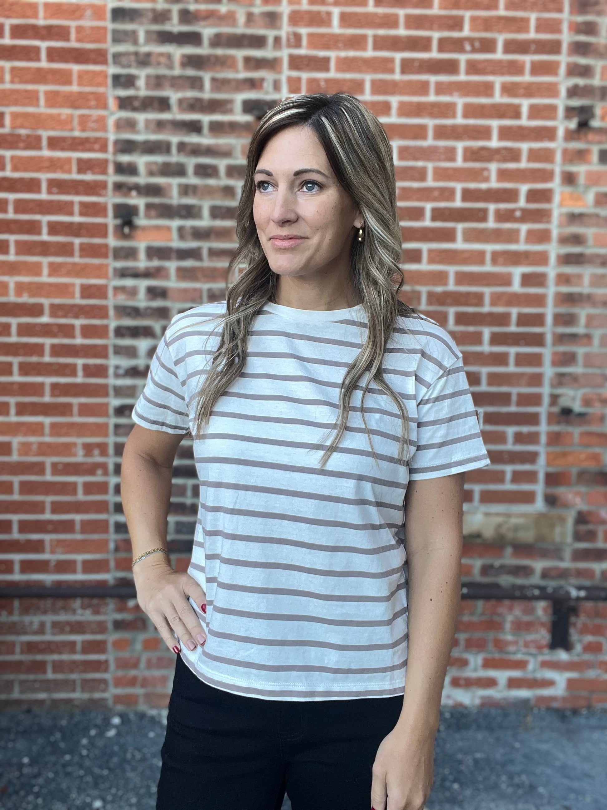 The Jalen Ivory and Mocha Stripped Short Sleeve