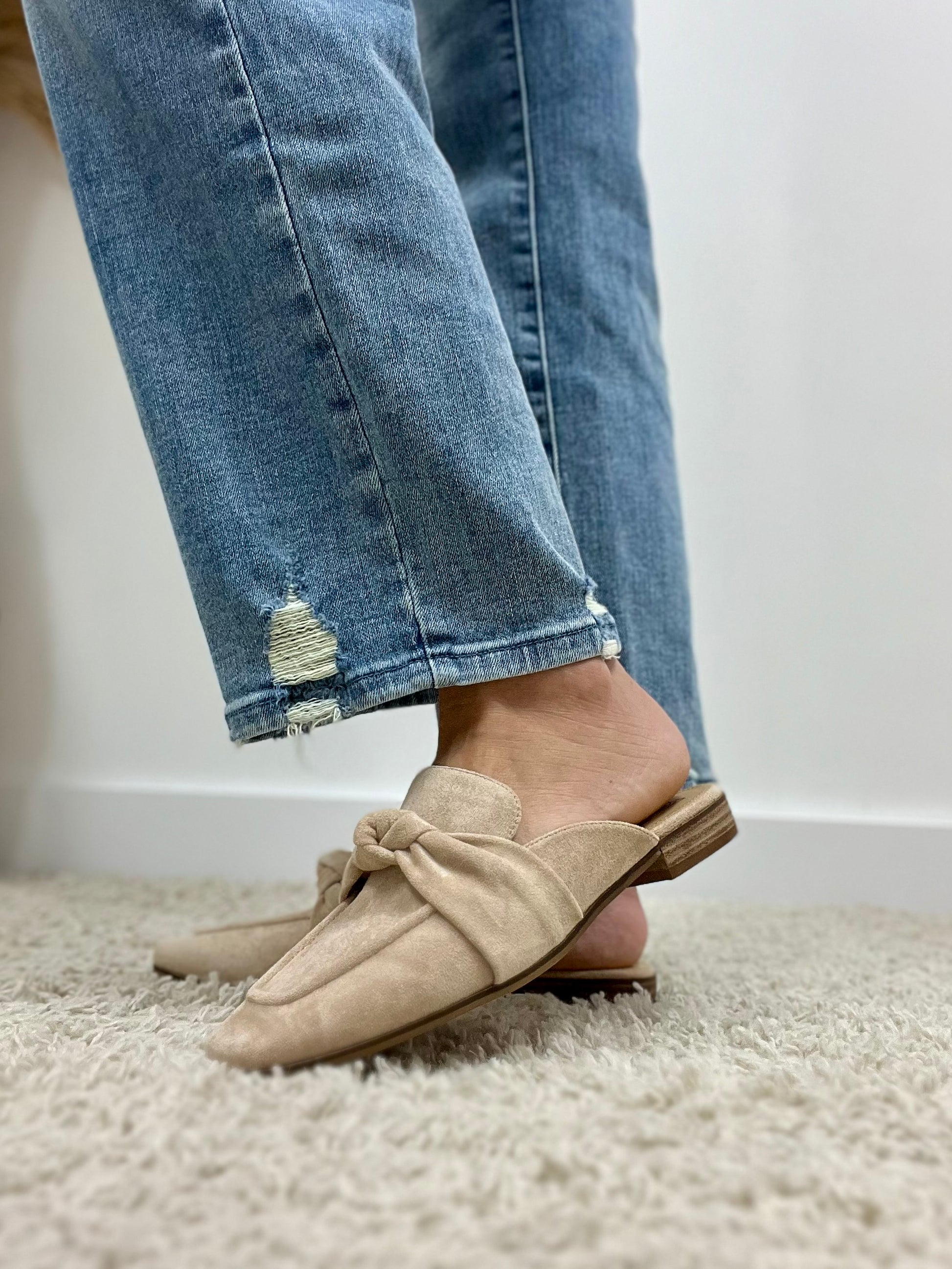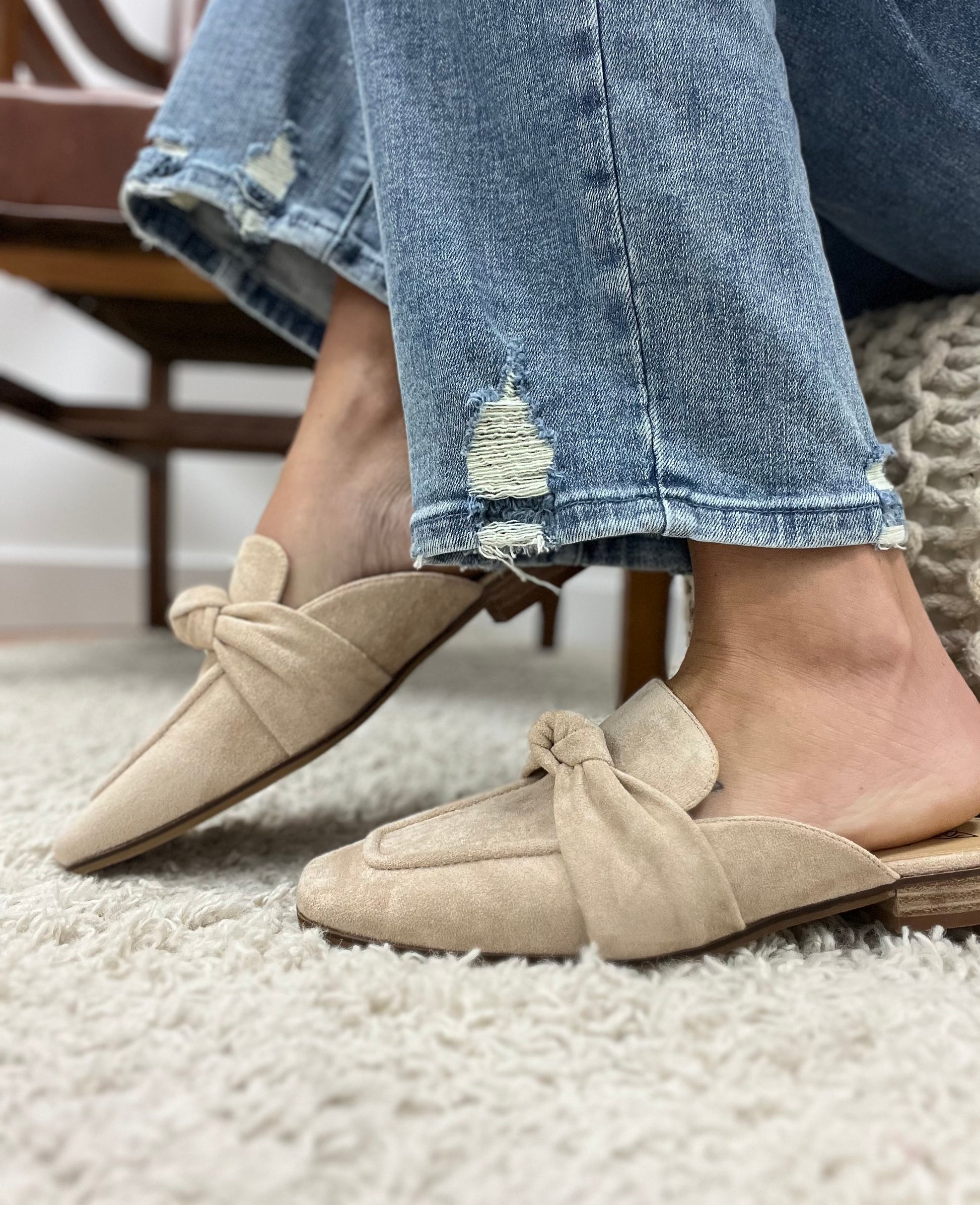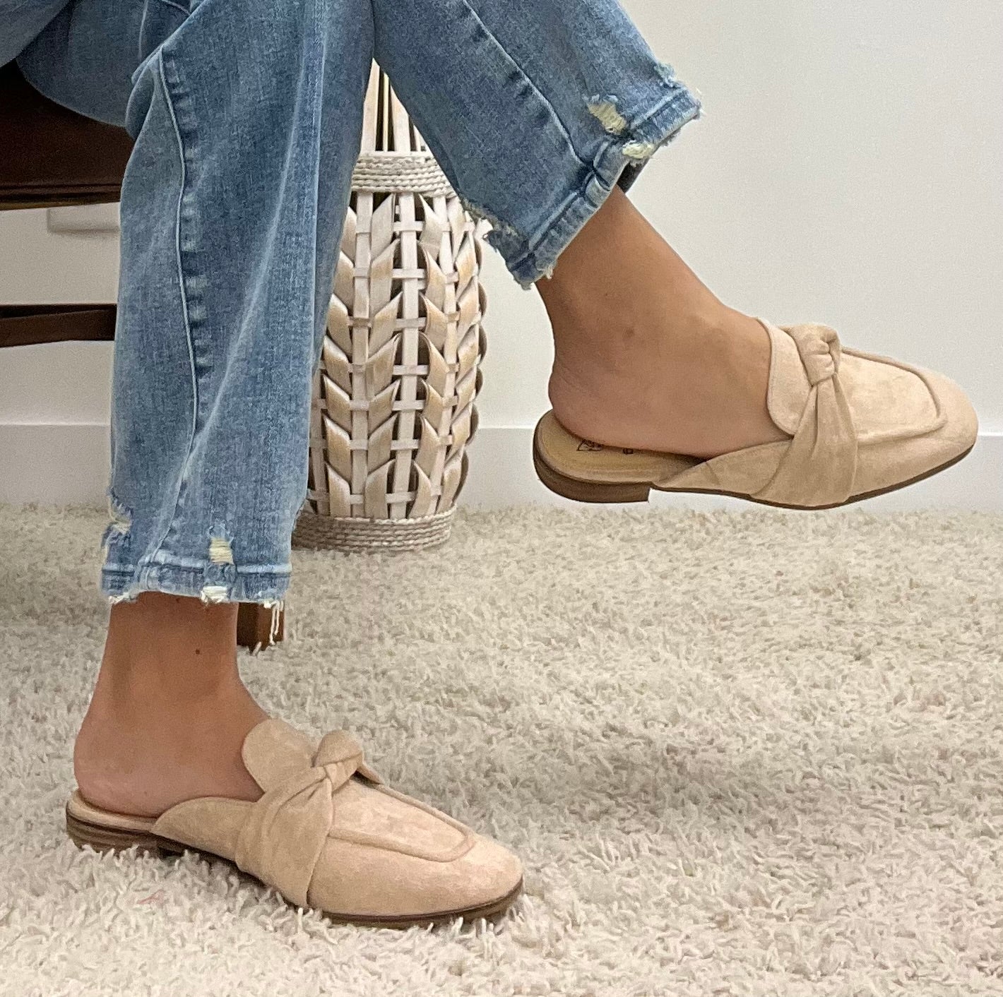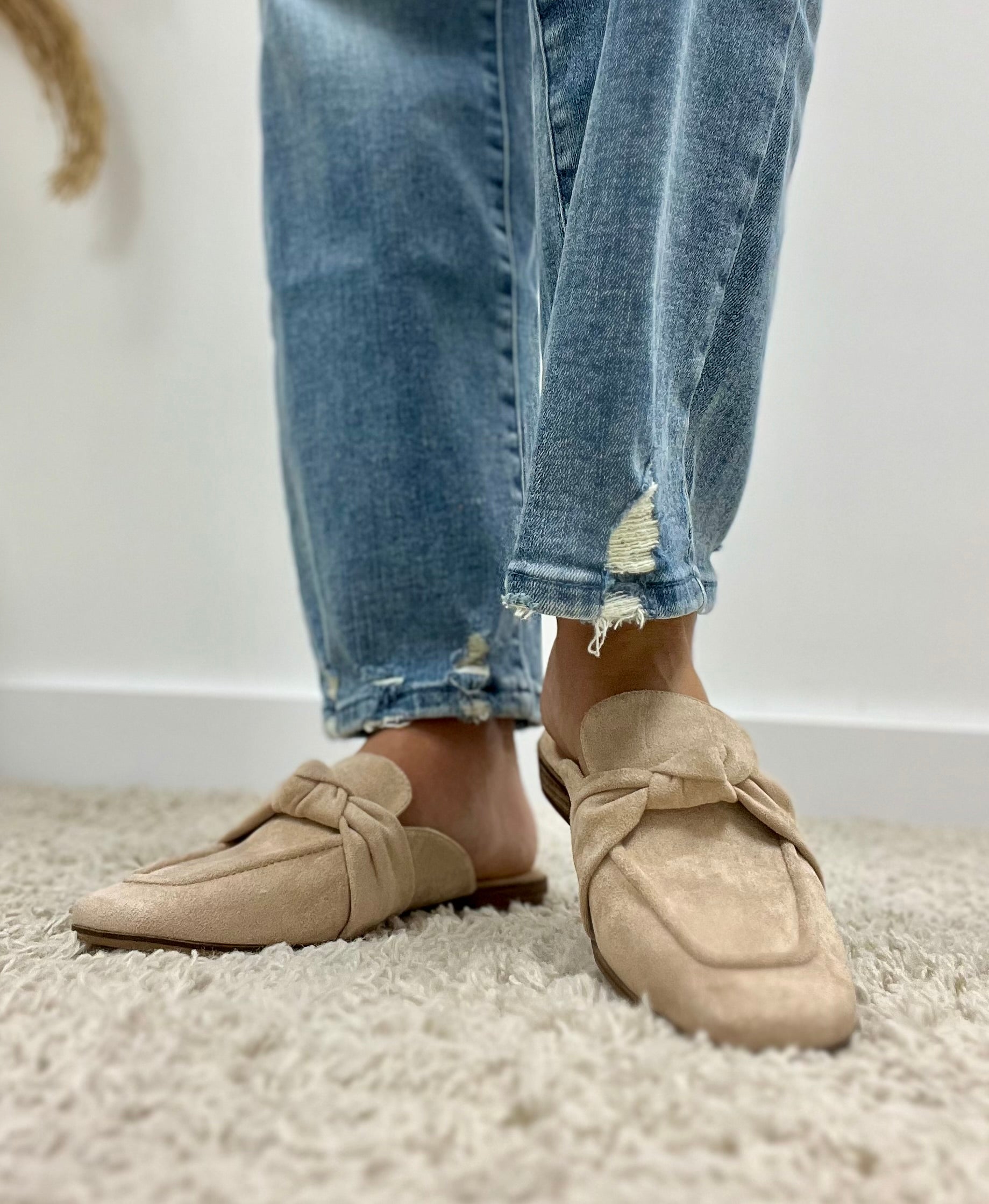 Step Into Effortless Elegance With These Slip-On Mule Flats. These Chic Flats Feature A Unique Twisted Strap Detail That Adds A Touch Of Sophistication To A Classic Design. The Slip-On Style Ensures Convenience And Ease Making These Perfect For Casual Evenings Or All Day Wear.