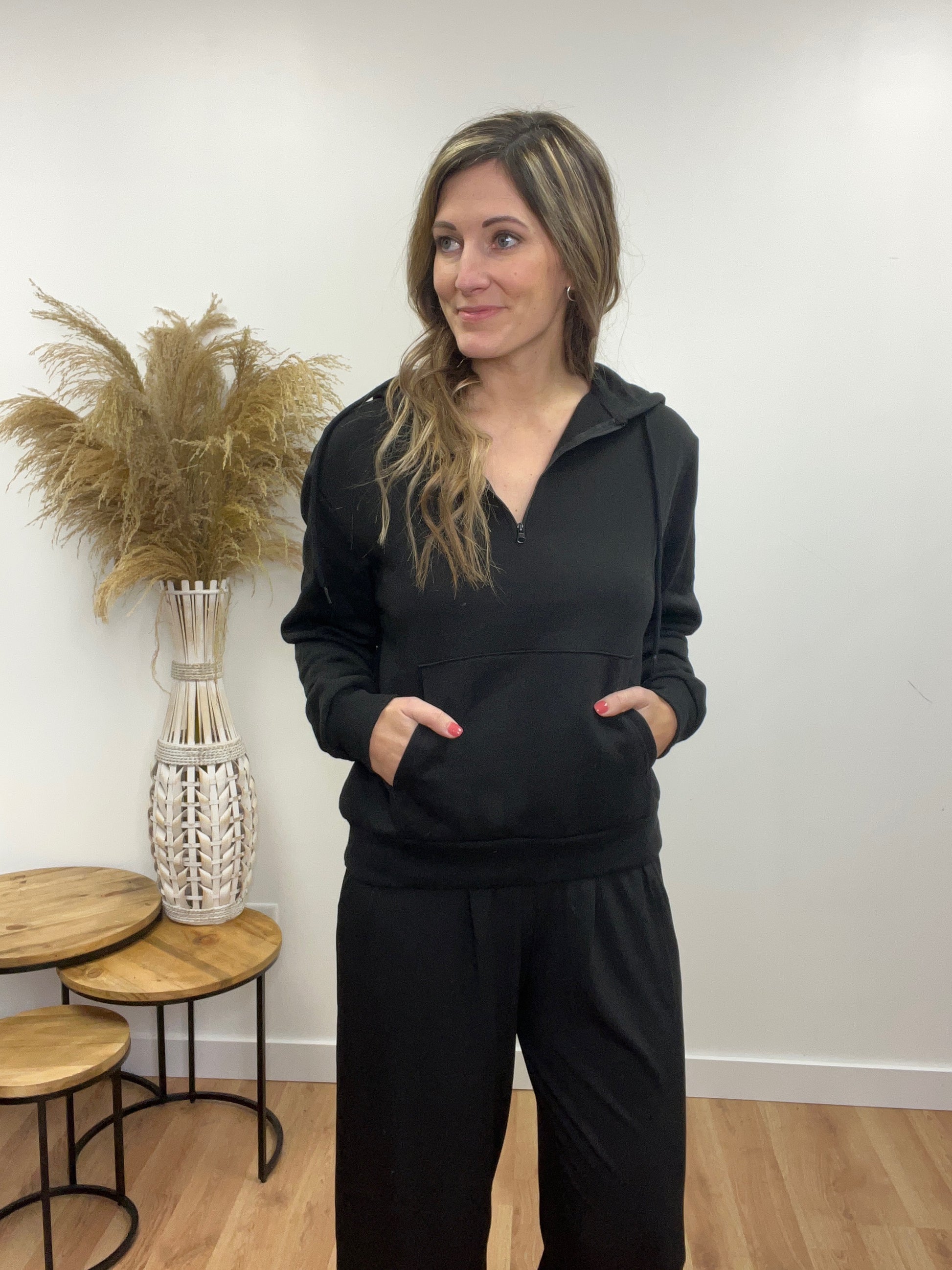Stay cozy and stylish with our 1/2 Zip Fleece Pullover Hoodie. Designed for ultimate comfort, this hoodie features a soft fleece fabric that keeps you warm on chilly days. The half-zip closure adds versatility and an athletic touch, while the adjustable drawstring on the kangaroo pocket provides a unique, functional twist for secure storage.