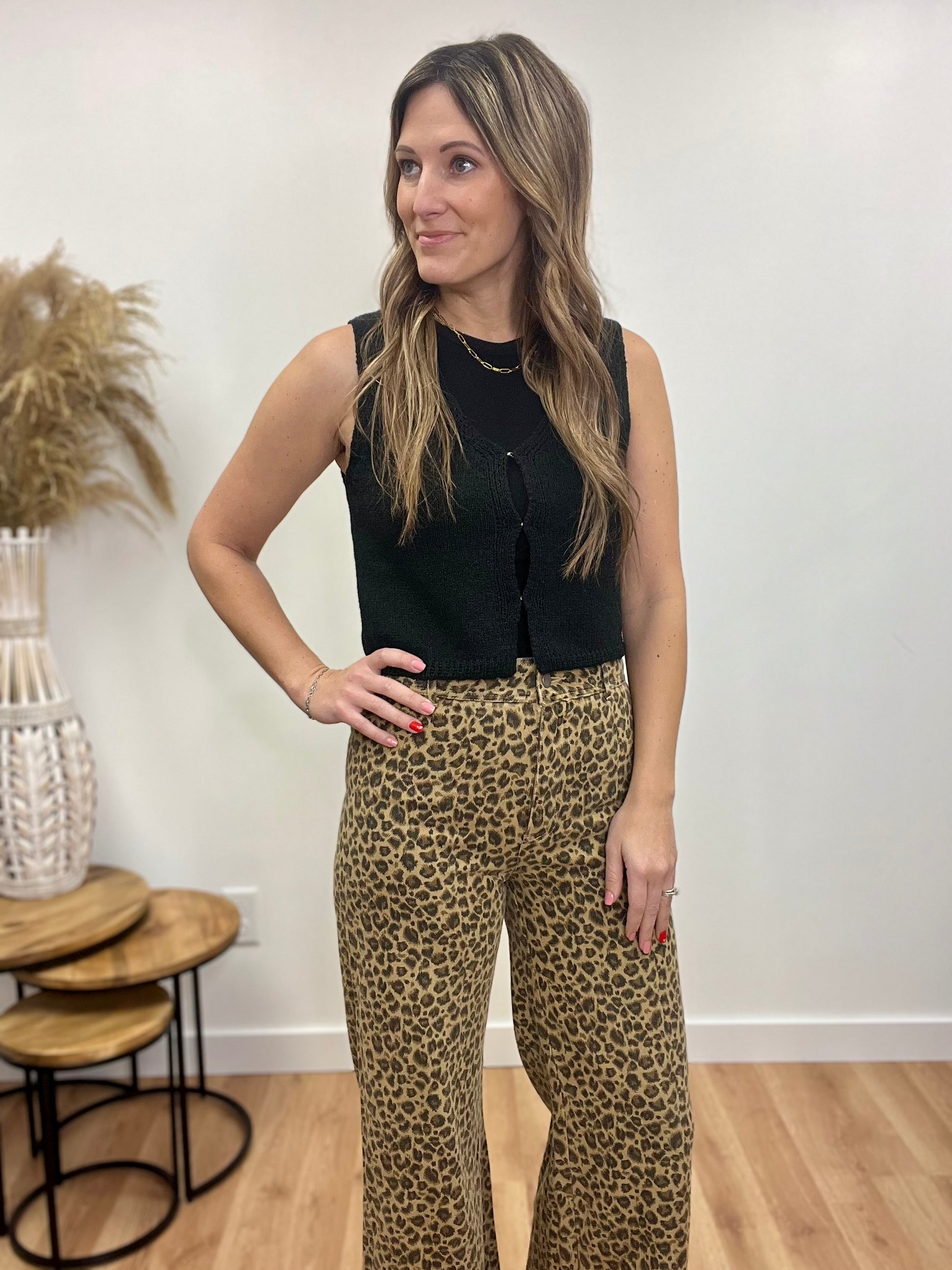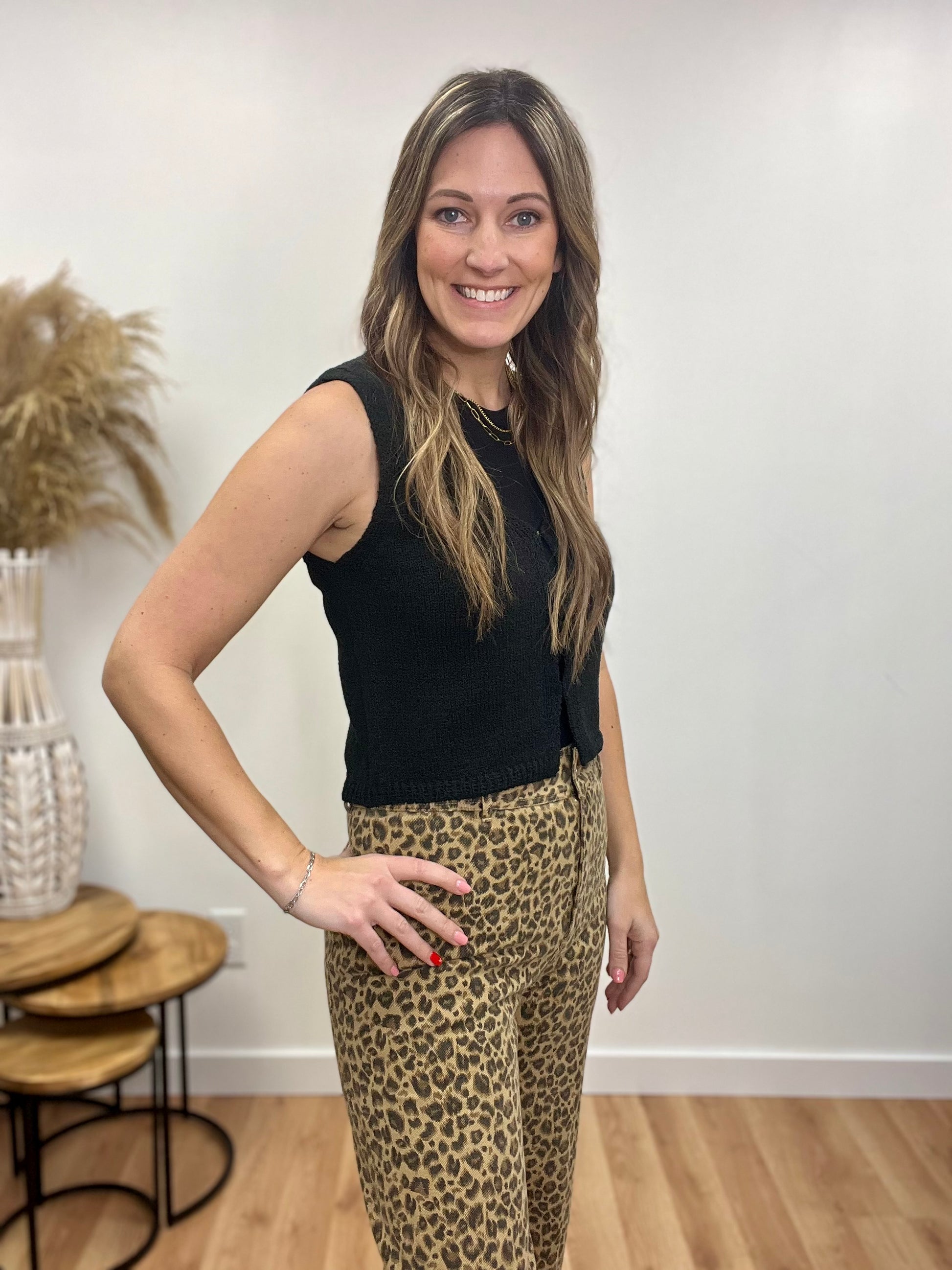 Stay effortlessly chic with this lightweight knitted sweater vest, perfect for layering in any season. Designed with a soft, breathable knit, it features three hidden front clasps for a subtle yet stylish detail. The versatile fit makes it ideal for wearing over a fitted long-sleeve or short-sleeve top, adding an extra touch of texture and warmth without the bulk.