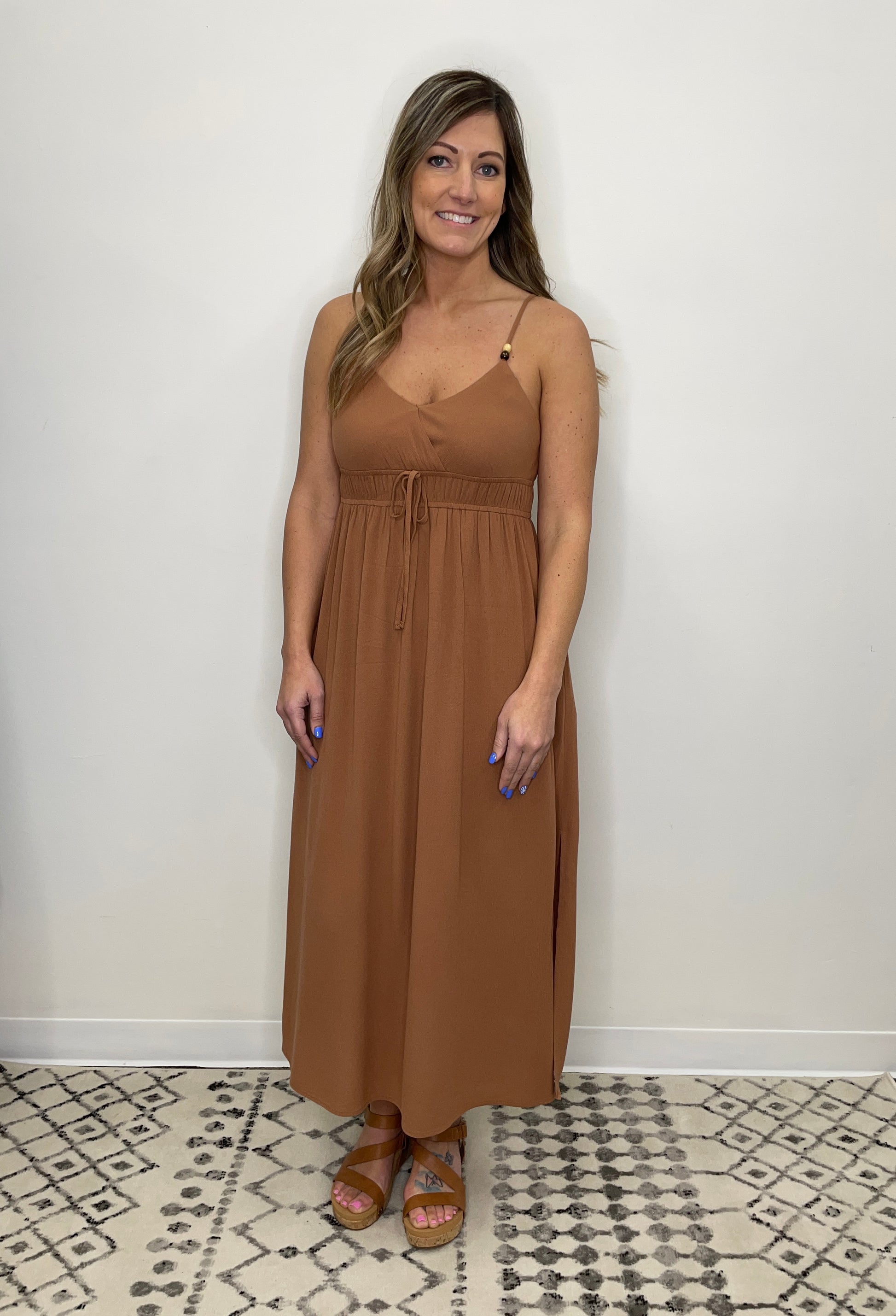 Beautiful Ankle Maxi Dress With Woven Double Elastic Waist, Simple Yet Chic.