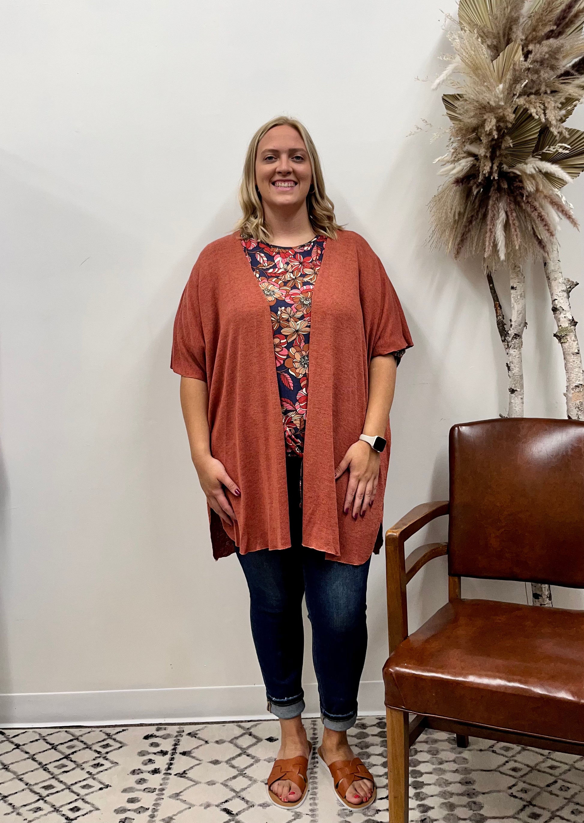 Lightweight Short Sleeve Knit Curvy Cardigan