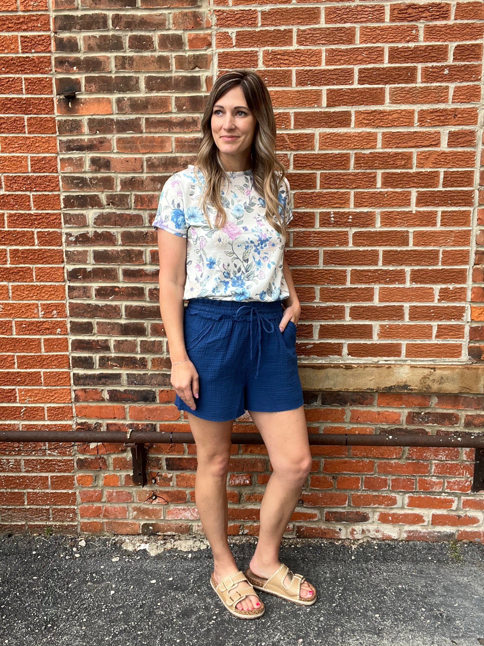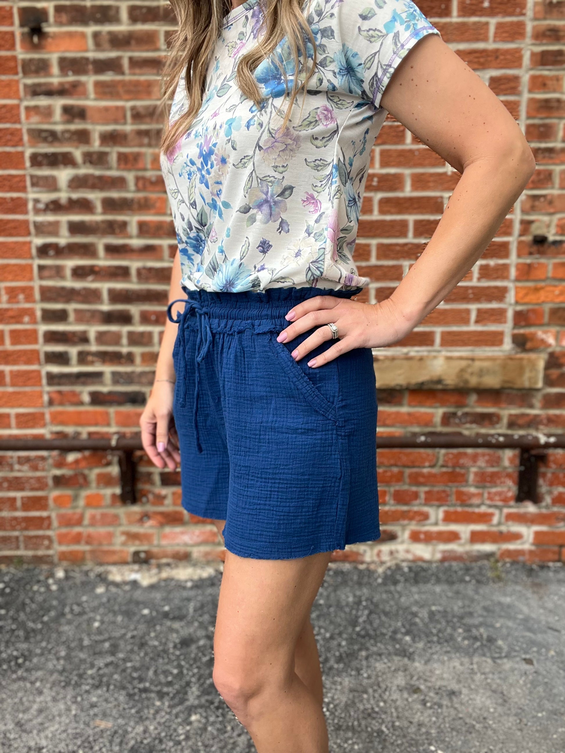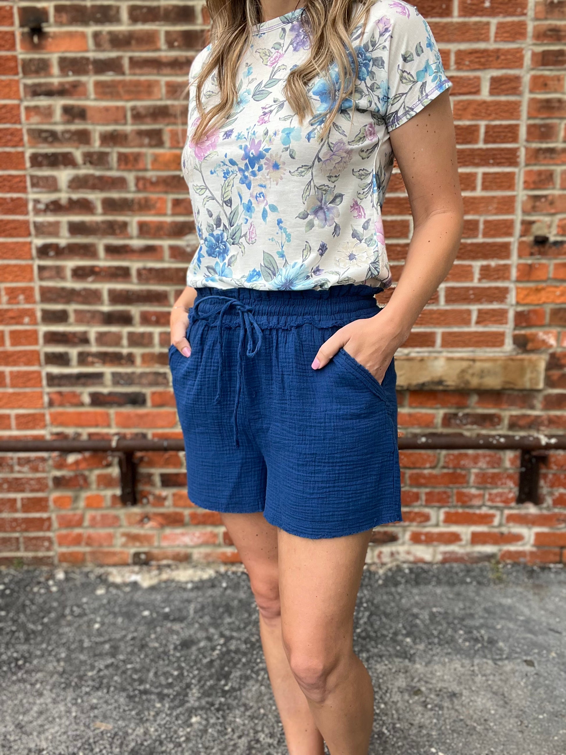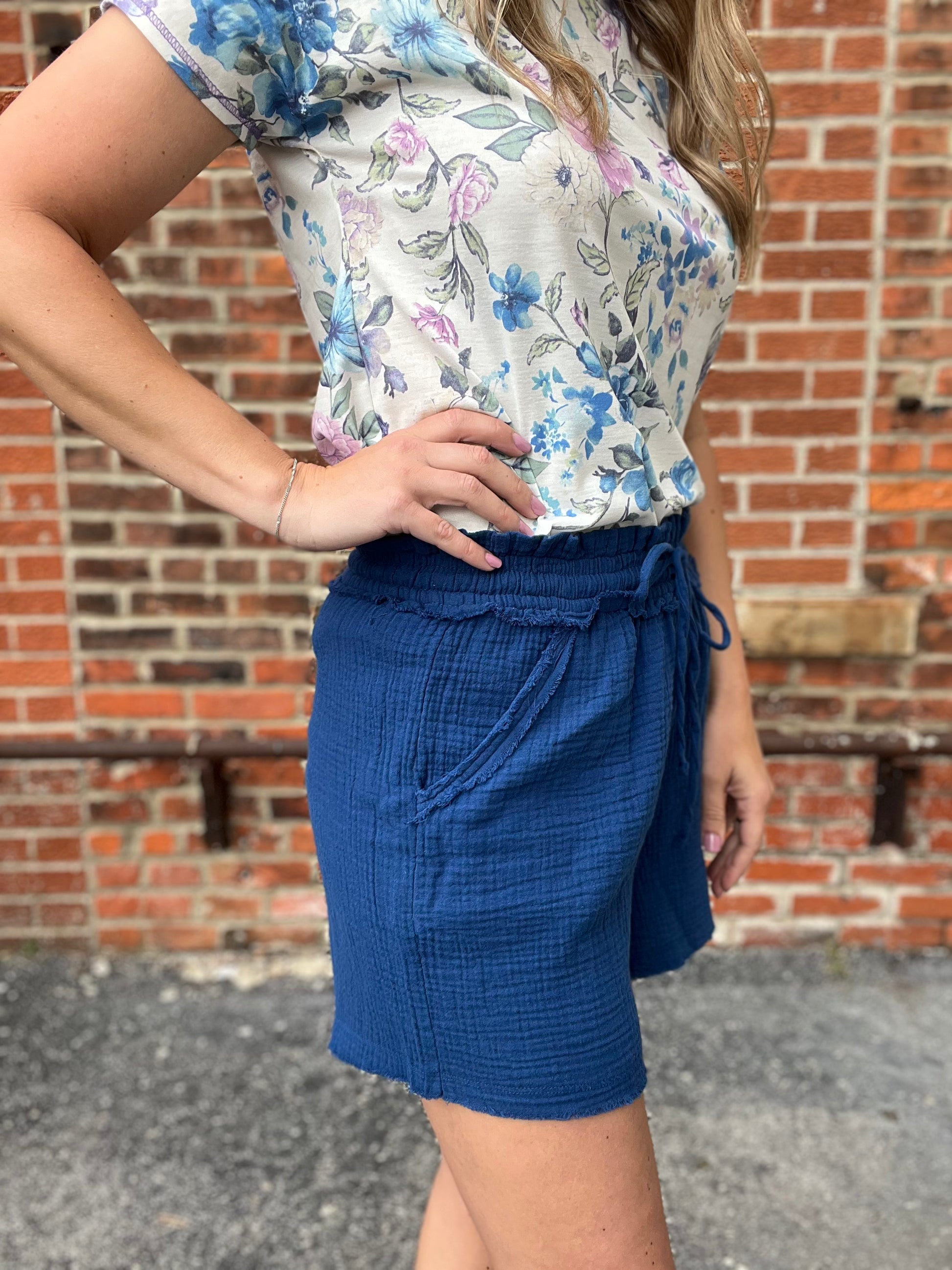 Perfection! Lightweight and effortlessly chic, the Kenya Gauze Shorts are an essential. Crafted from breathable beige gauze fabric, these shorts feature a relaxed fit with a raw hem for a touch of casual charm. The elastic tie waist ensures a comfortable, adjustable fit, while the front pockets add both style and functionality. Perfect for pairing with a tank or breezy blouse for an easy, laid back look!