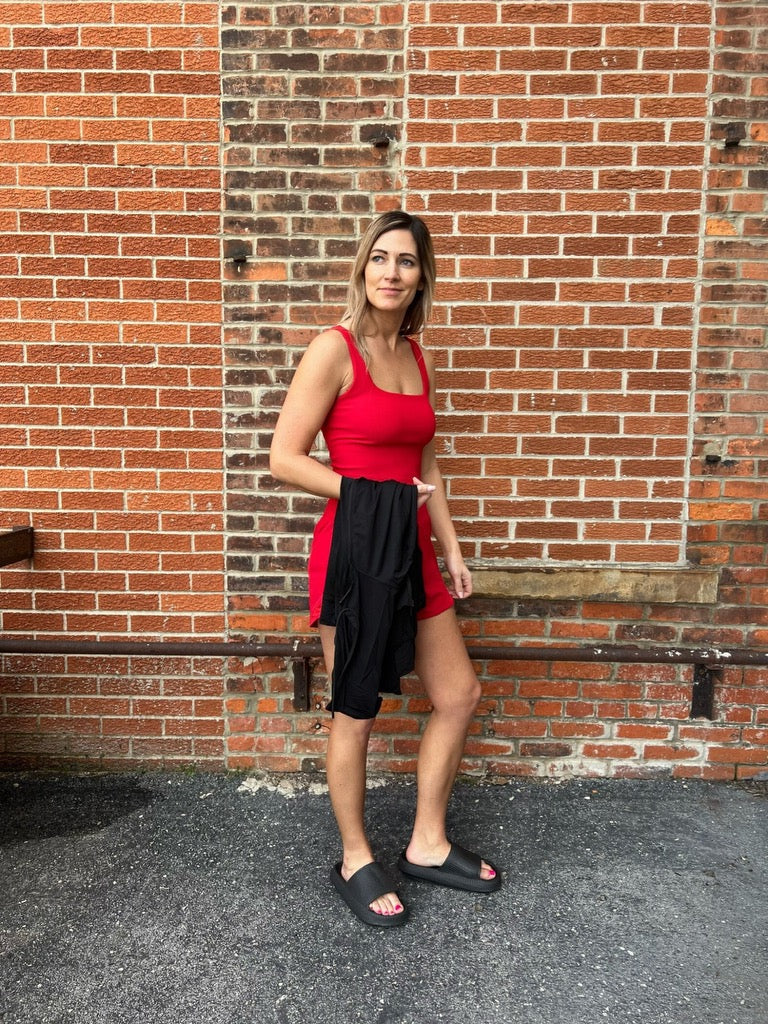 This Nylon Square Neck Cropped Tank Top Is Very Stretchy. This Top Features a Built In Padded Bra and The Ribbed Detail Makes This Top IrresistibleĀ