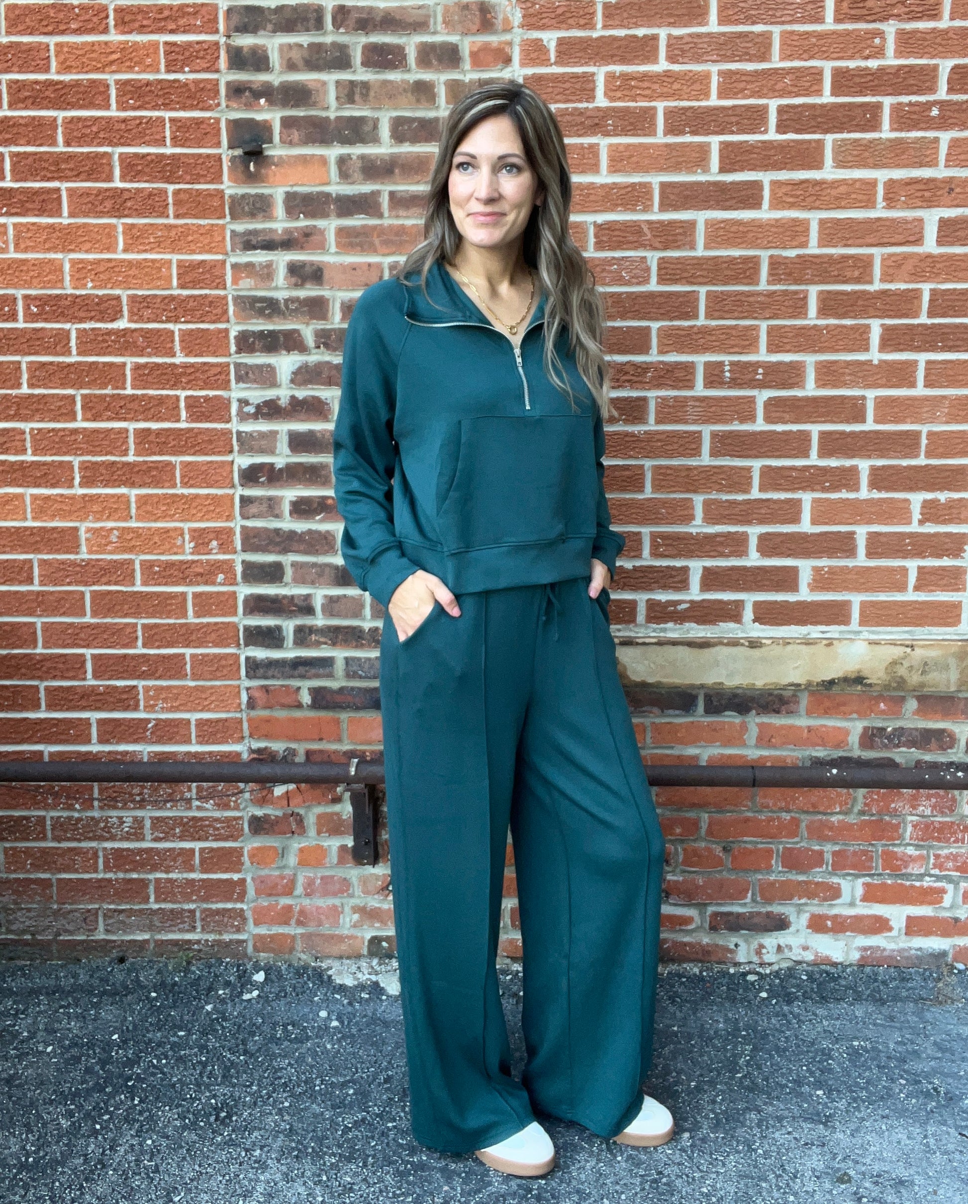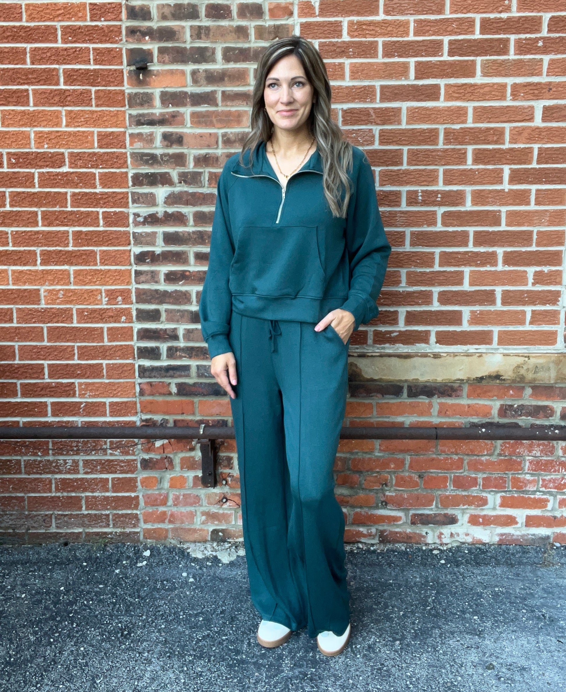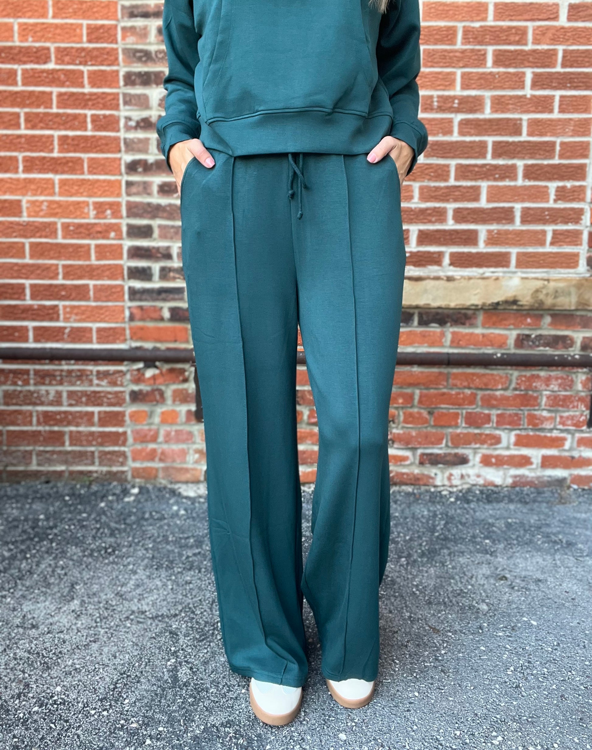 These lightweight, wide leg bottoms are all about easy comfort and effortless style. Made from soft, breathable fabric, they feature an exposed center seam, adjustable waistband, and side pockets for a laid back look that’s perfect for lounging or on the go days.