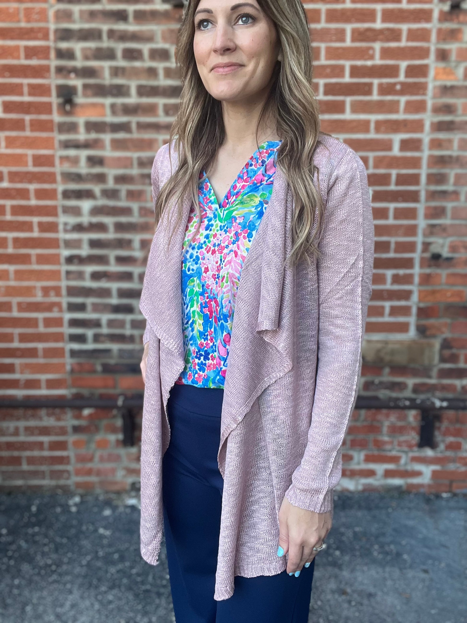 This soft, semi sheer slub knit cardigan features an open front design and long sleeves for easy layering. The textured fabric adds a laid back touch, while the breathable, featherlight feel makes it perfect for transitional weather or tossing on indoors. Flowy, flattering, and versatile this piece is your go to for that just right layer.