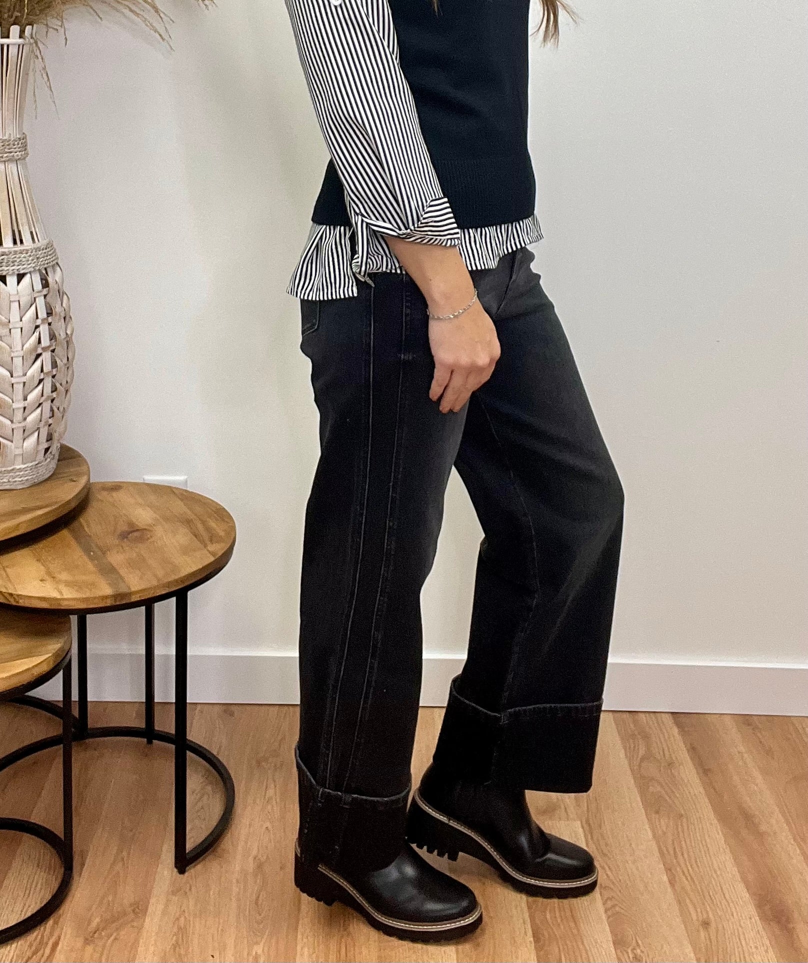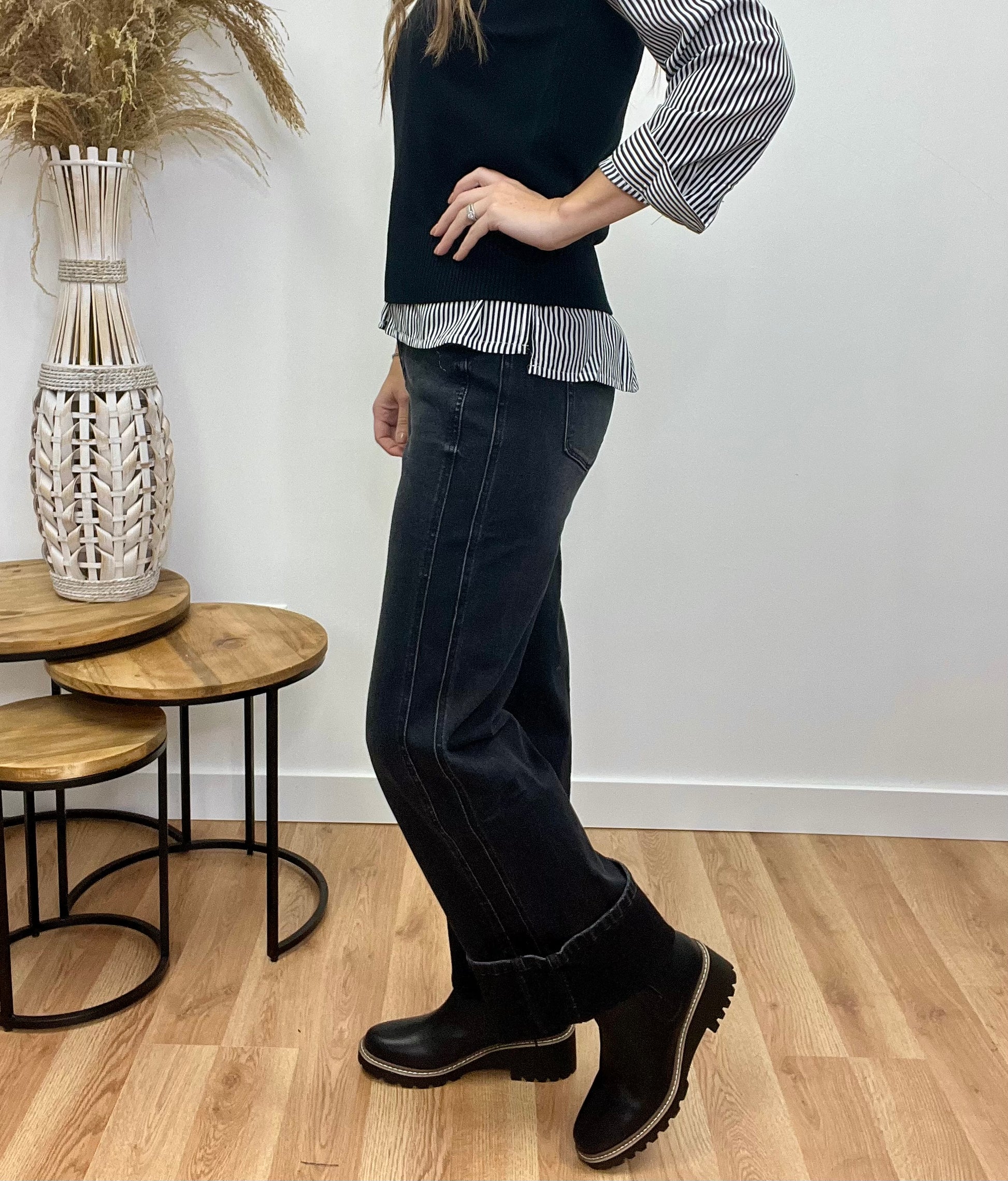 Upgrade your denim game with these Super High-Rise Cut Baggy Jeans! Designed for ultimate comfort and style, these jeans feature a flattering 11-inch front rise that accentuates your waist, while the roomy baggy fit ensures ease of movement. They deliver a relaxed feel and a perfect fit every time. The ankle-length design with a 28-inch inseam adds a modern, versatile touch, and the 4.5-inch cuff detail brings extra flair. Dress them up with heels or down with sneakers for a chic, effortless look.