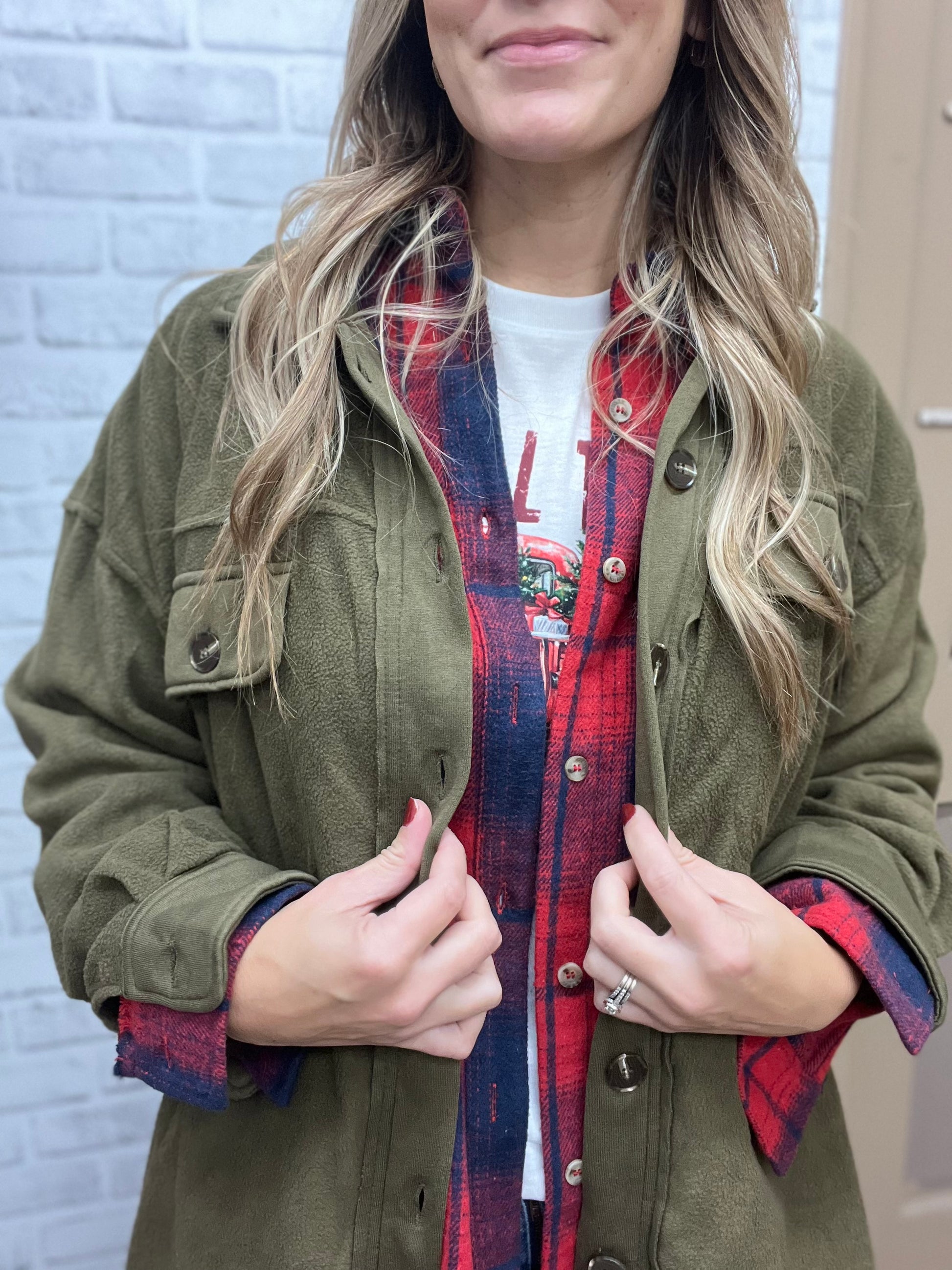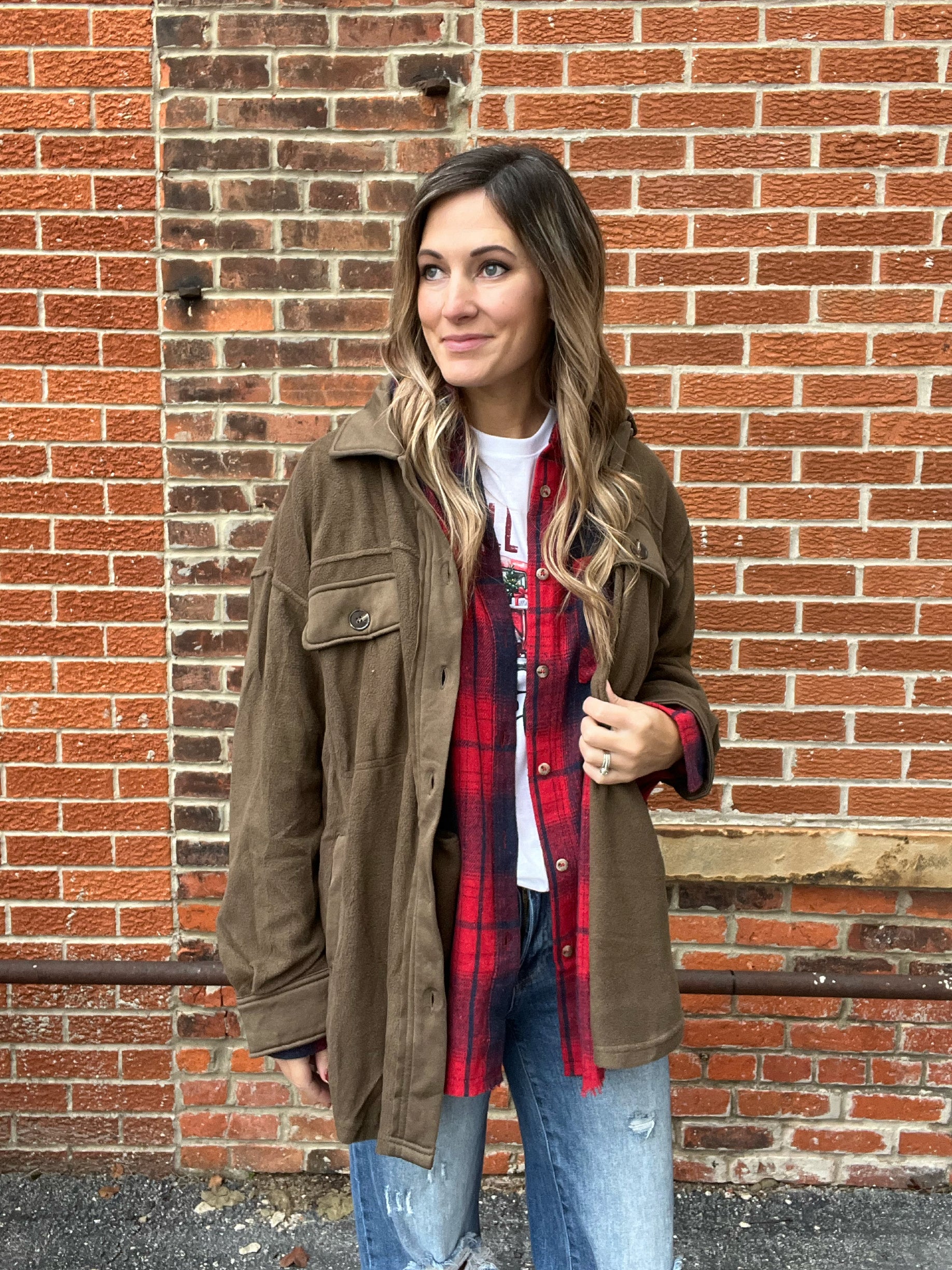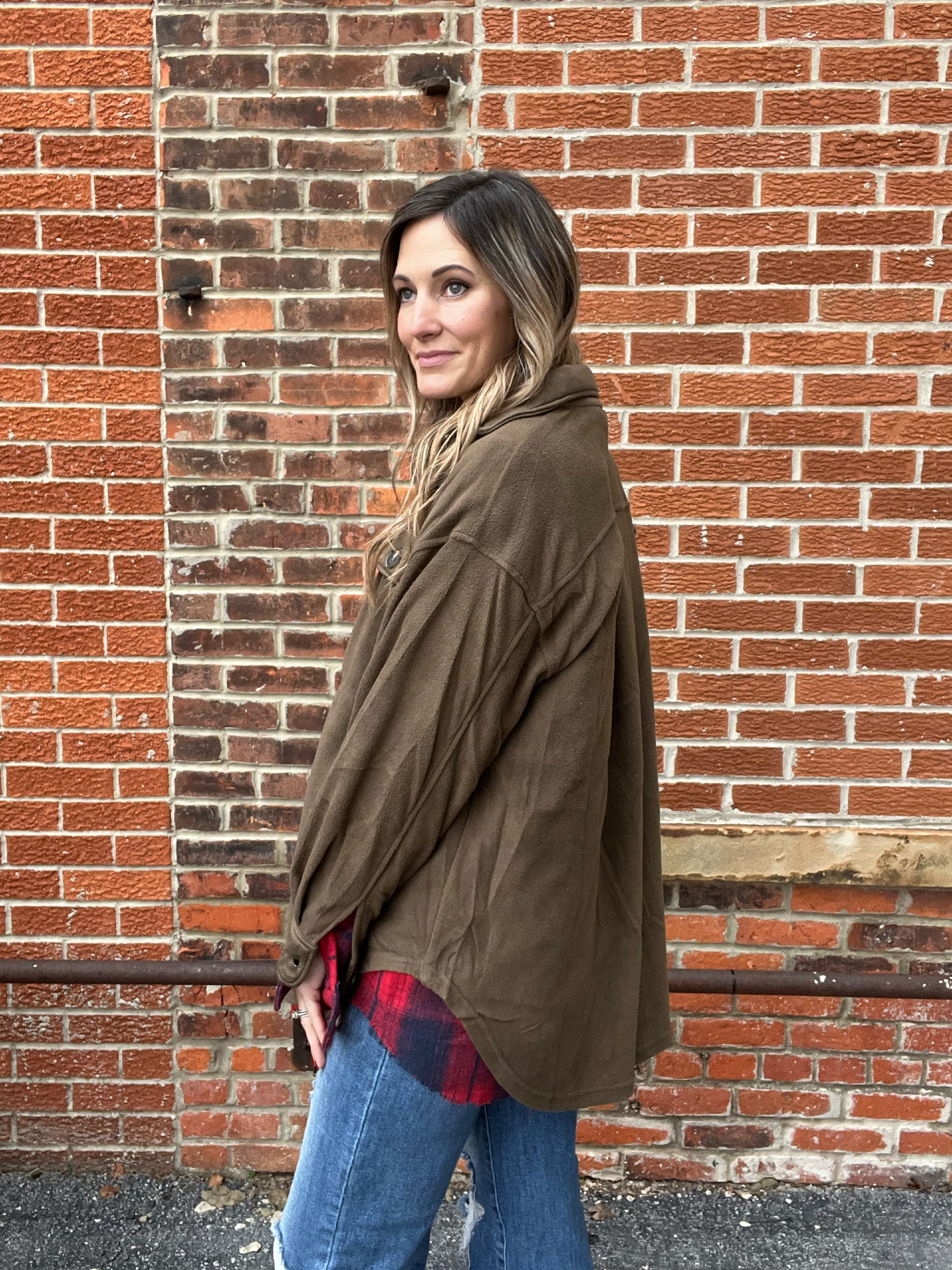 Stay warm and stylish with our Oversized Button-Down Fleece Shacket—the perfect blend of a shirt and jacket. Made from ultra-cozy fleece, this relaxed-fit layering piece features a classic button-down front and a laid-back vibe. Ideal for chilly days, it pairs effortlessly with jeans or leggings for a casual, on-trend look.