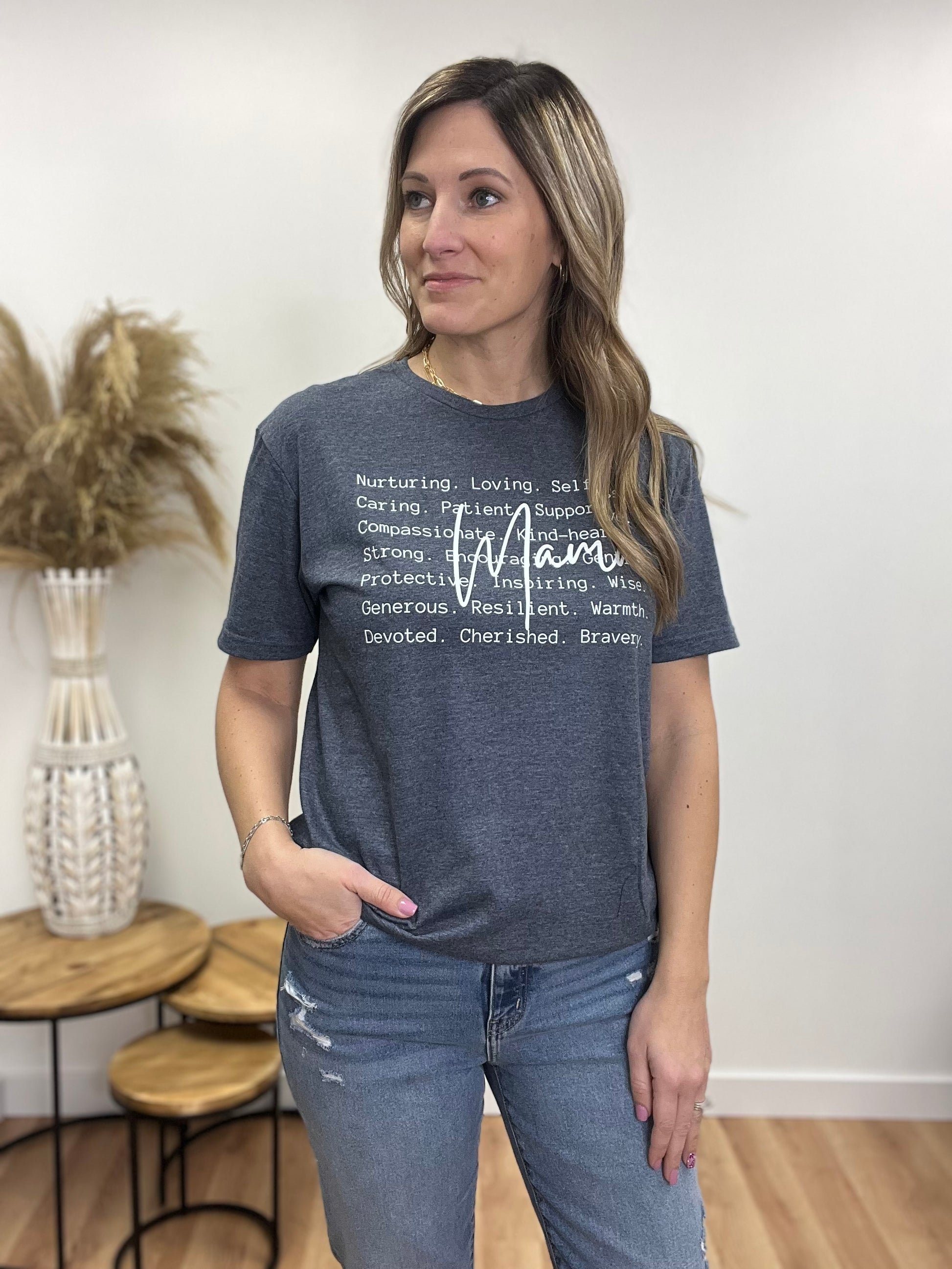 This navy heather blend tee is as soft and versatile as the amazing moms who wear it. Featuring a unisex fit for all day comfort, it’s the perfect go to for busy days, coffee runs, and everything in between.
