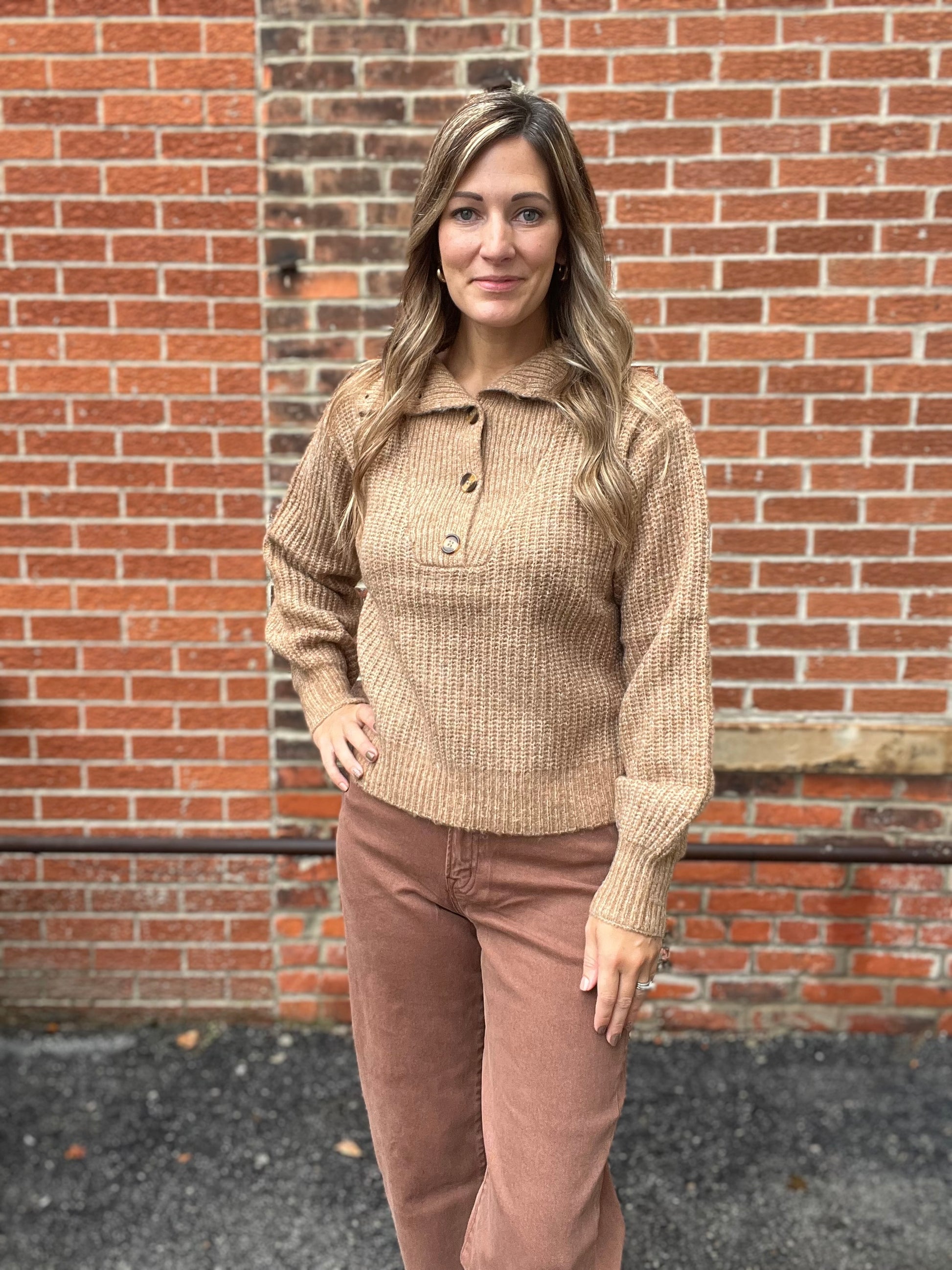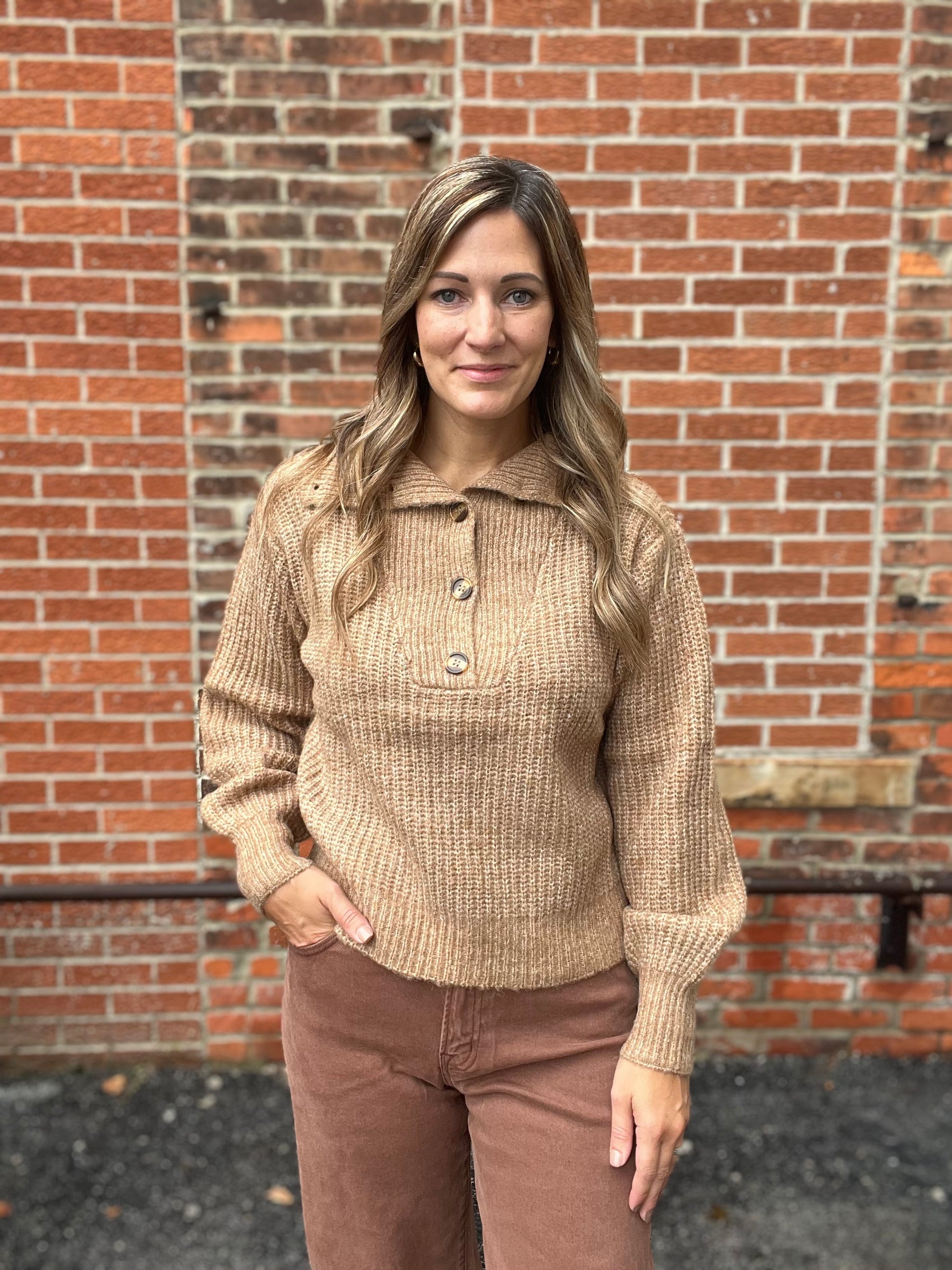 Classic meets cozy in this wool blend pullover. Designed with a collared neckline and quarter button up front, this sweater brings timeless style with a touch of polish. The soft, warm knit makes it perfect for layering through the season, effortlessly versatile for work, weekends, or evenings out.