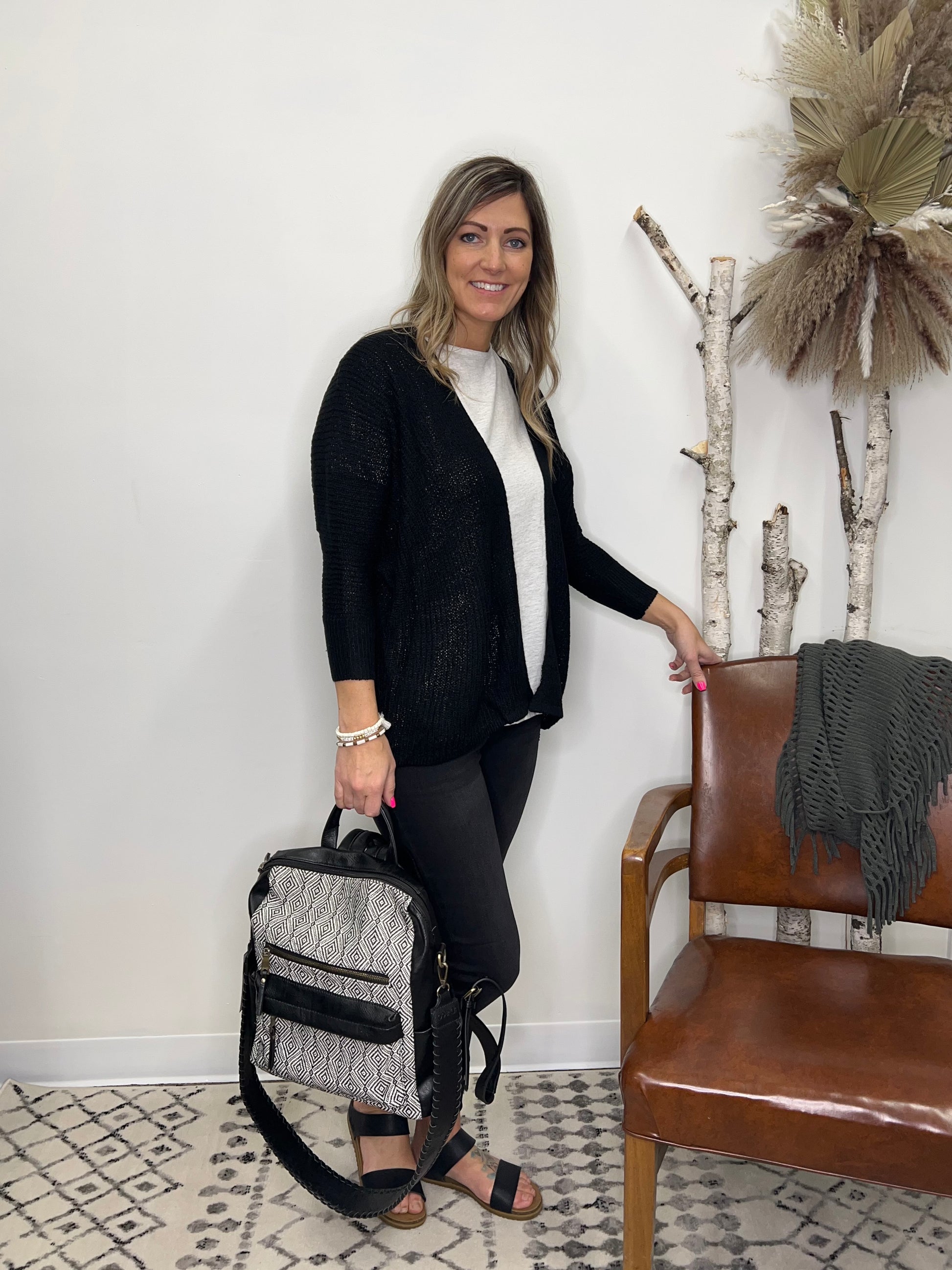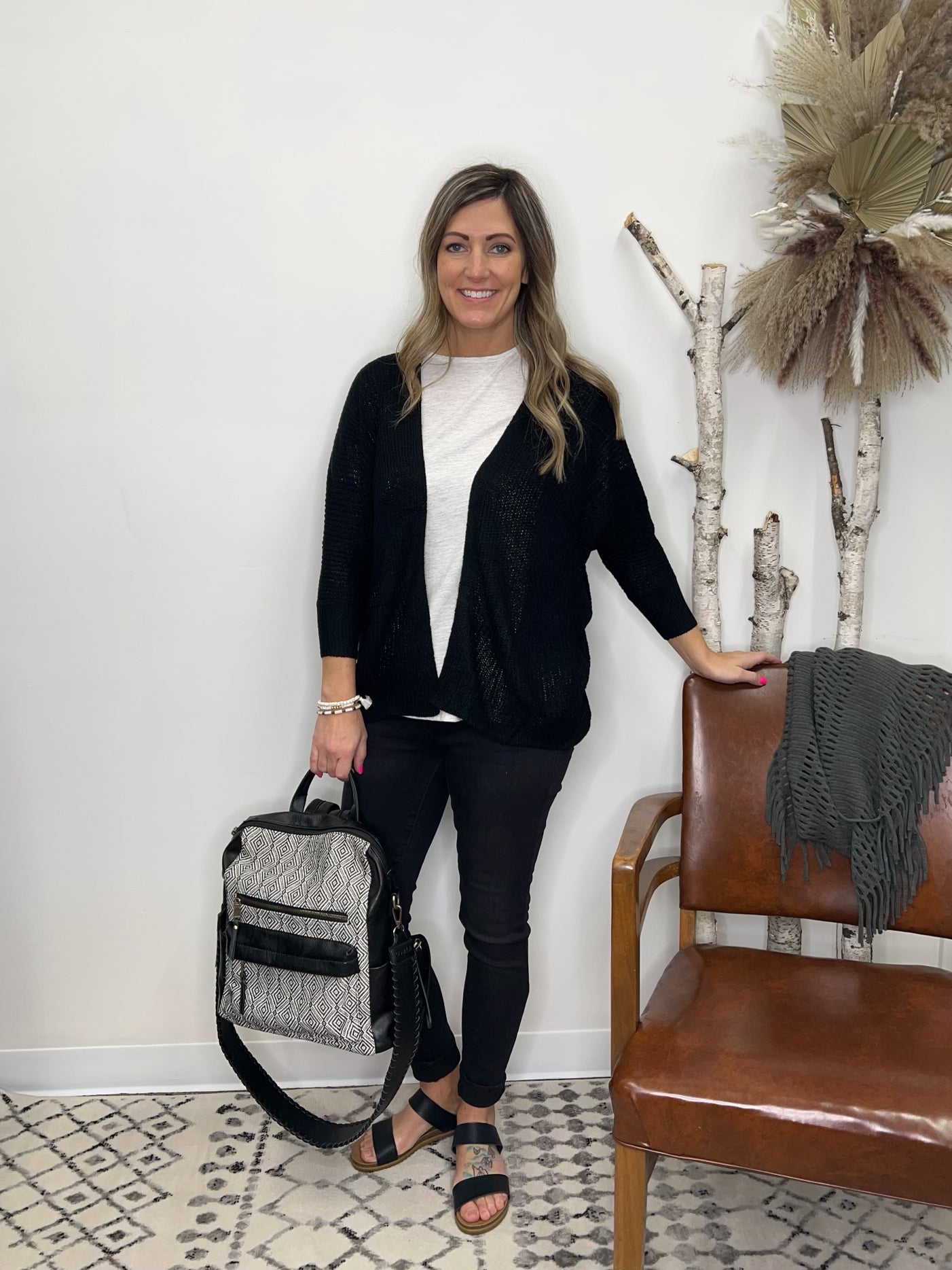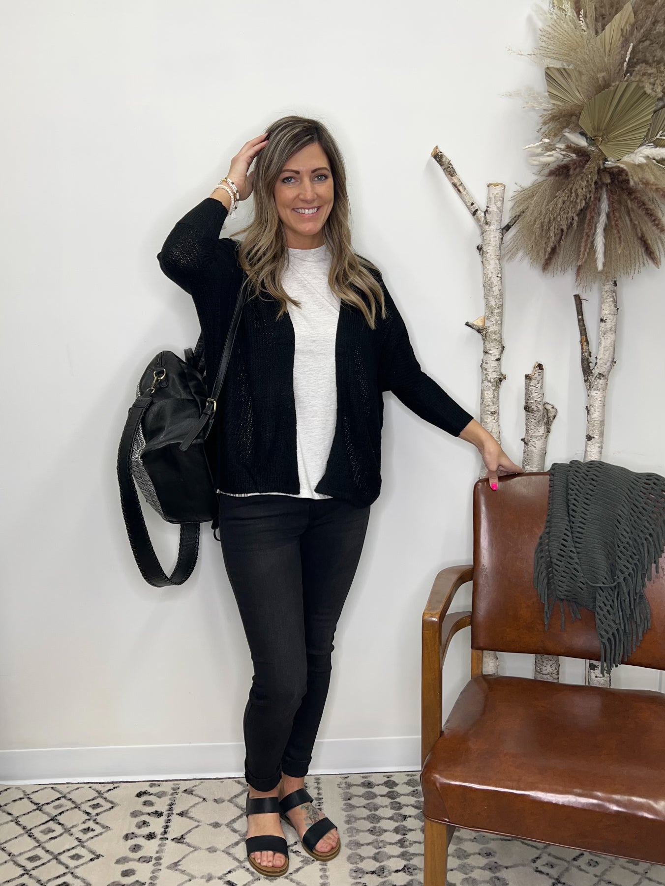 This lightweight knit features a relaxed dolman sleeve and quarter length sleeves for an easy, breezy layer you’ll reach for year round. Perfect for adding a simple touch without the bulk.