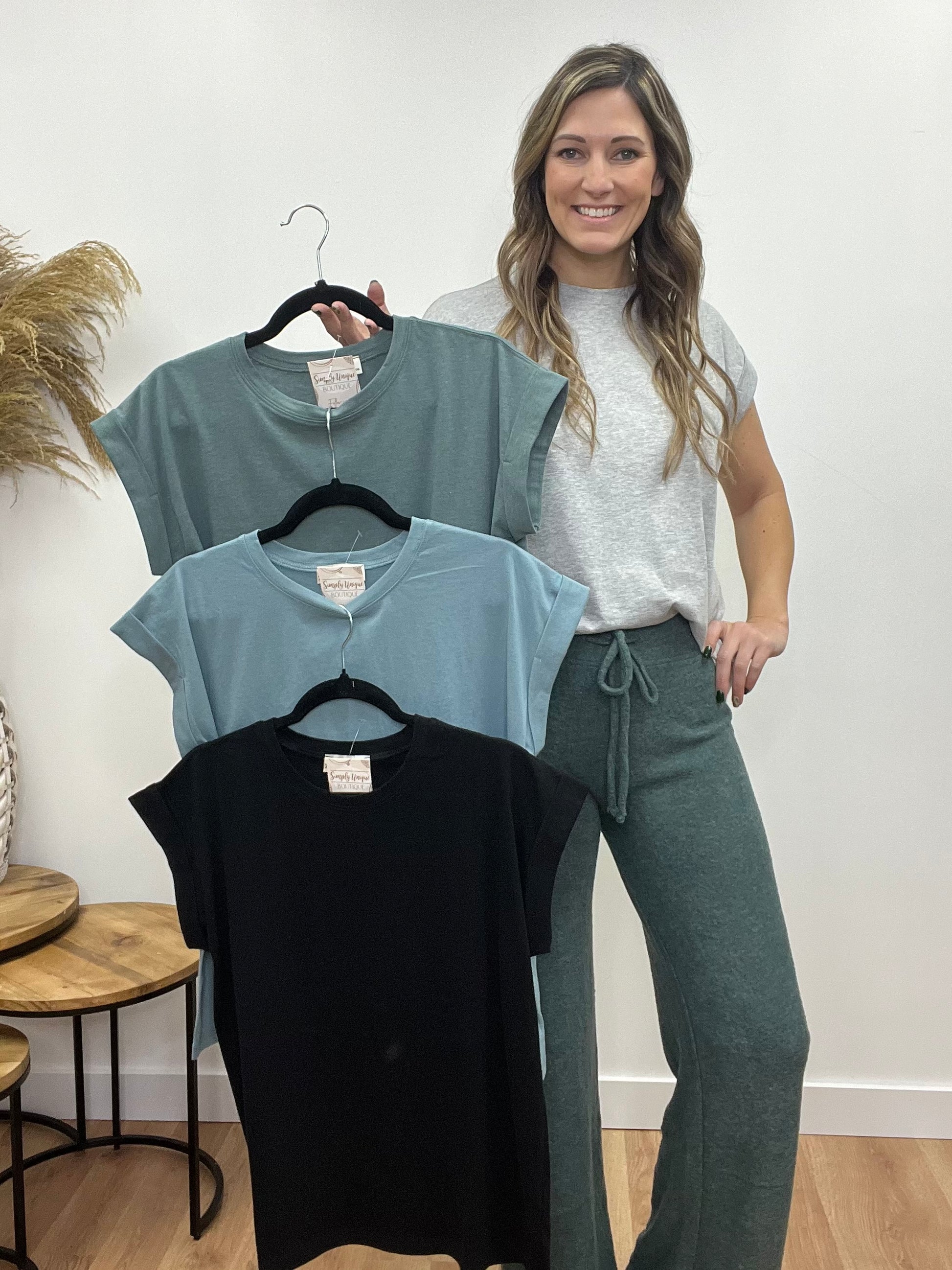 Effortlessly stylish and versatile, this Basic Tee is designed for everyday comfort. Classic Round Neckline: A timeless design that pairs with any outfit. Cuffed Sleeves: Add a subtle, modern touch to the classic tee look. Chic Color Options: Available in blue, grey, and aqua to suit any style. A perfect wardrobe essential for casual, relaxed looks!