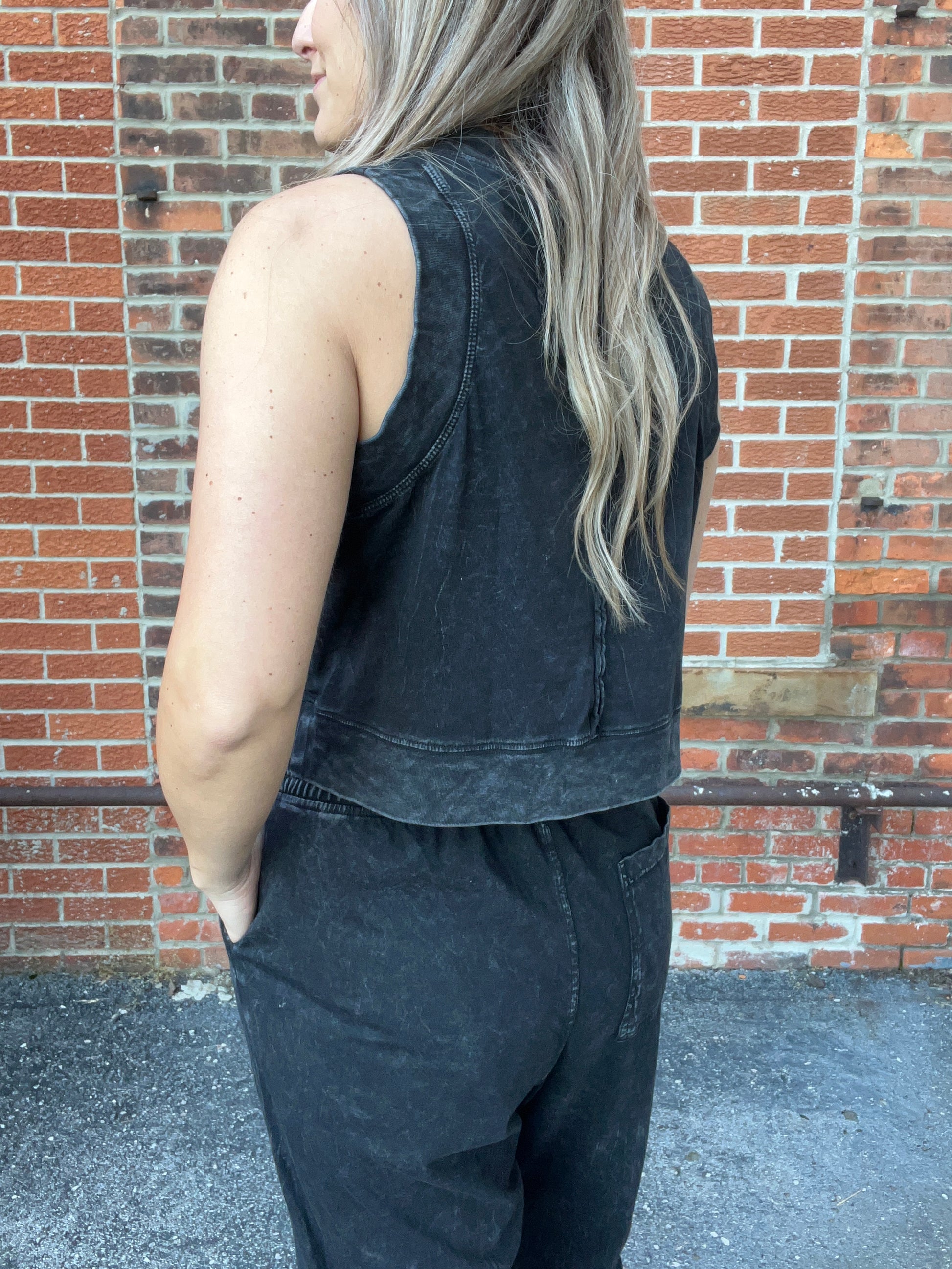 Introducing our mineral wash cropped black chic set, featuring an edgy back exposed seam. This stylish ensemble offers a trendy, washed look with a modern, cropped fit. Perfect for a fashion-forward statement, this set combines comfort and style in one look!