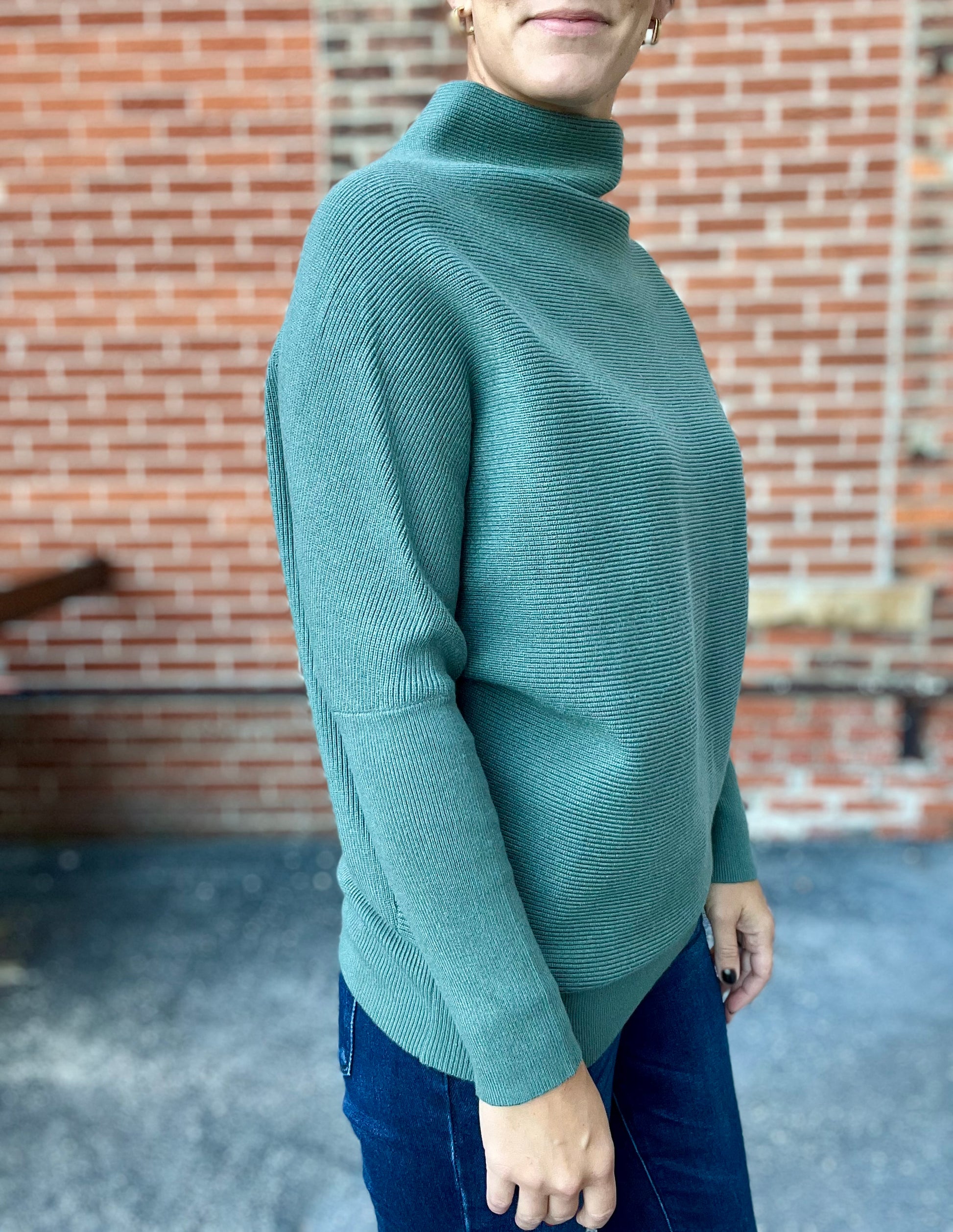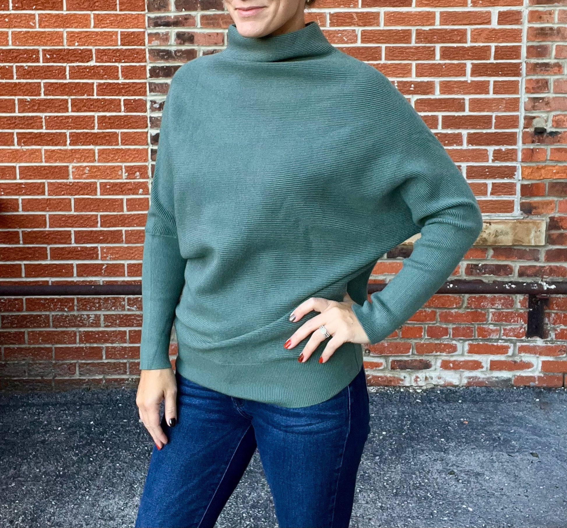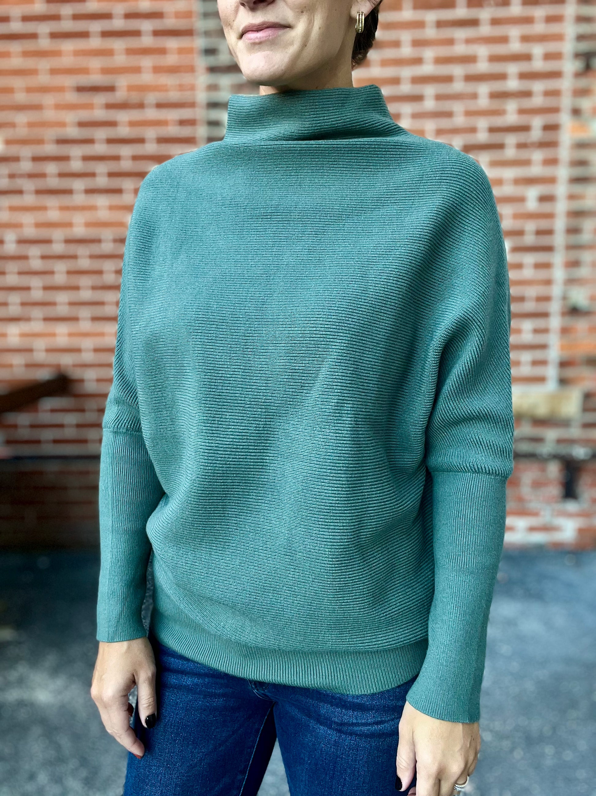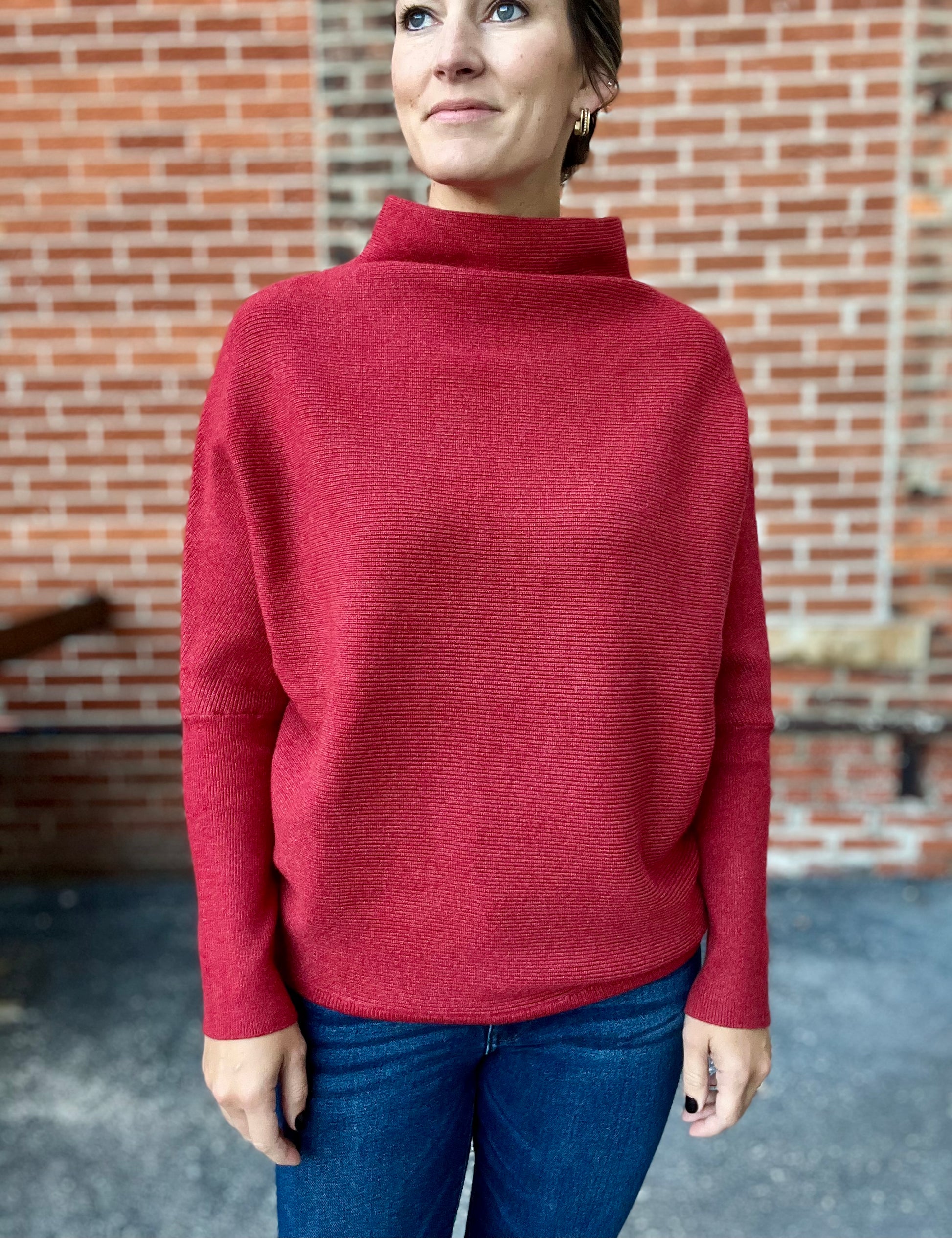 This soft mock neck sweater blends comfort with effortless style. Featuring a dolman sleeve and a dropped shoulder design, it offers a relaxed, slouchy silhouette that's both chic and comfortable. The medium-weight fabric adds just the right amount of warmth, perfect for layering in cooler weather. With its ribbed texture, the sweater has a cozy feel while also providing subtle detail and structure. The mock neck adds a modern touch, making this sweater an ideal choice for casual days or dressed-up looks alike.