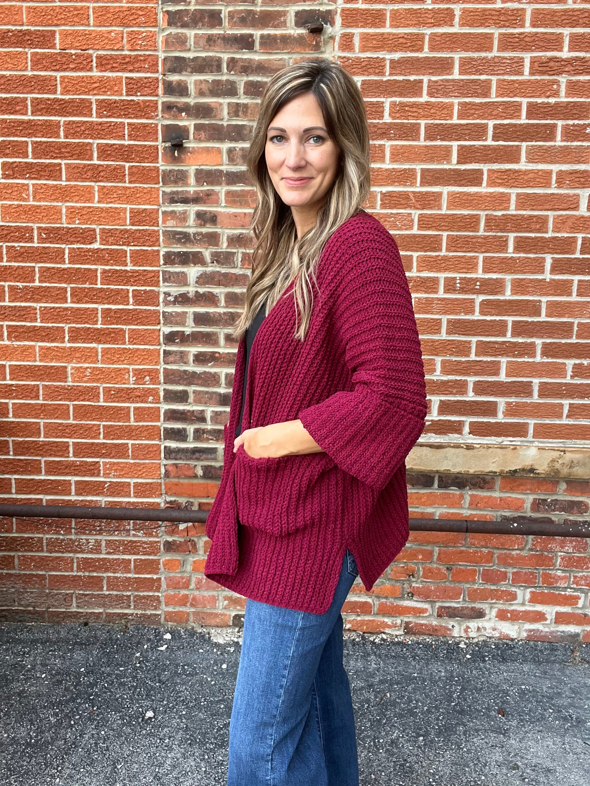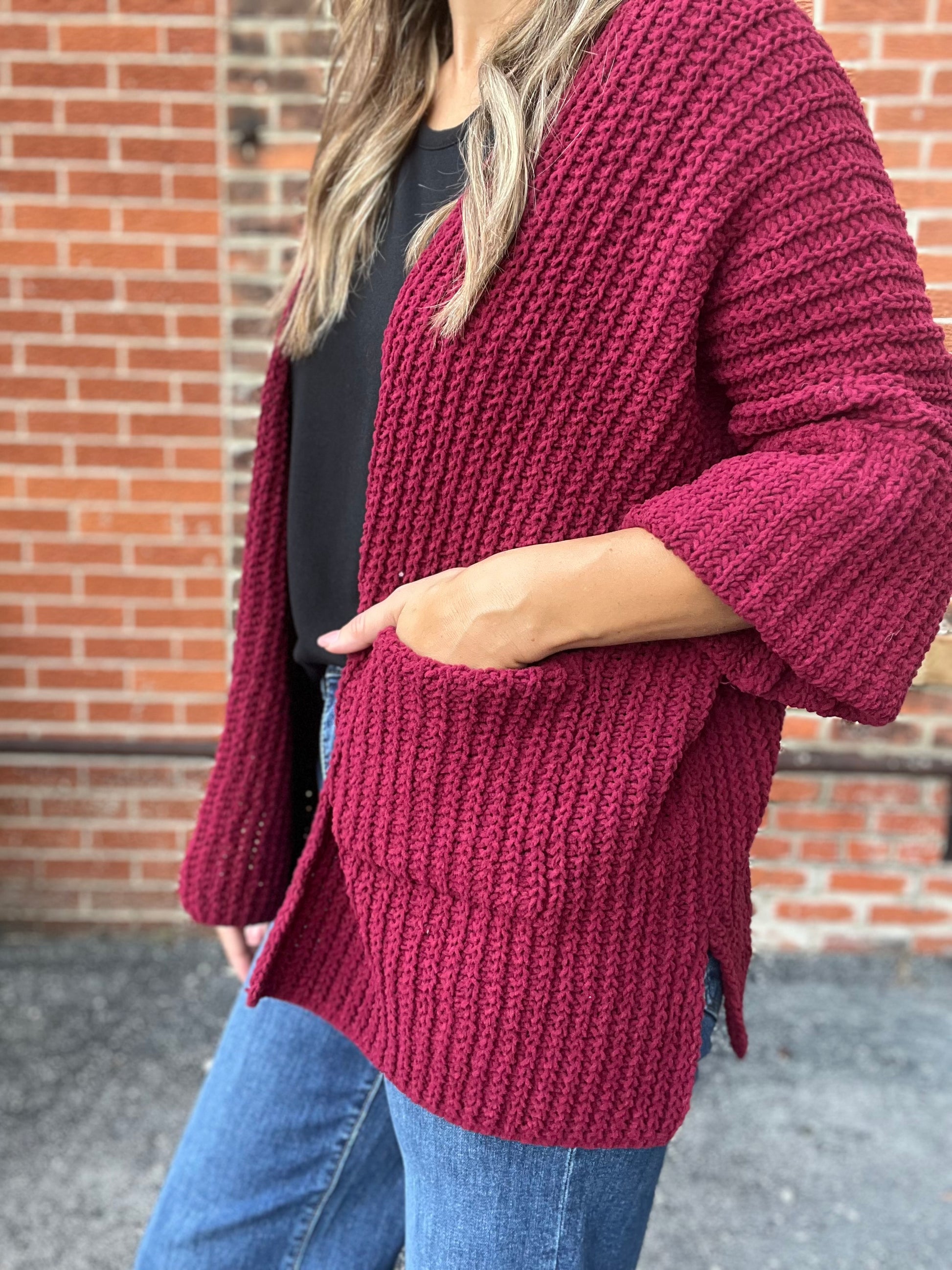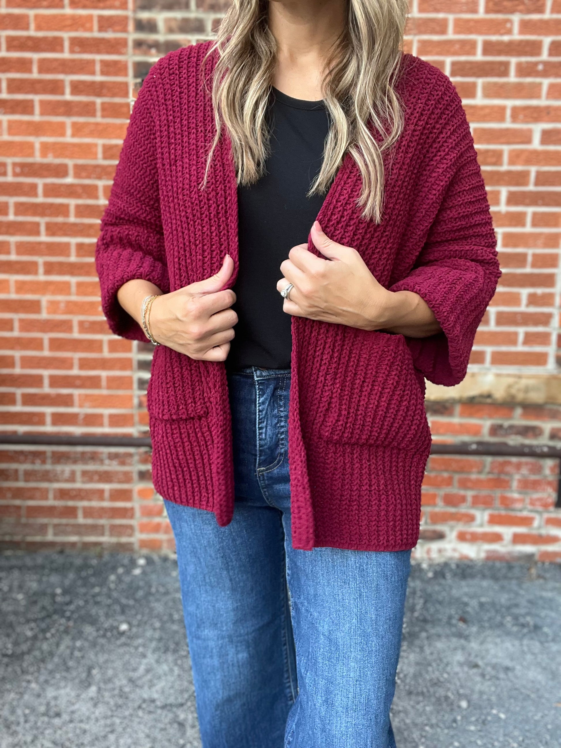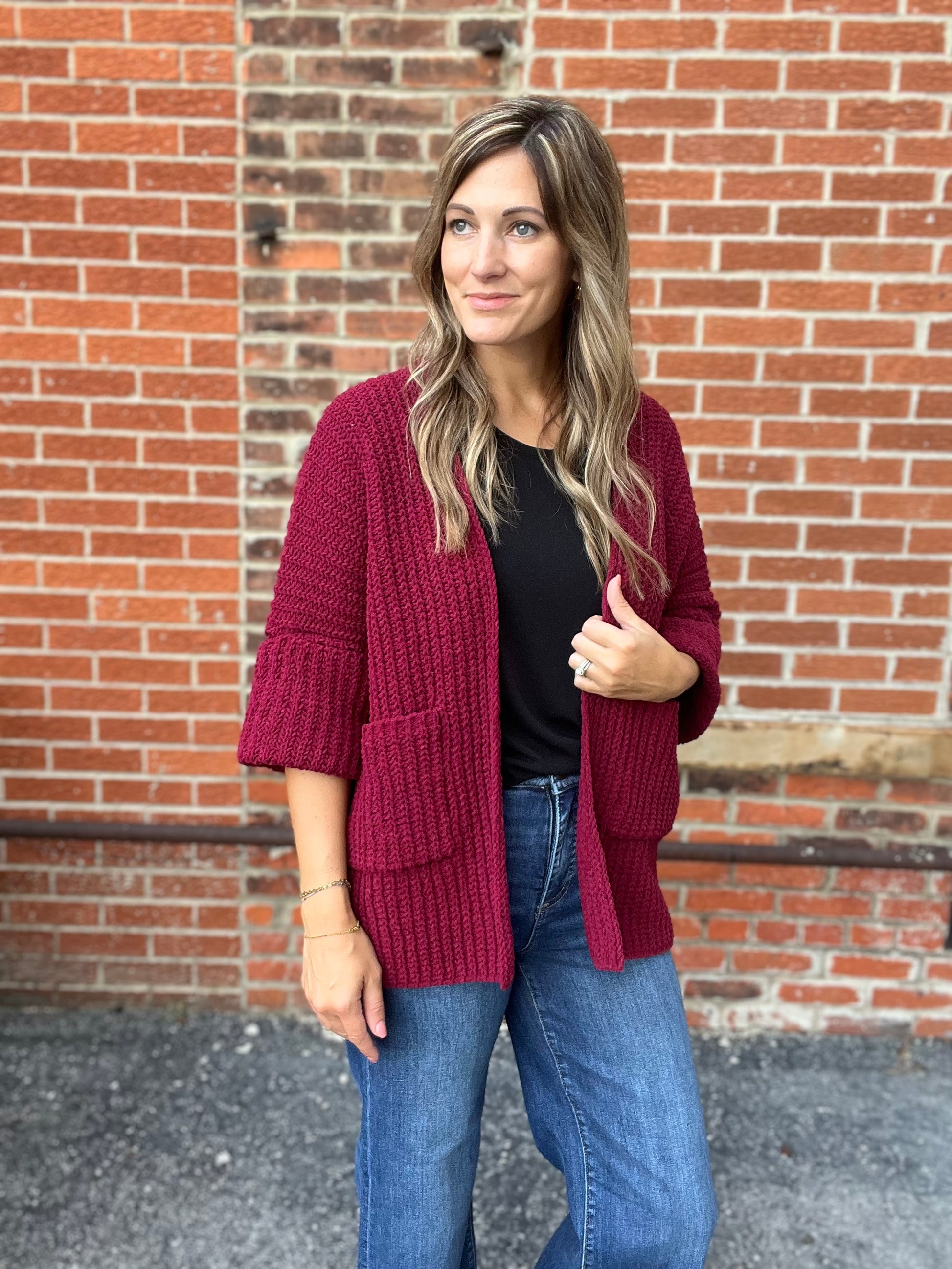 Snuggle up in this ultra comfy oversized knit cardigan, designed for effortless style and all day comfort. The relaxed fit and quarter length sleeves make it perfect for layering, while the front pockets add both functionality and a cozy touch. Ideal for casual outings or lounging at home, this cardigan is a versatile wardrobe staple.