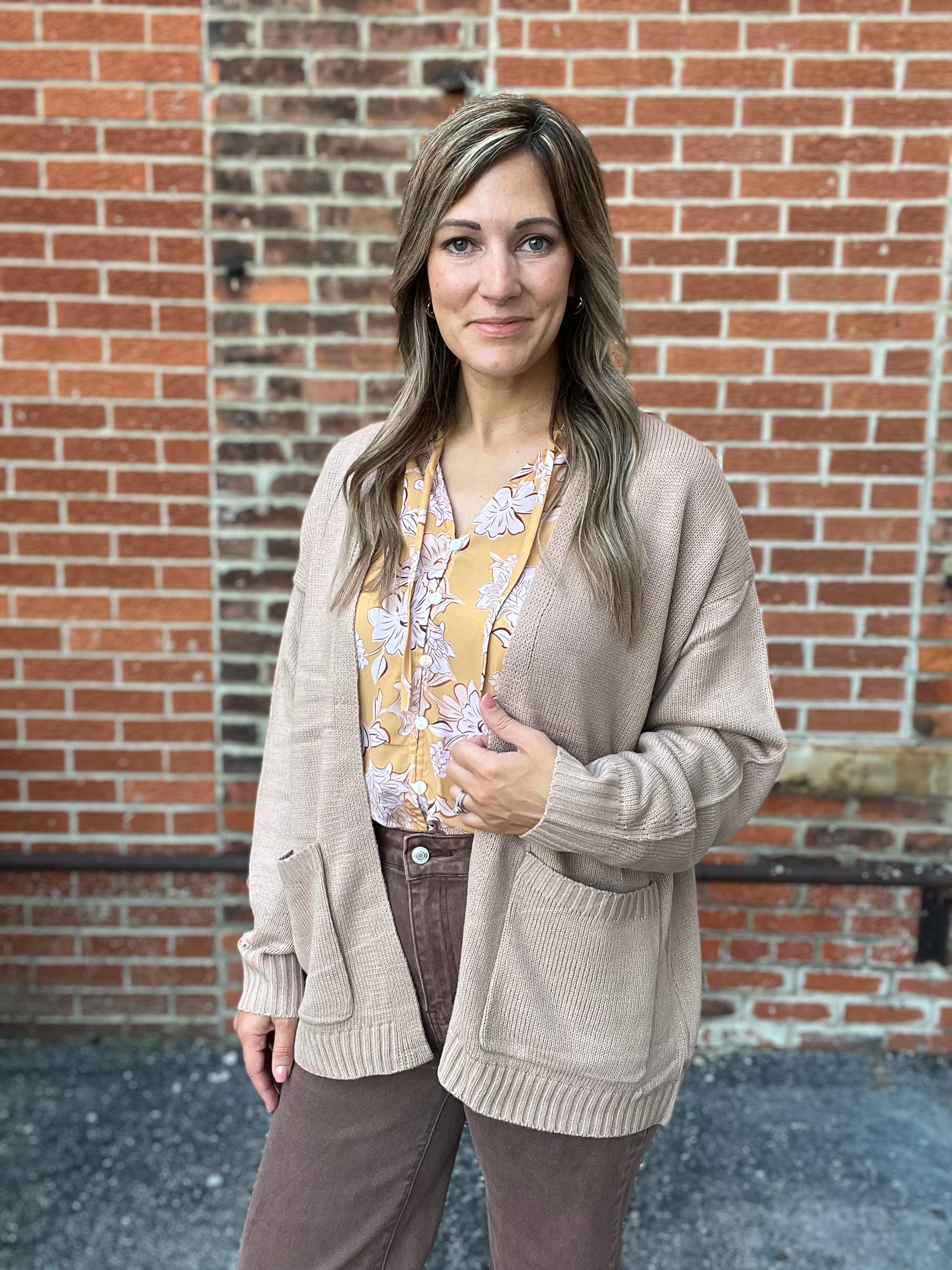 This lightweight knit cardigan is soft, breathable, and perfect for layering. Featuring an easy open front design and handy front pockets, it’s a go to piece for effortless, everyday style.