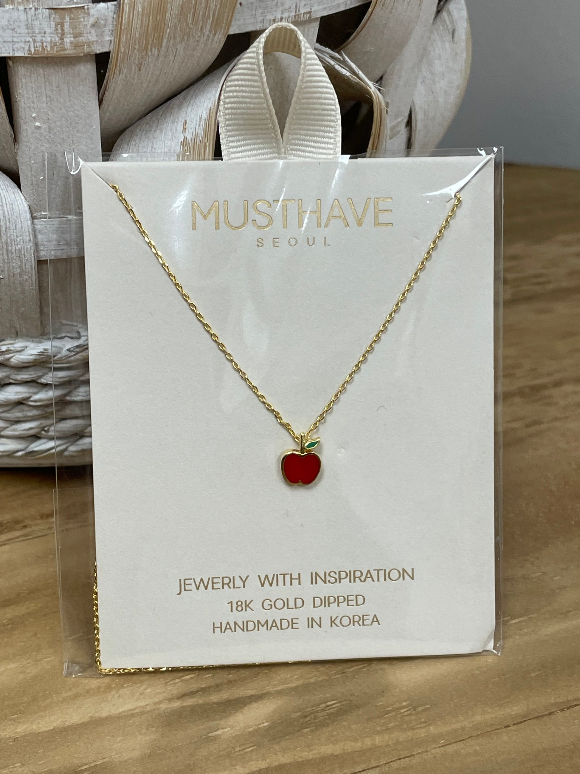 A dainty and elegant gold necklace featuring a charming red apple pendant. The delicate gold chain adds a touch of sophistication, while the glossy red apple charm brings a playful yet timeless appeal.
