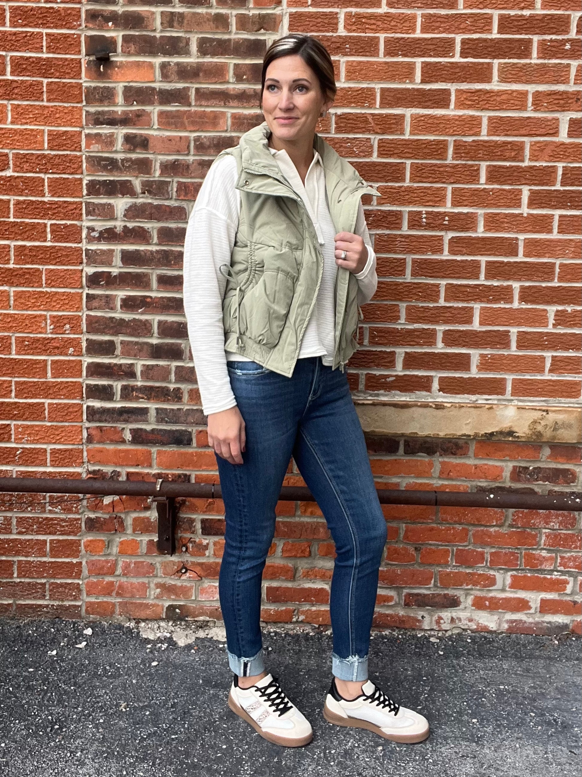 The perfect Mid-rise dark skinny jean, featuring a sleek, flattering fit with classic stretch, perfect for dressing up or keeping it casual. Grab this pair now and you will reach for them on repeat.
